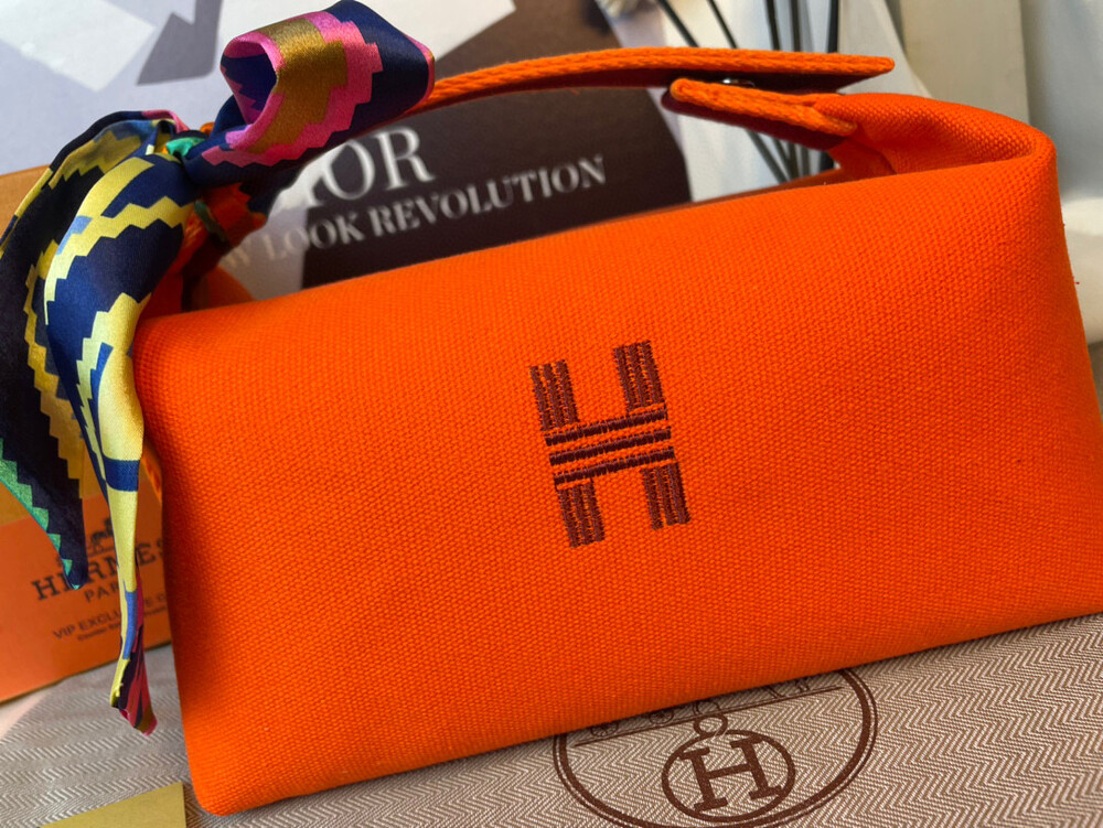 Hermes Lipstick Gift Wash Bag Canvas material has a very large capacity.zise:25x15cm