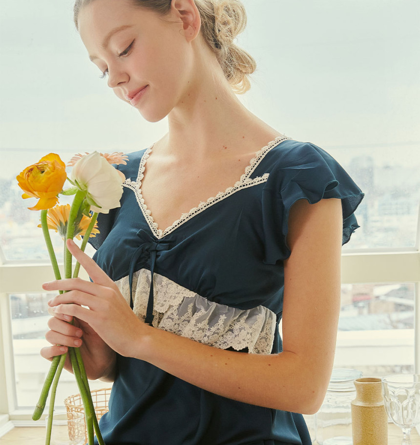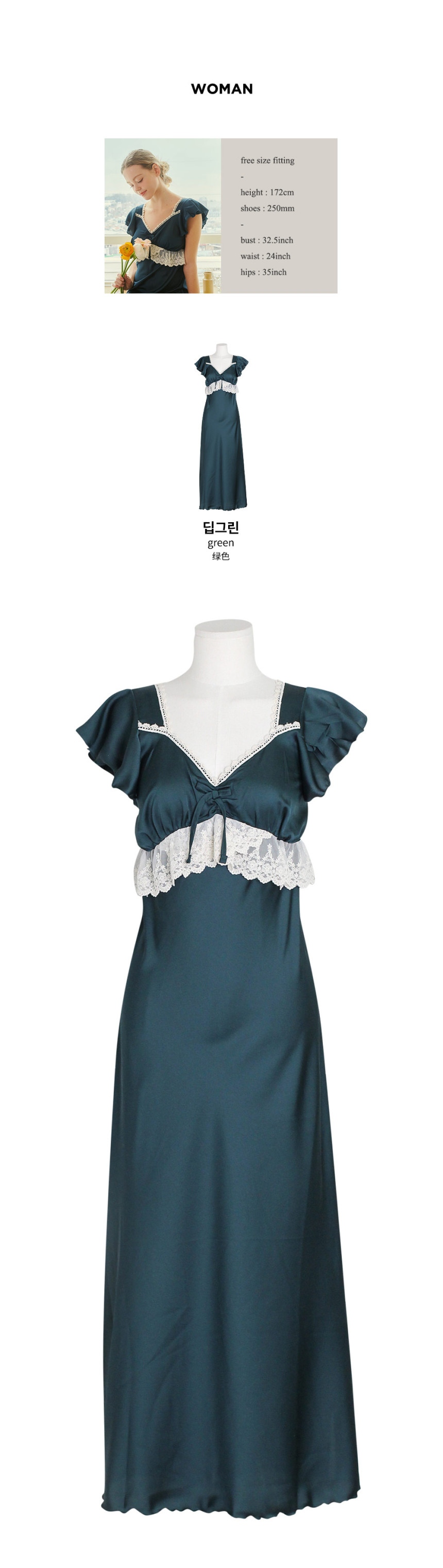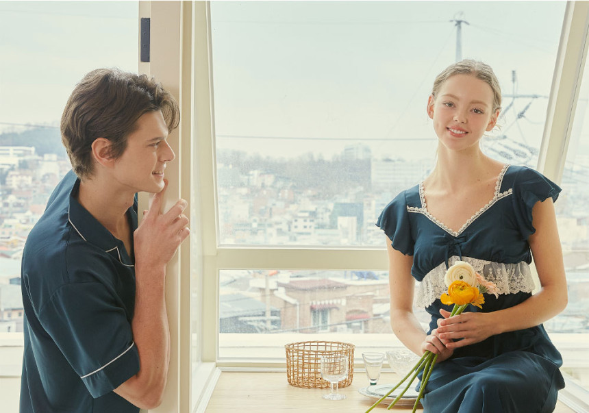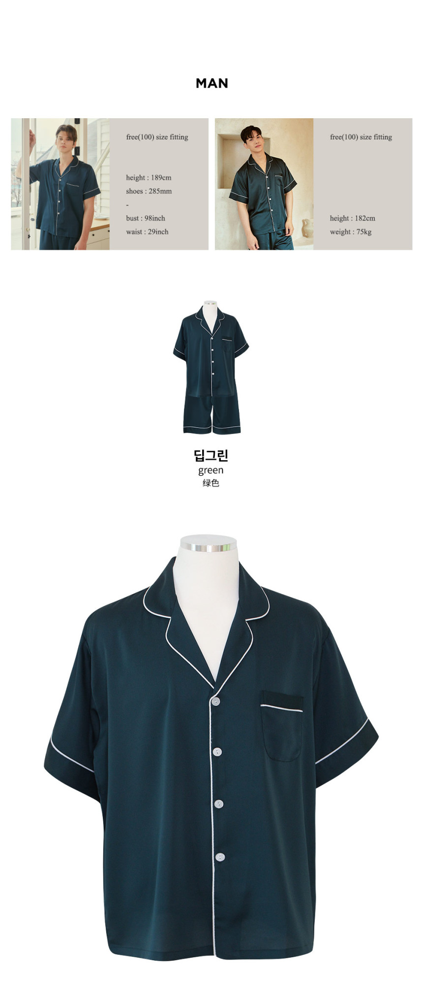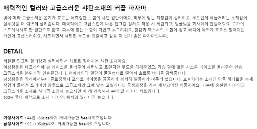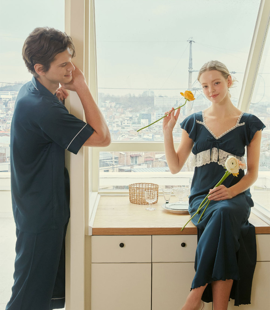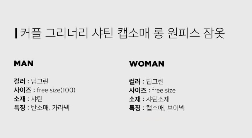 여성 남성 커플 그리너리 원피스 투피스 수면 잠옷