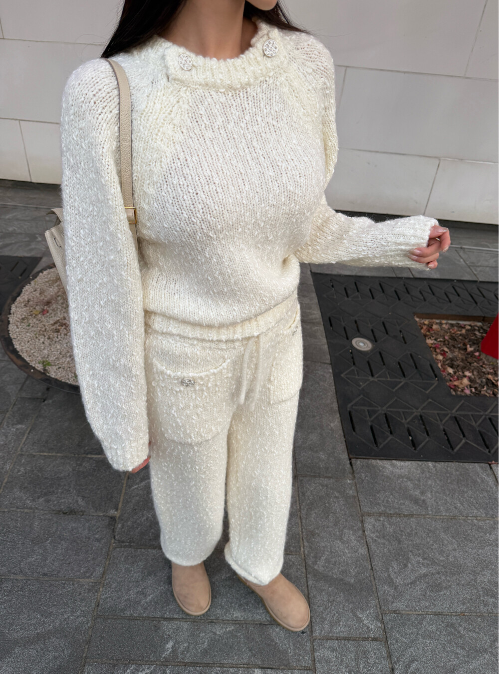 프리미엄 혼방으로 만들어진 알파카 울 코지 니트 세트입니다.
