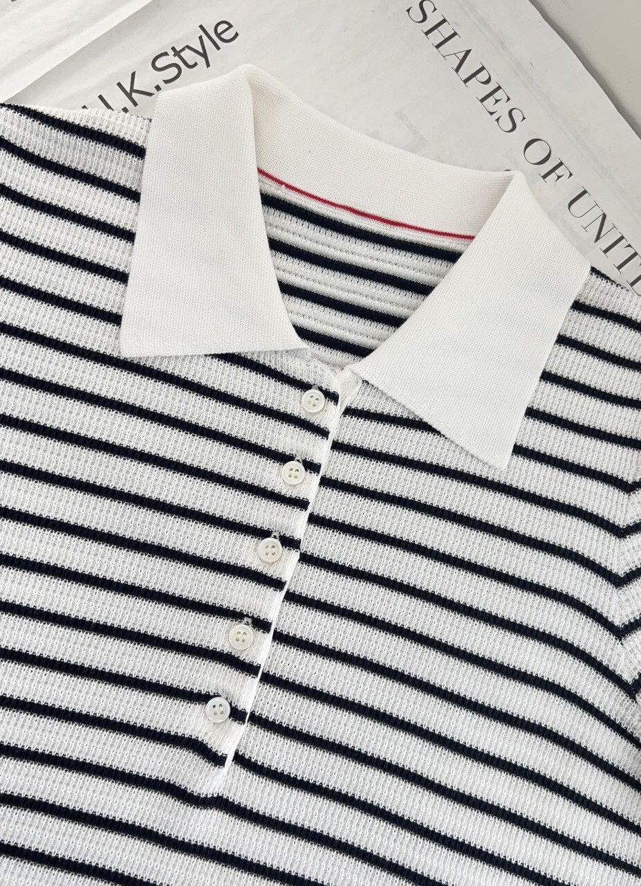 B. 톰 펀칭 니트 카라 반팔