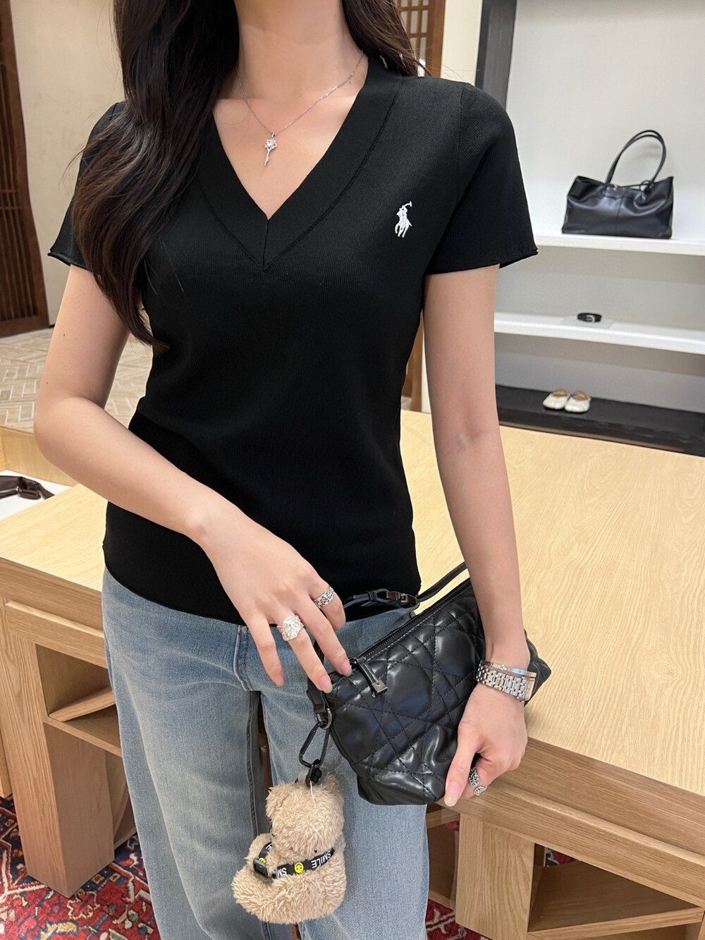 D. 랄프로렌 브이넥 반팔 니트