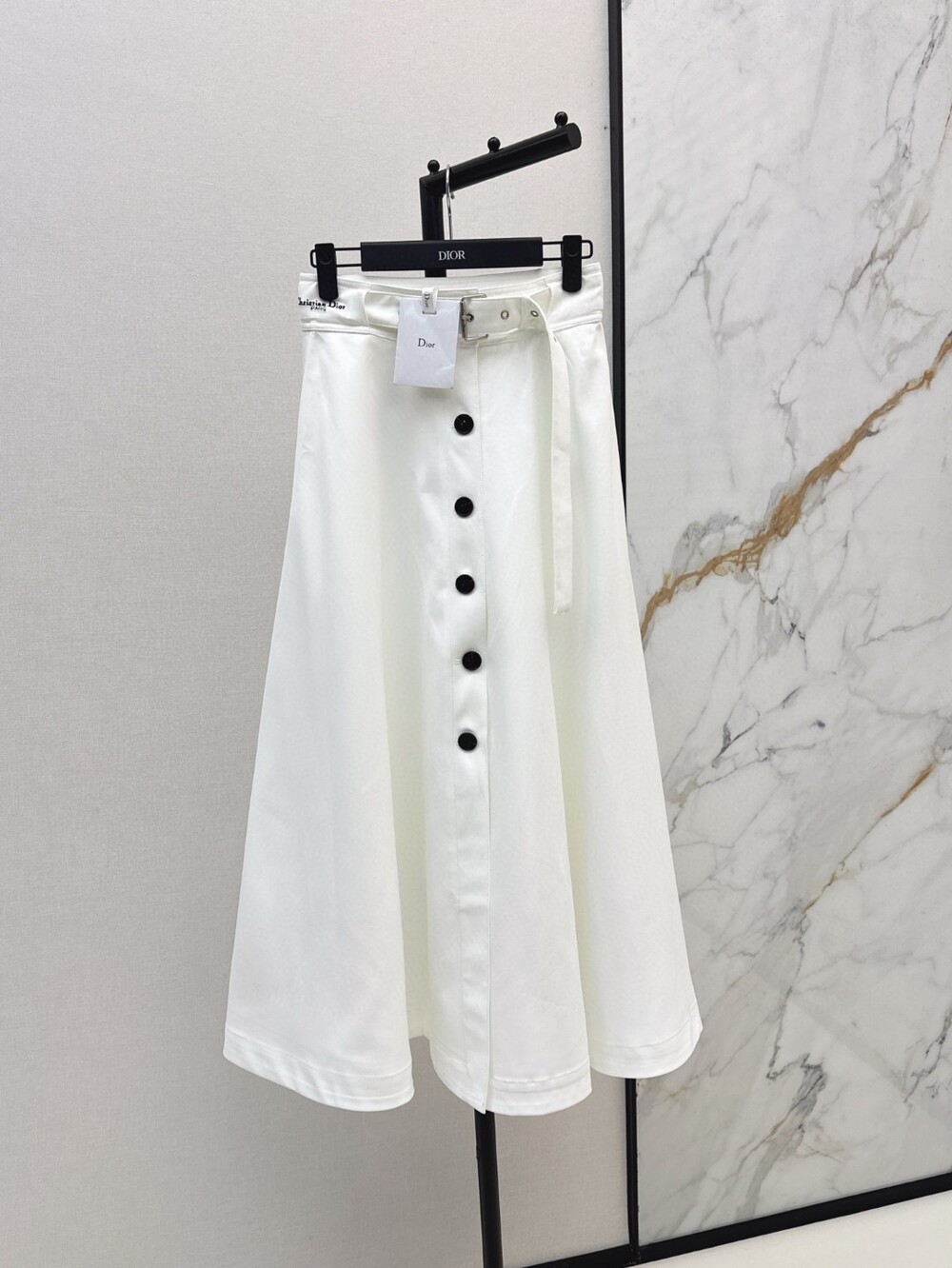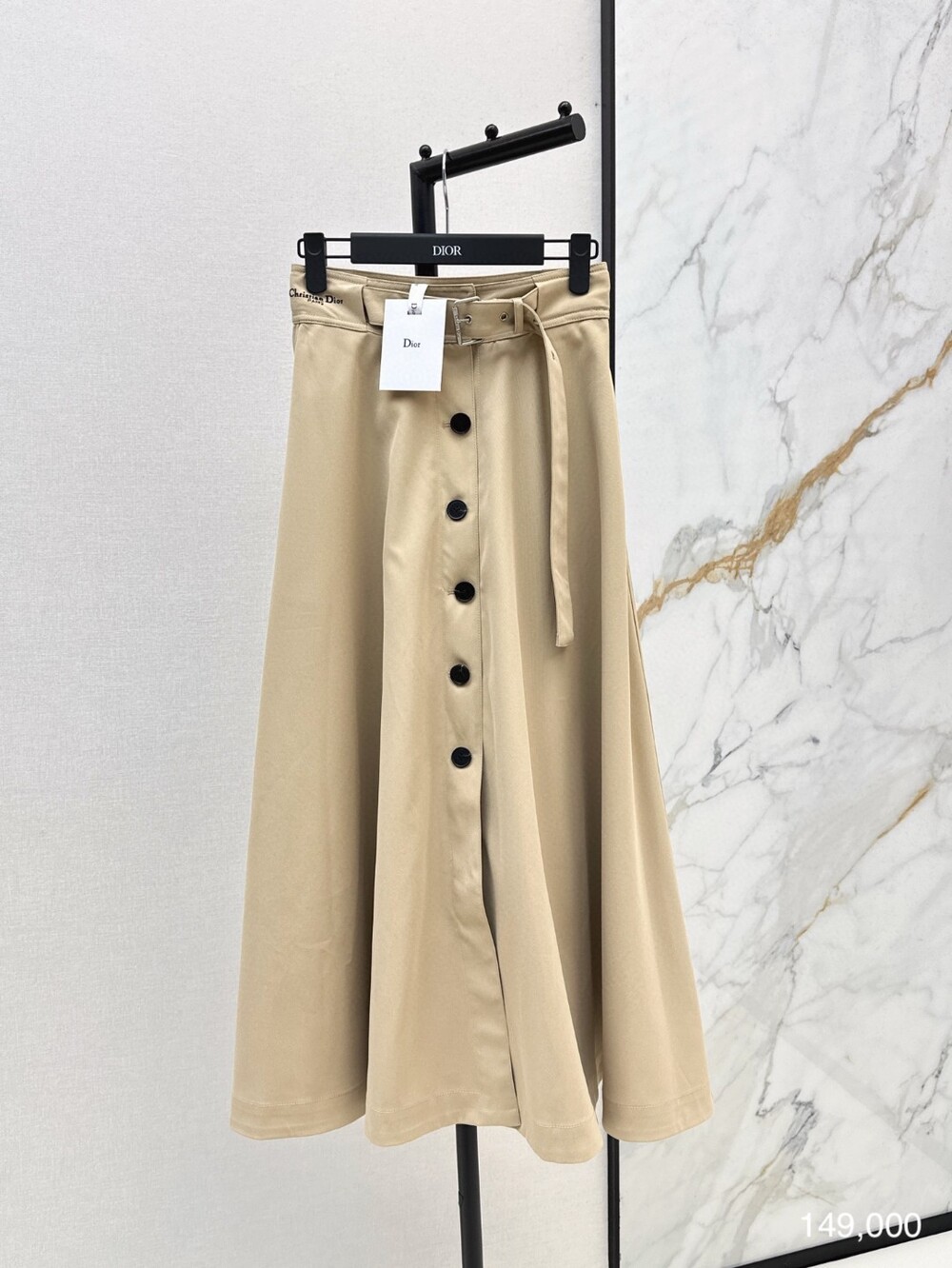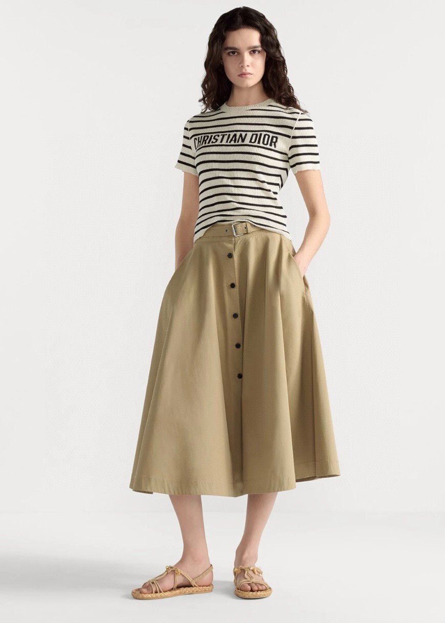 G. CD 버튼 하이웨스트 베이지 A라인 스커트