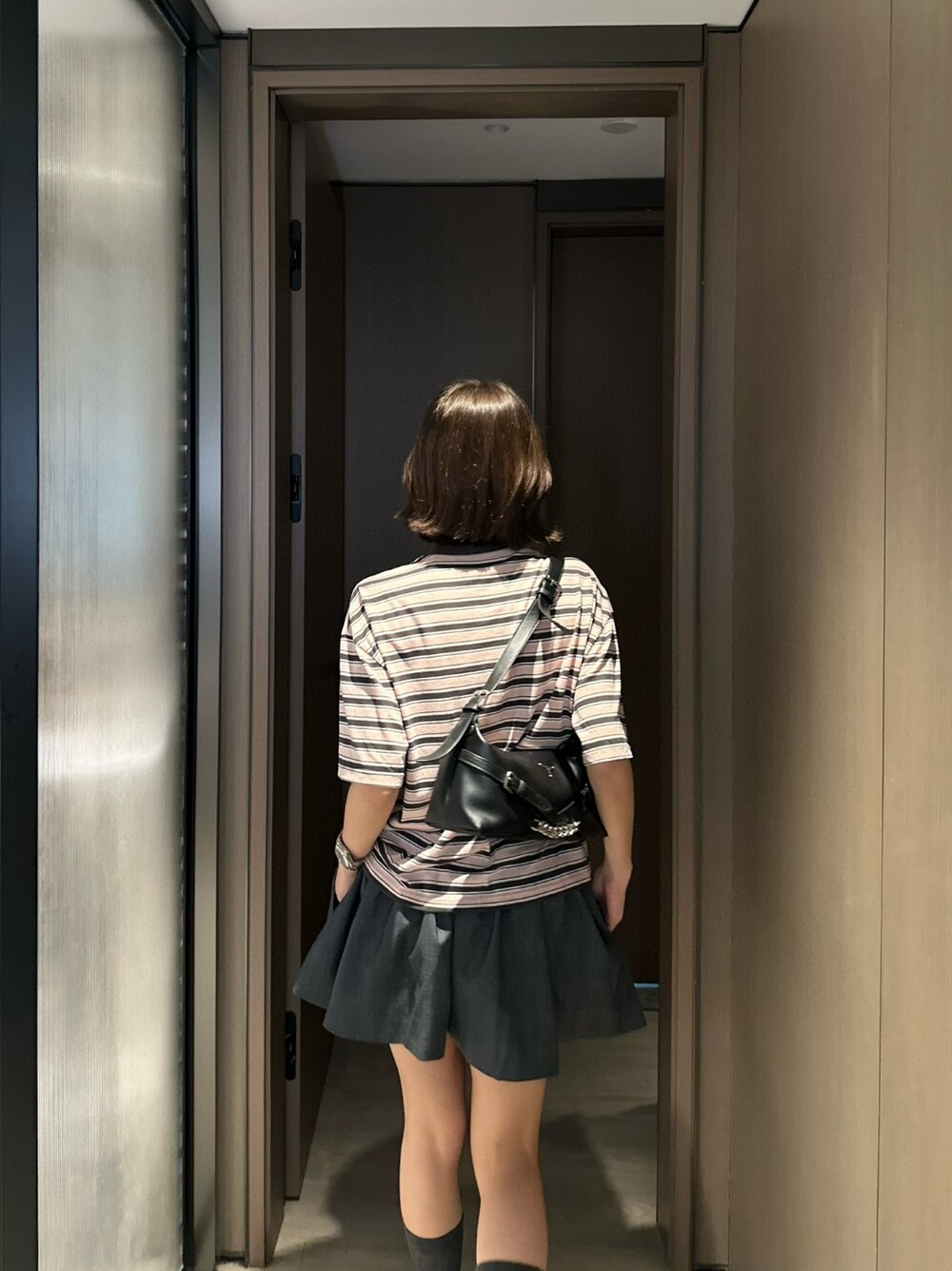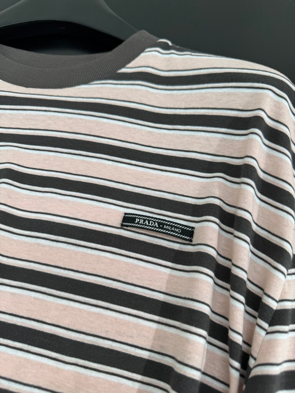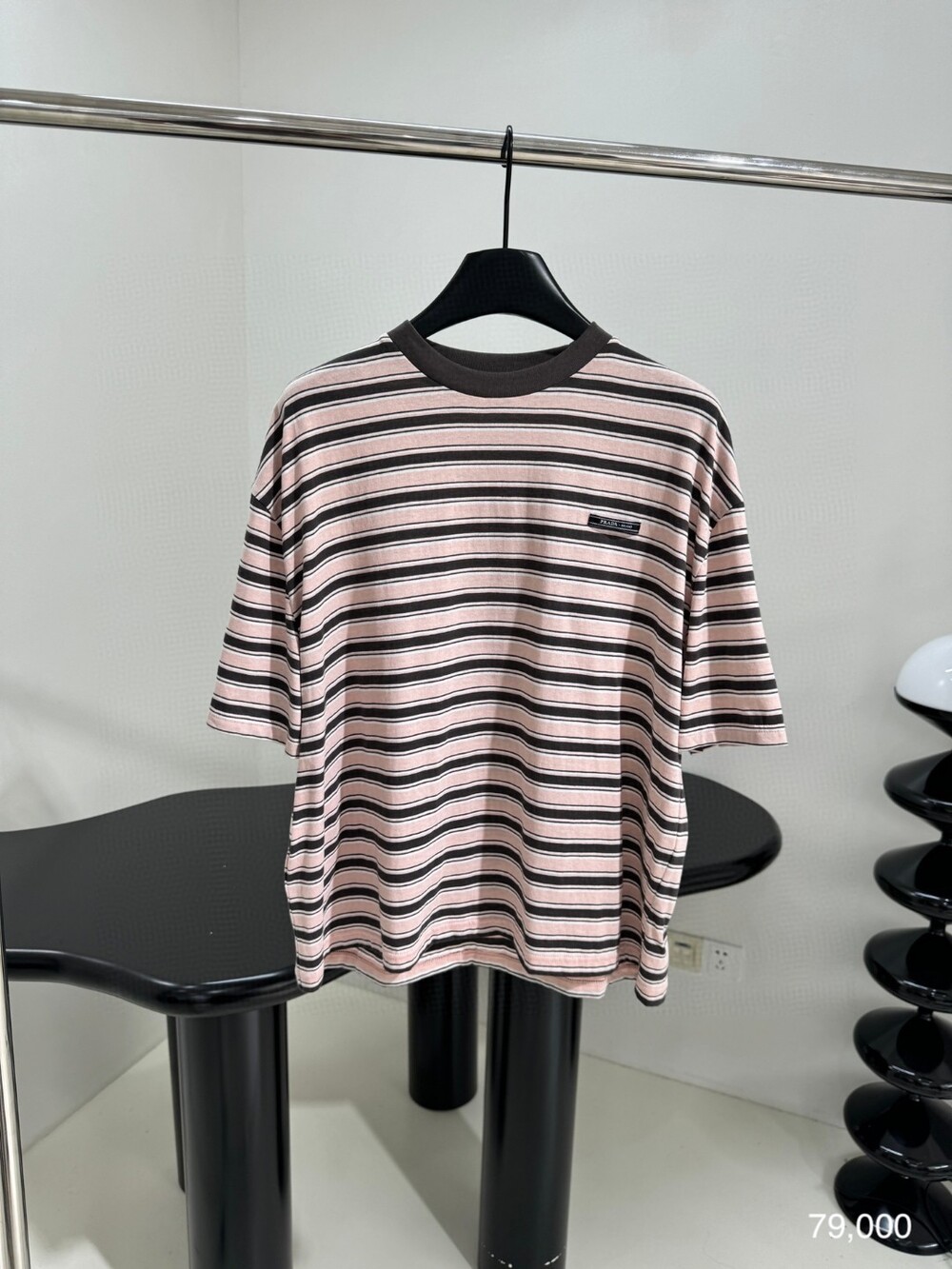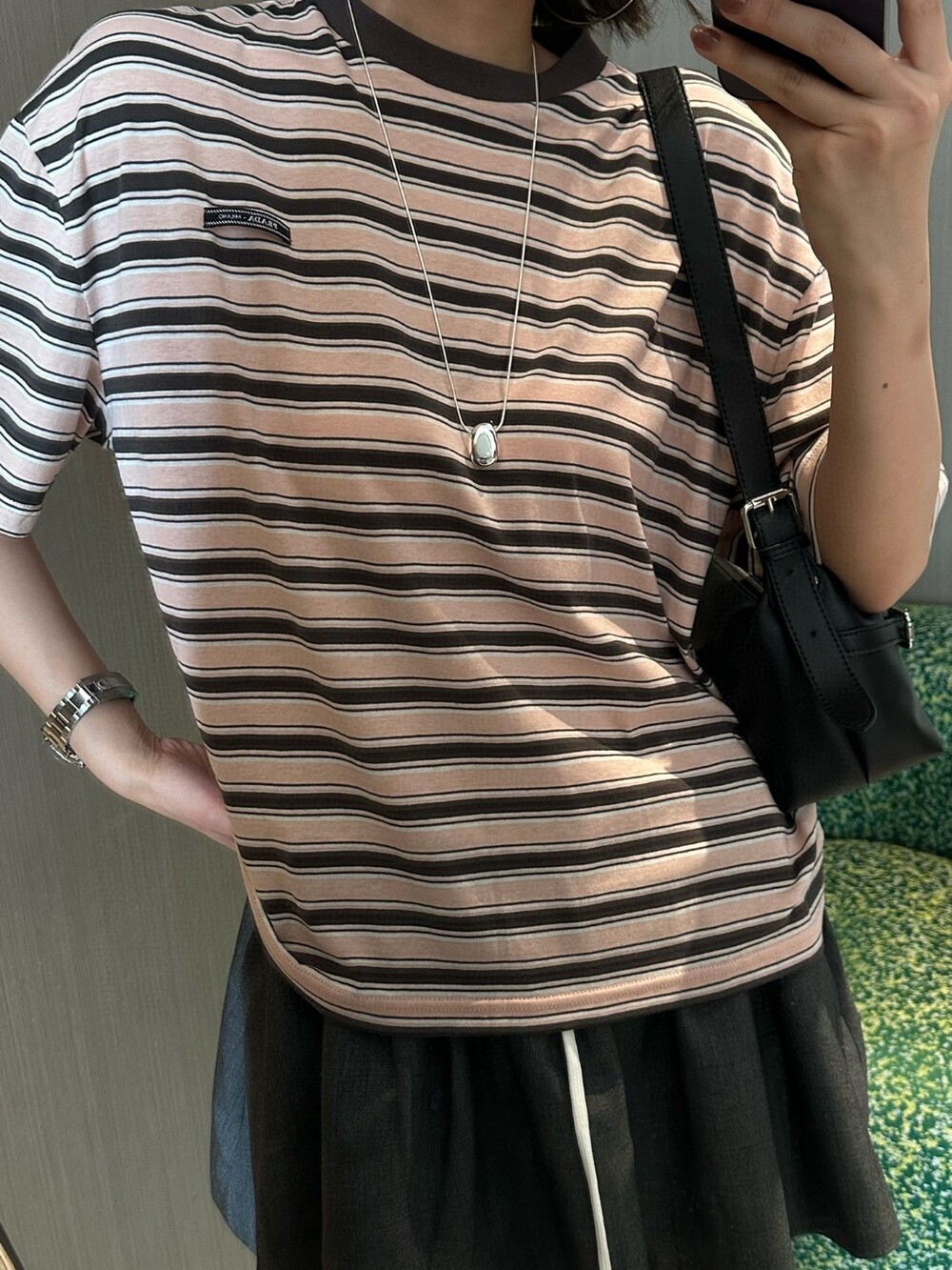 H. 프라 로즈브라운&블랙 스트라이프 반팔티