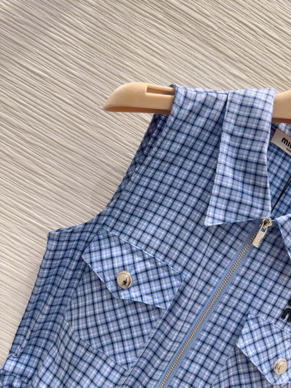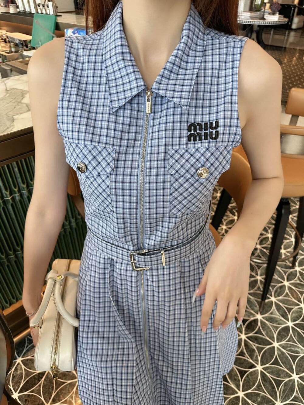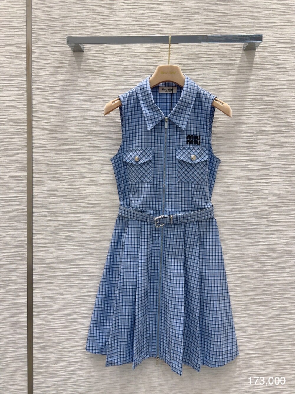J. 뮤뮤 블루 민소매 카라 원피스