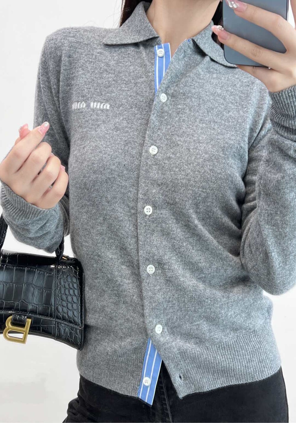 B. 뮤뮤 스트라이프 배색 가디건