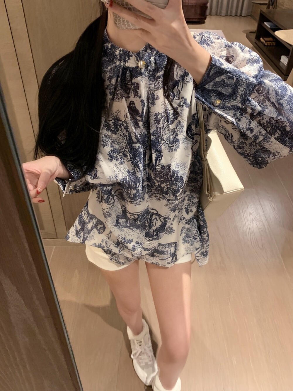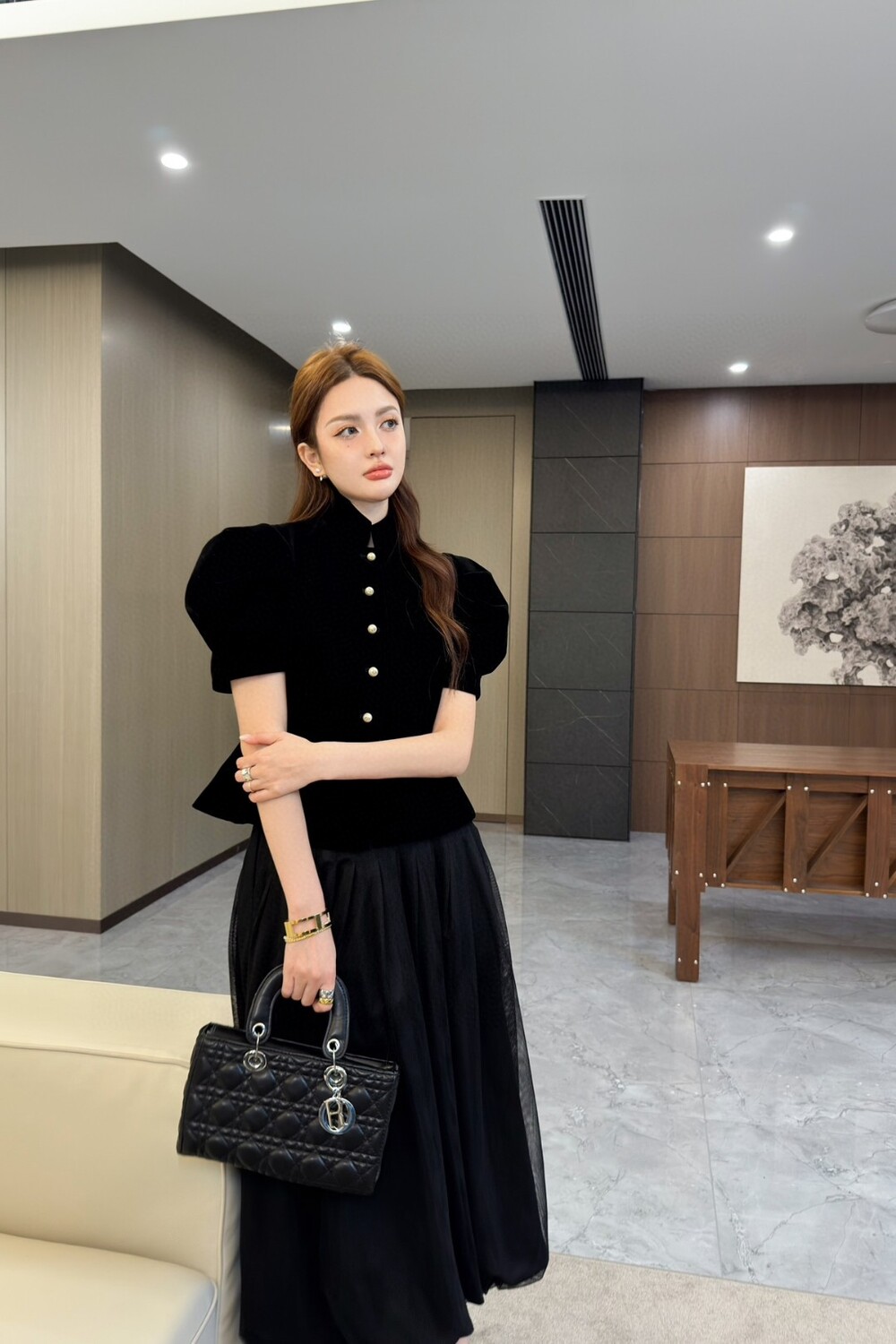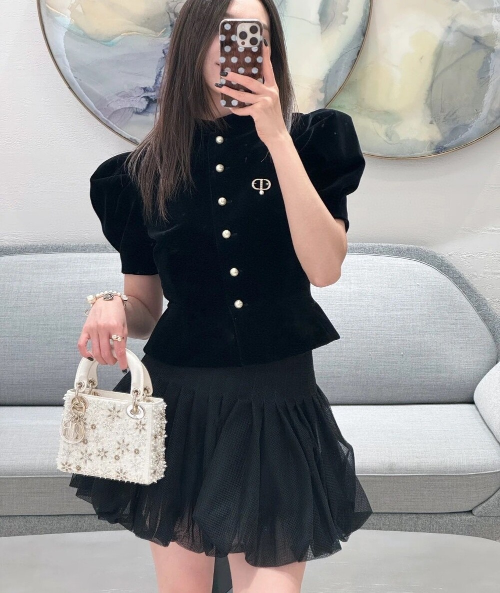 H. CD 퍼프 벨벳 블라우스