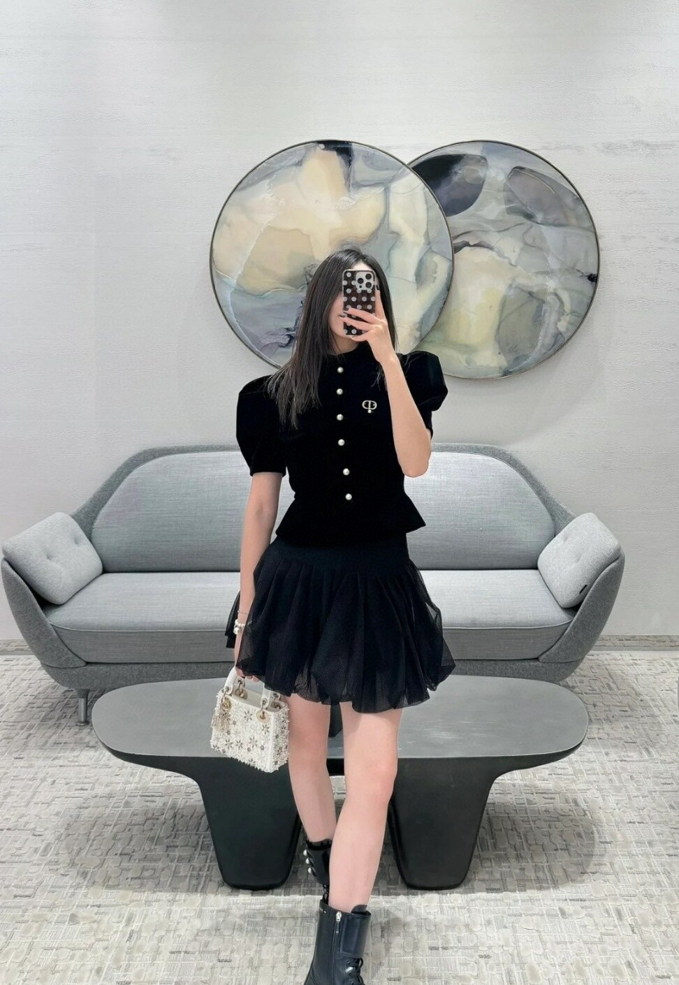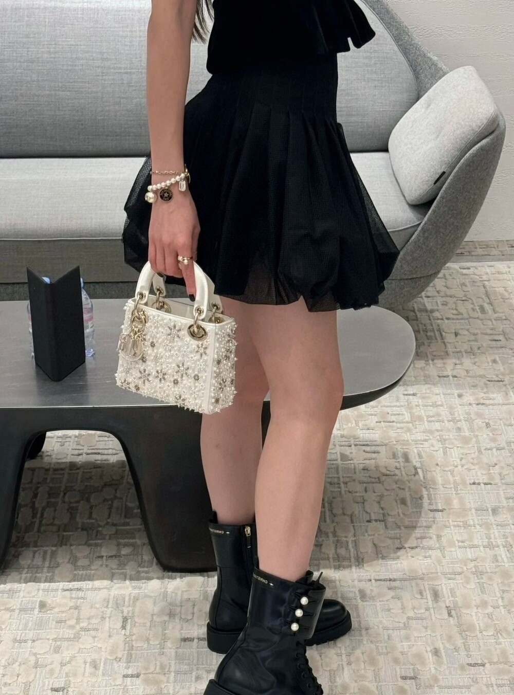 C. CC 블랙 프릴 가디건 은장 버튼