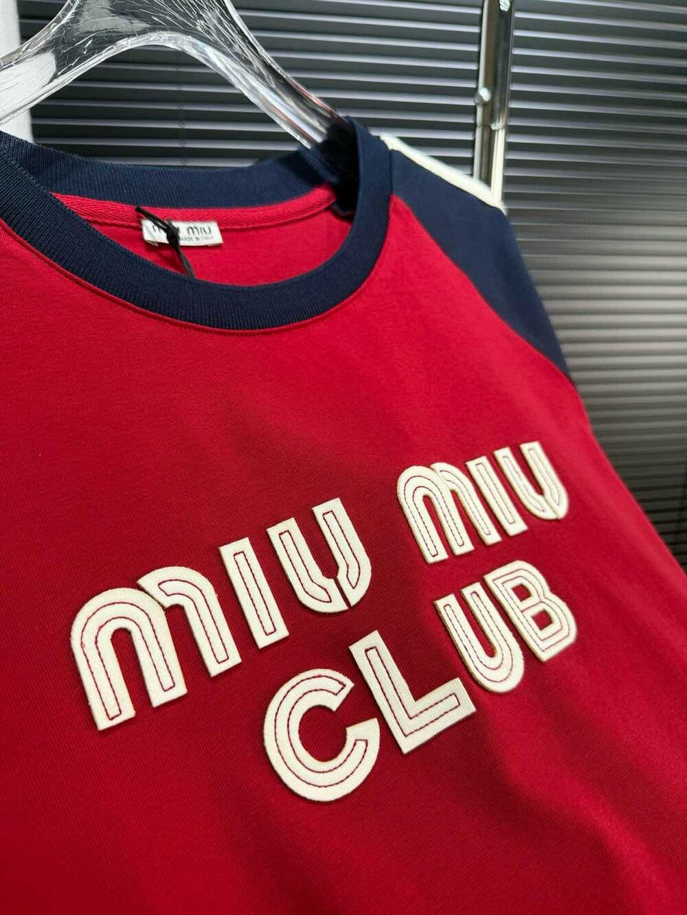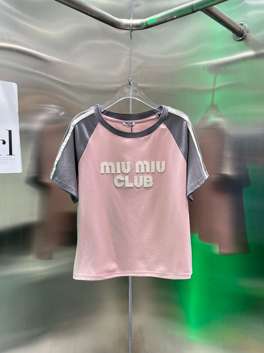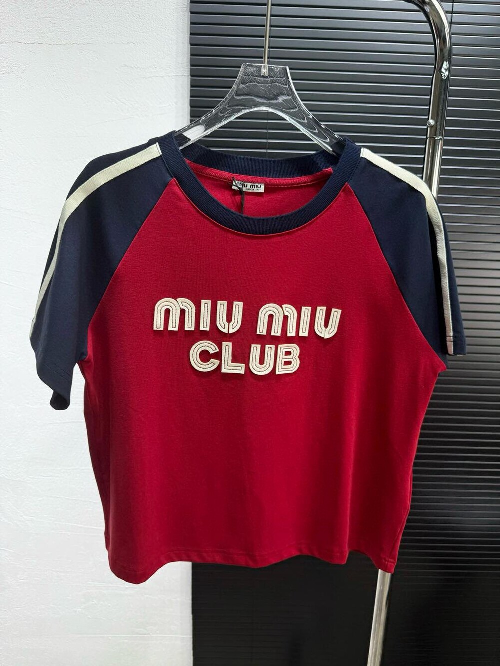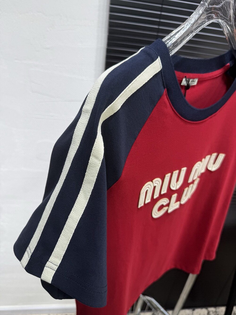 J. 뮤뮤 크롭 배색 티셔츠