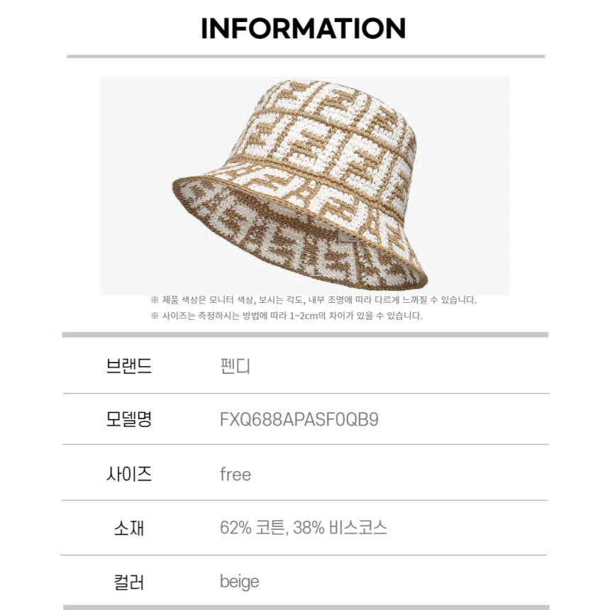 [국내재고보유] 펜디 FF 모티프 라피아 버킷햇 BEIGE FXQ688APASF0QB9