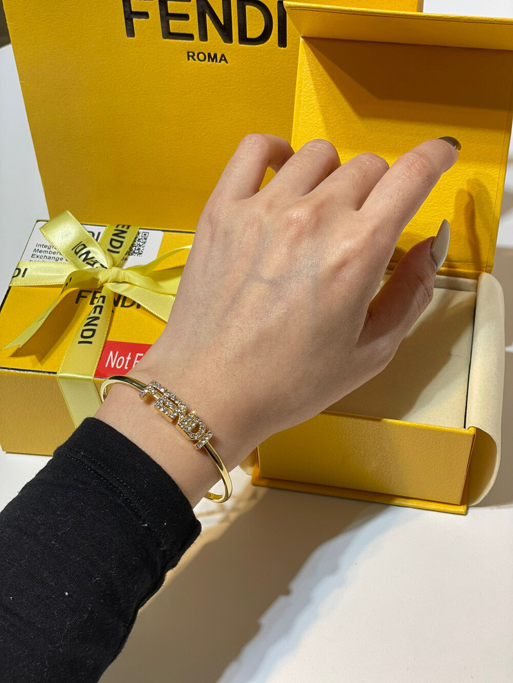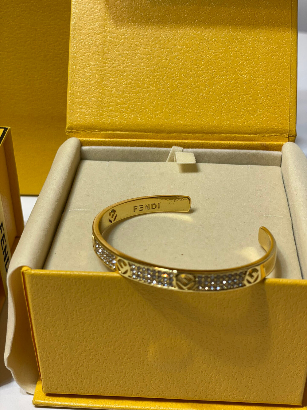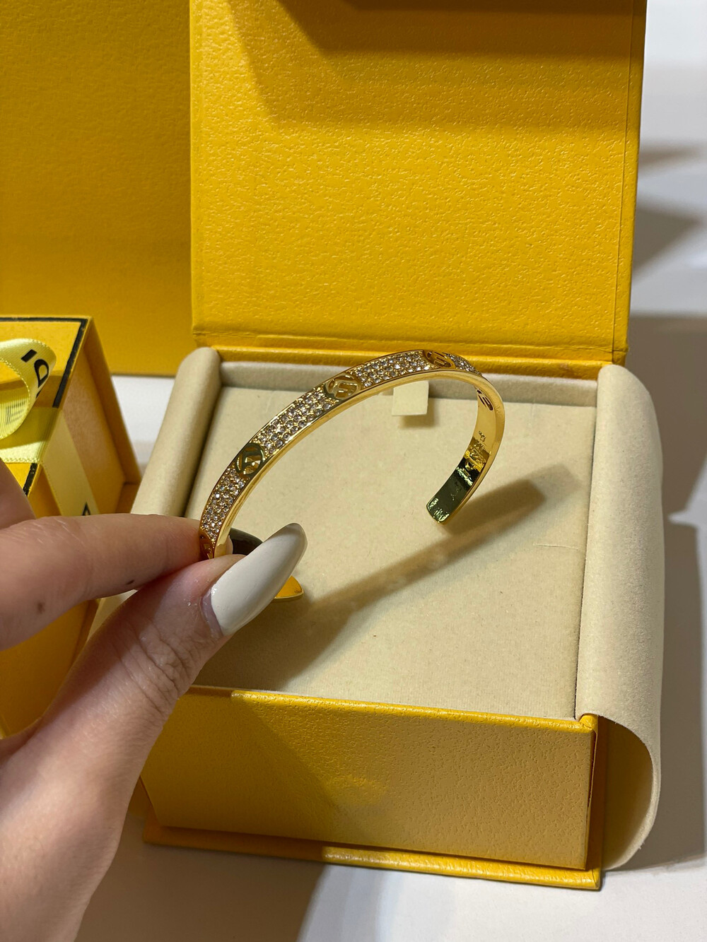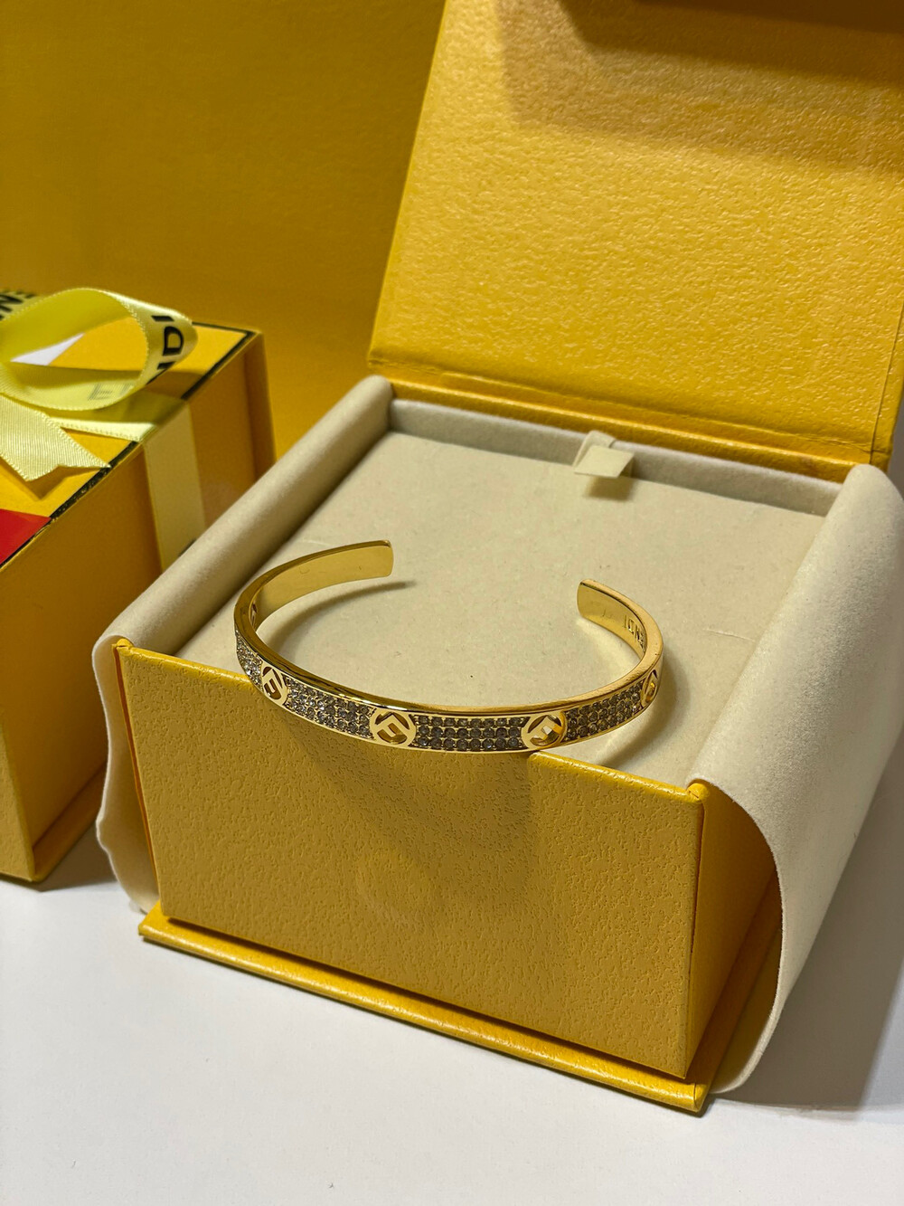 [Membership Ceremony]Fendi Full Diamond Open Braceletfree size openingbottom clear stamp Full set of Premium Gift Boxes