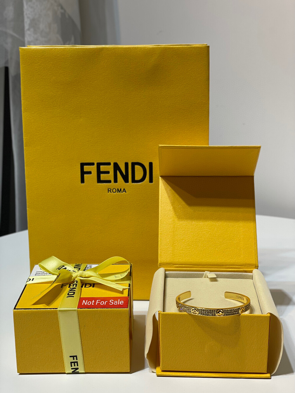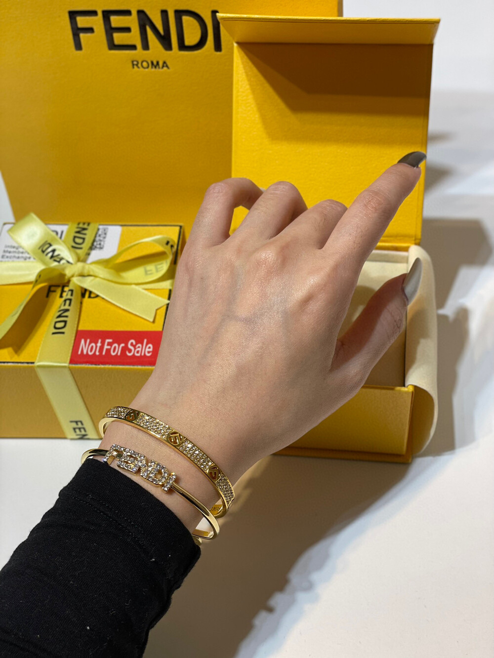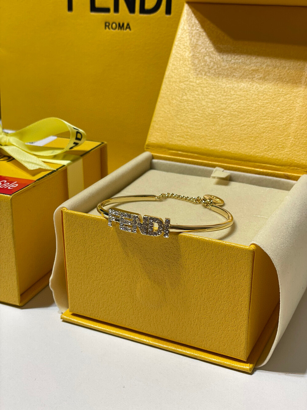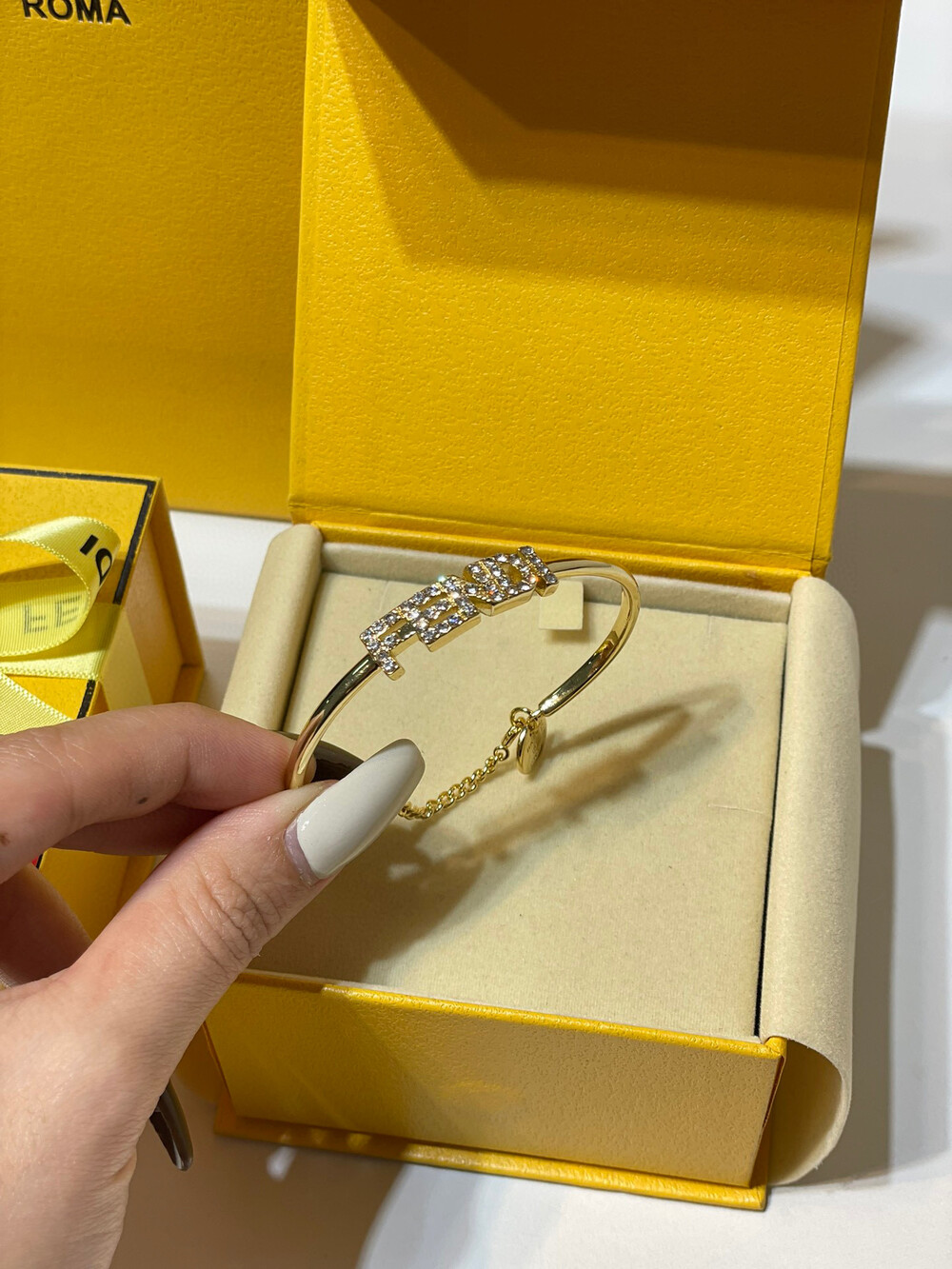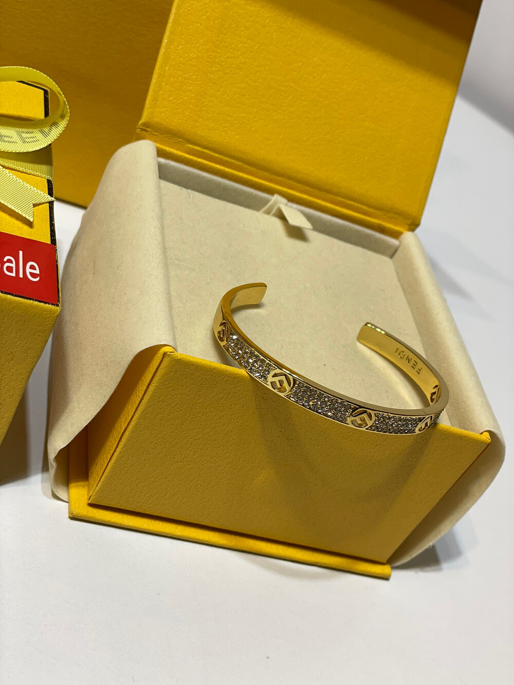 [Membership Ceremony]Fendi Full Diamond Open Braceletfree size openingbottom clear stamp Full set of Premium Gift Boxes