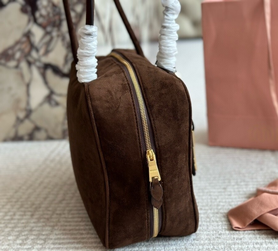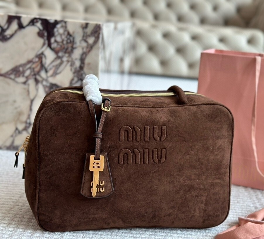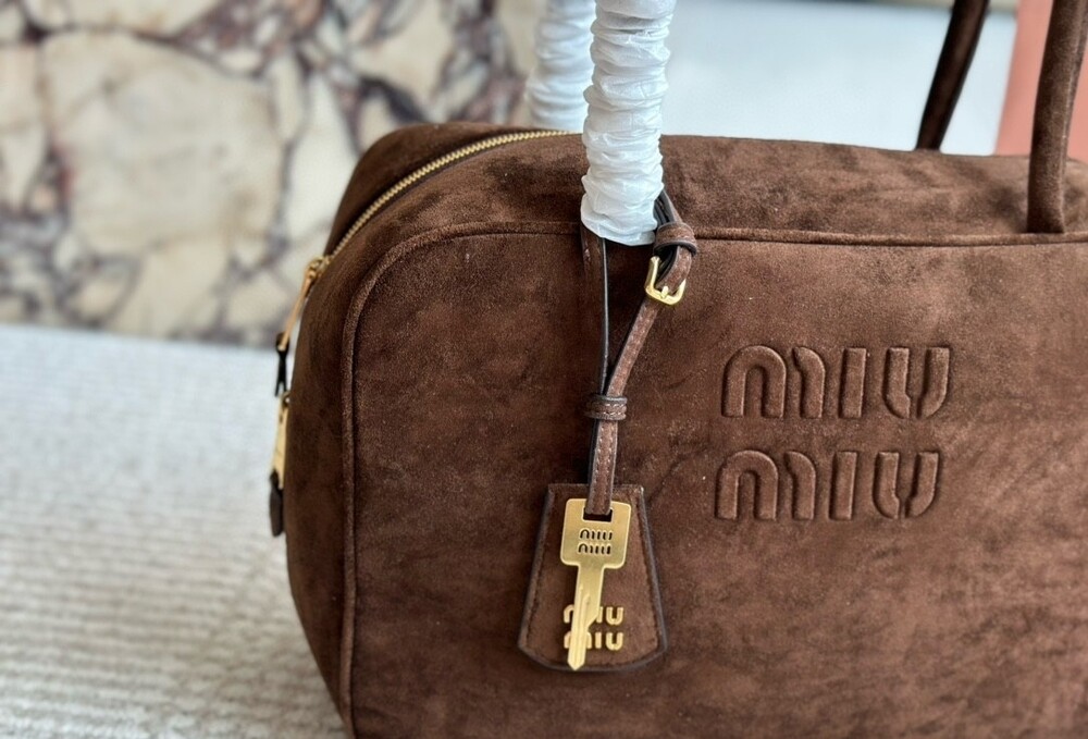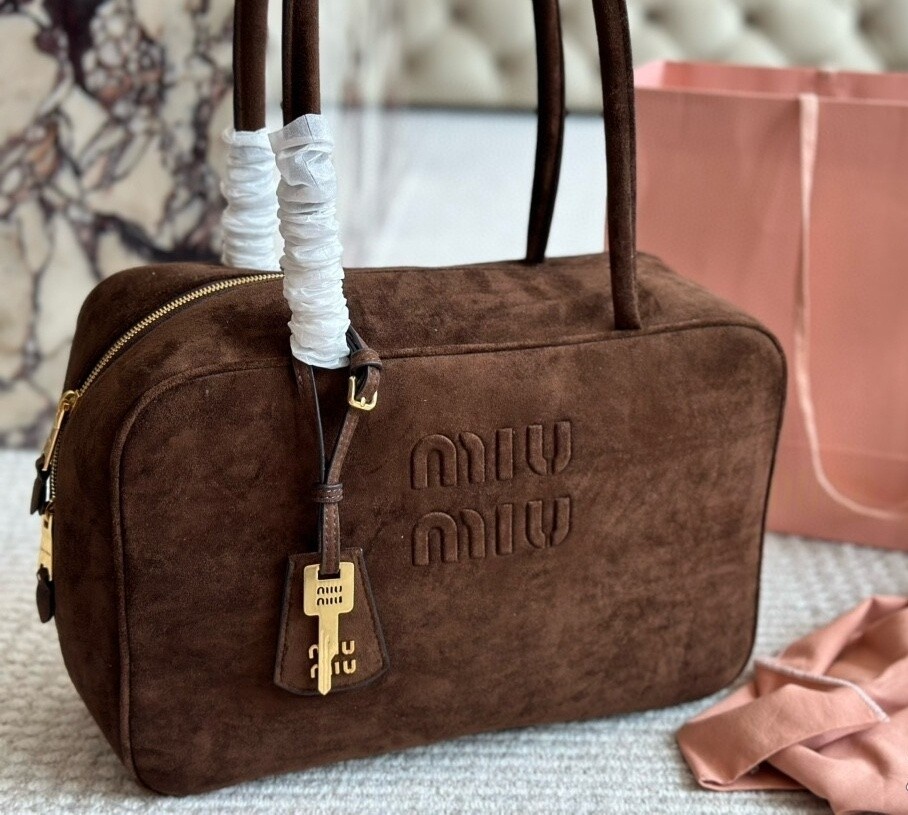 Miumiu Bowling/Briefcase/ Using calfskinThe leather is smooth and soft. cotton satin lining Nice on the back. You can carry it hand-to-hand or cross. It's the little princess of Miumiu