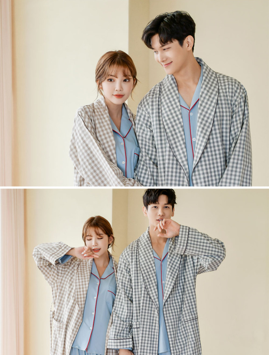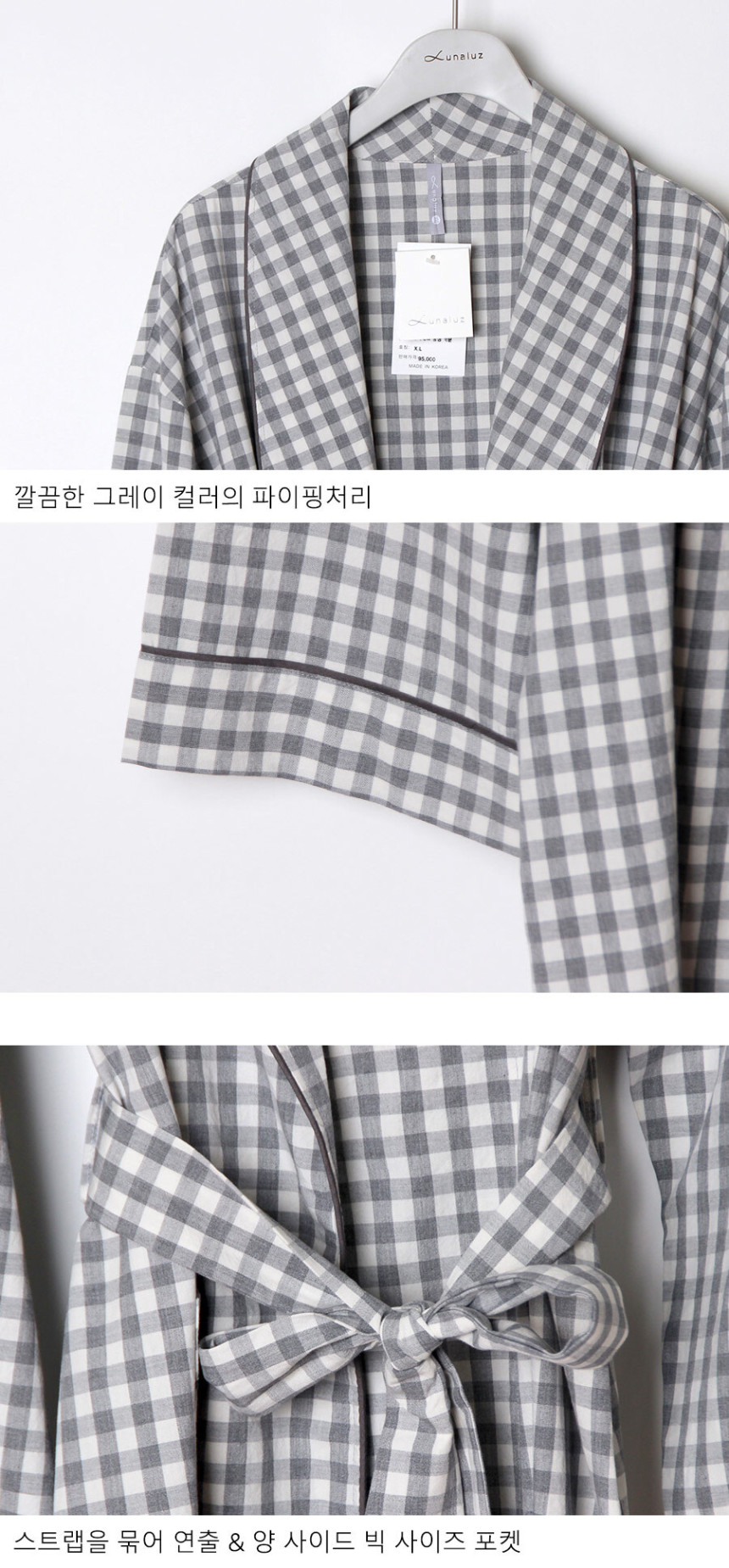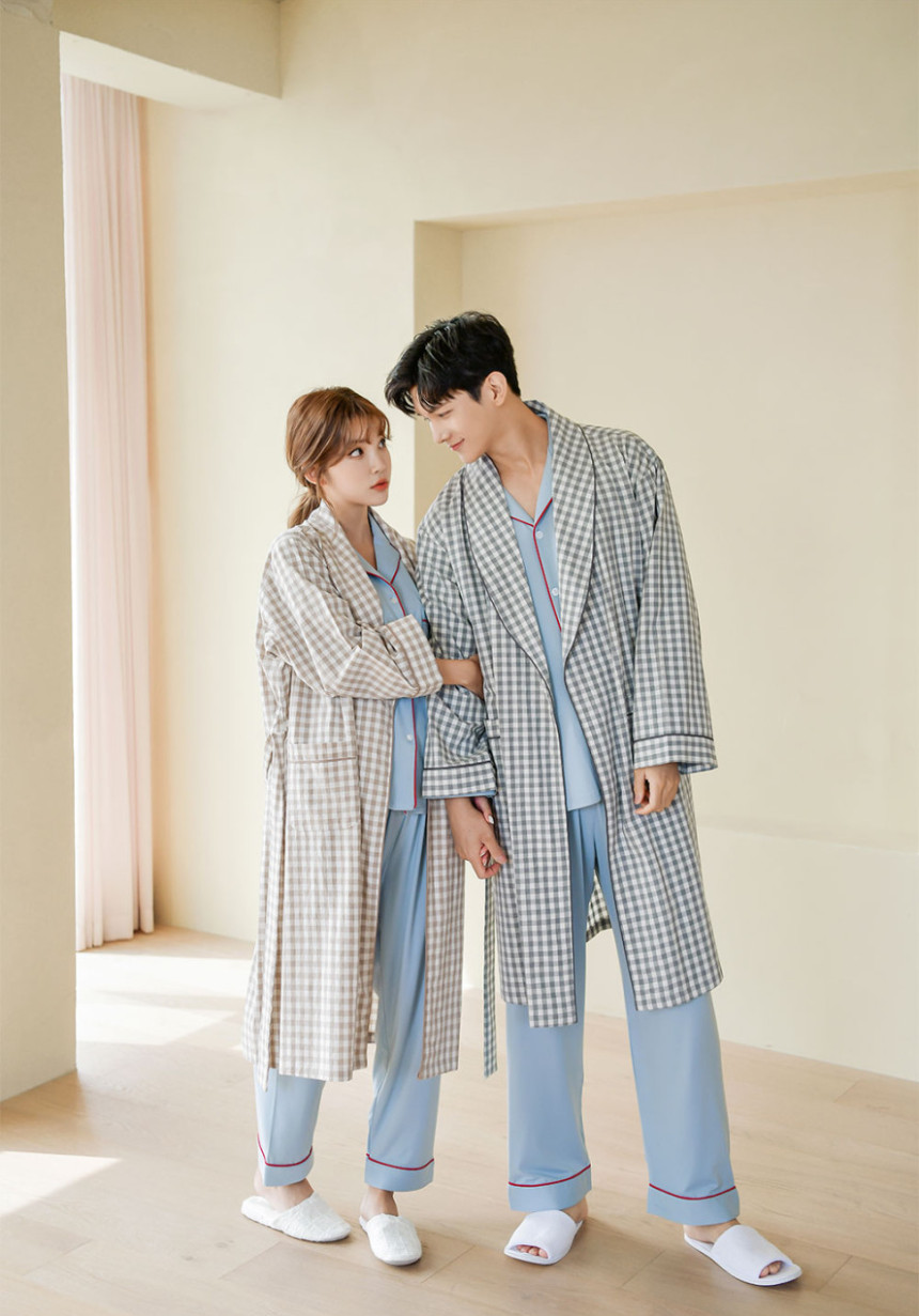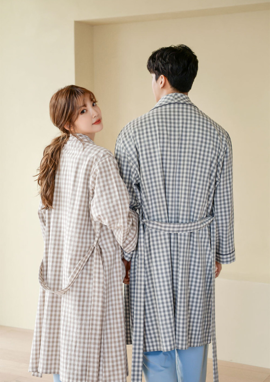 여성 남성 커플 클래식체크 가운 수면 잠옷