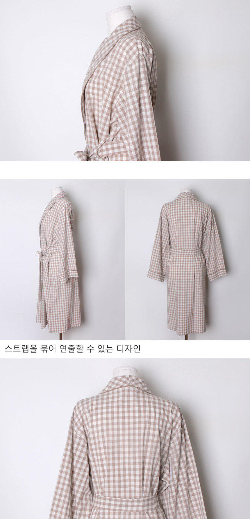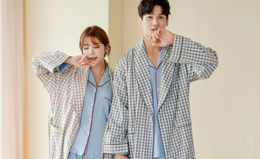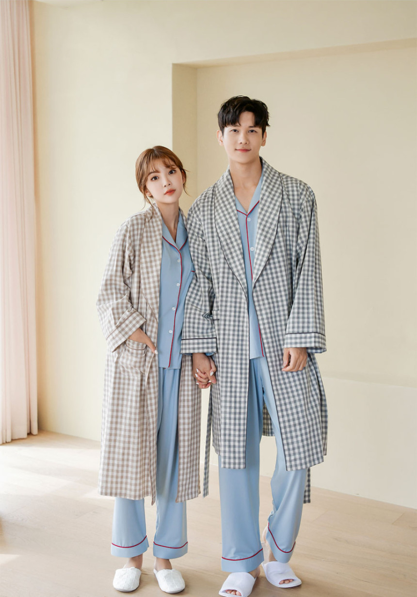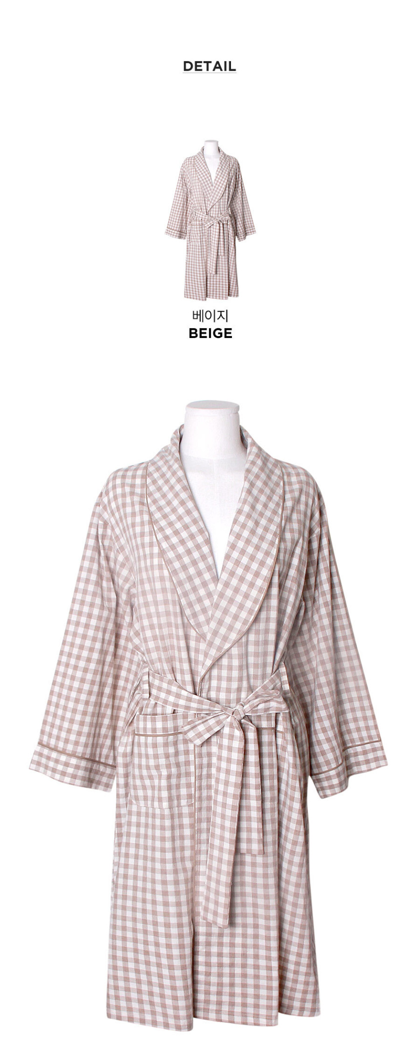 여성 남성 커플 클래식체크 가운 수면 잠옷