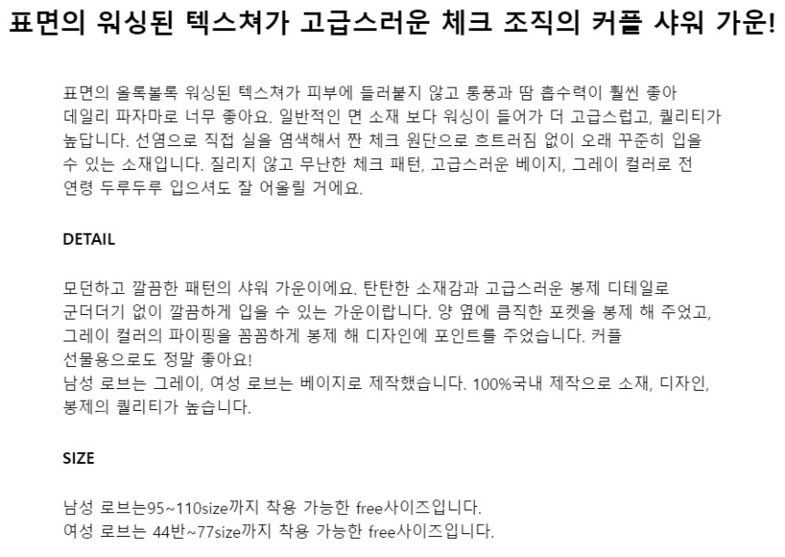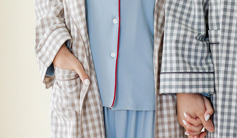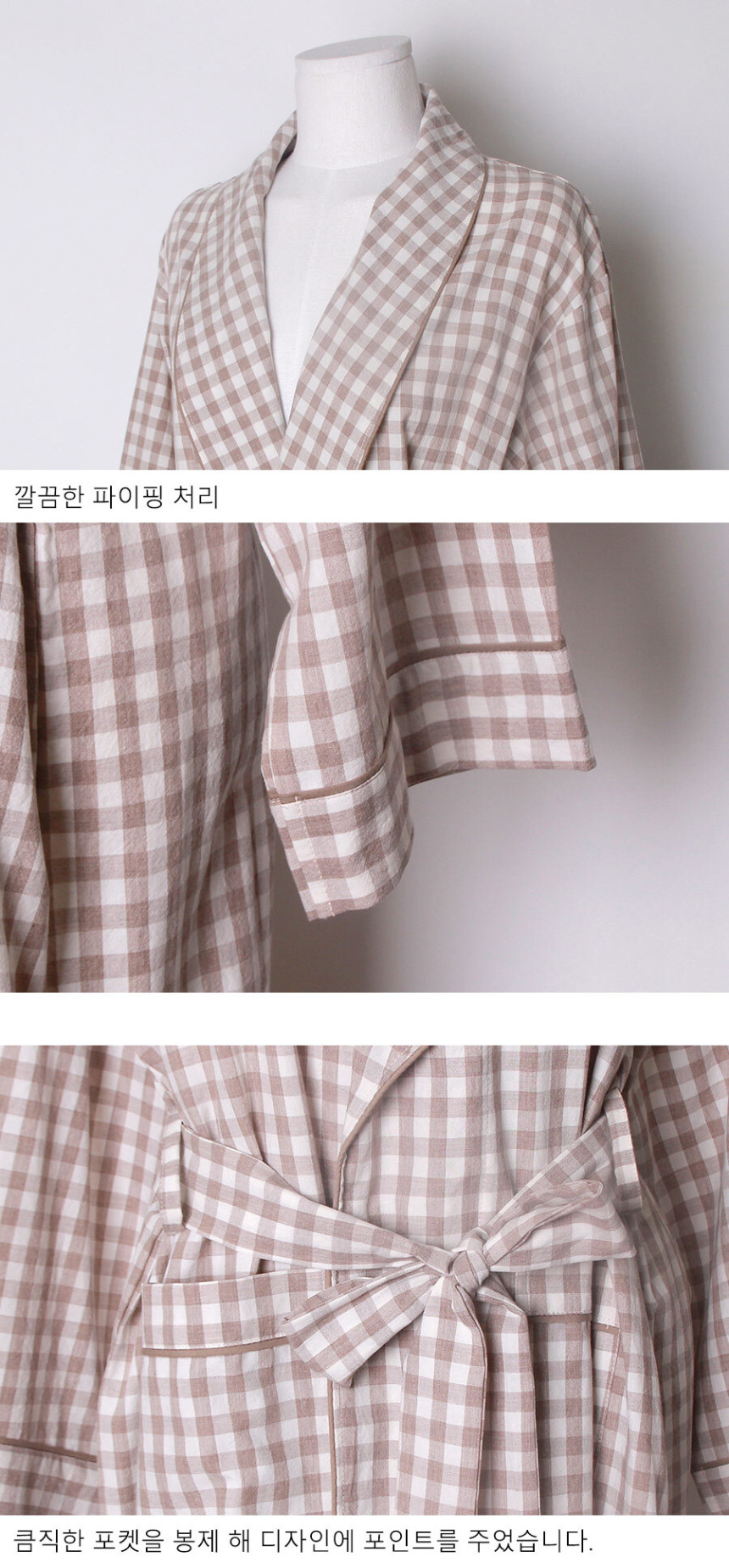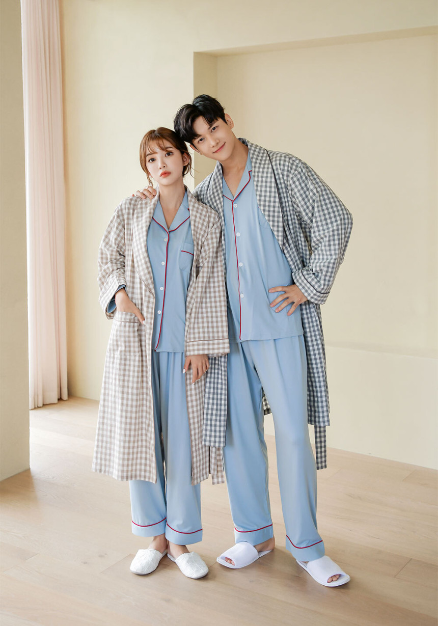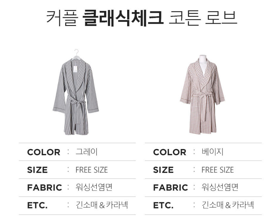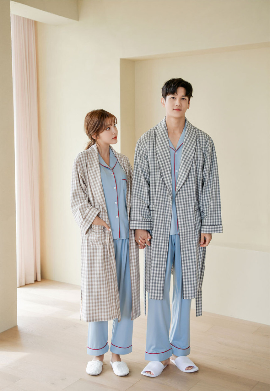 여성 남성 커플 클래식체크 가운 수면 잠옷
