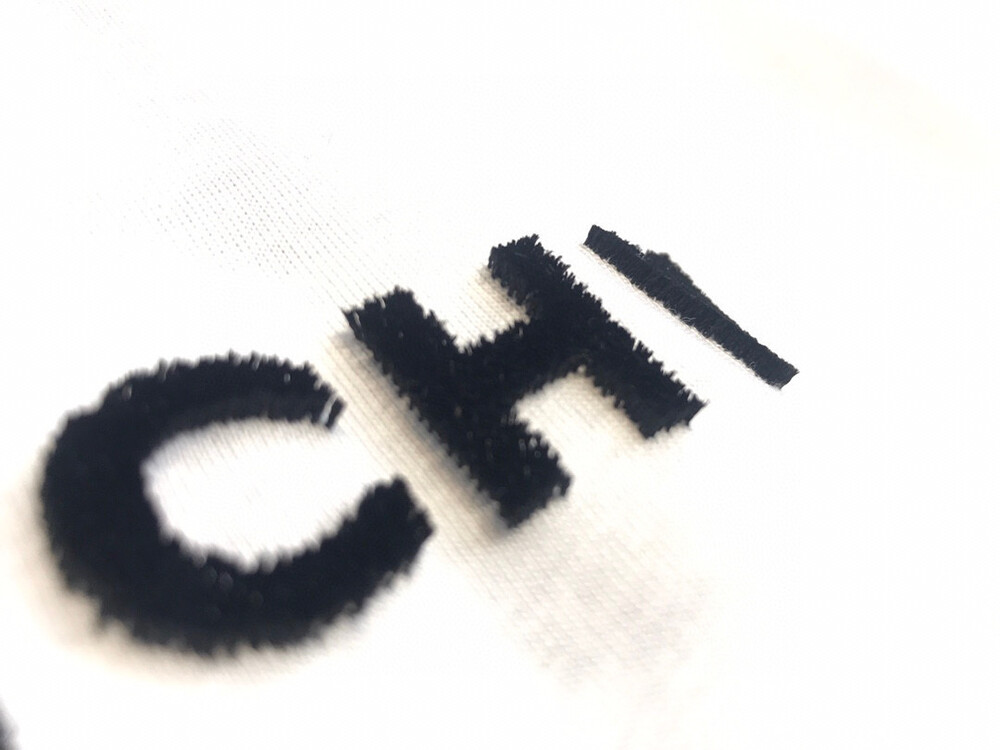 귀여운 입체 퍼 로고가 포인트인 티셔츠입니다