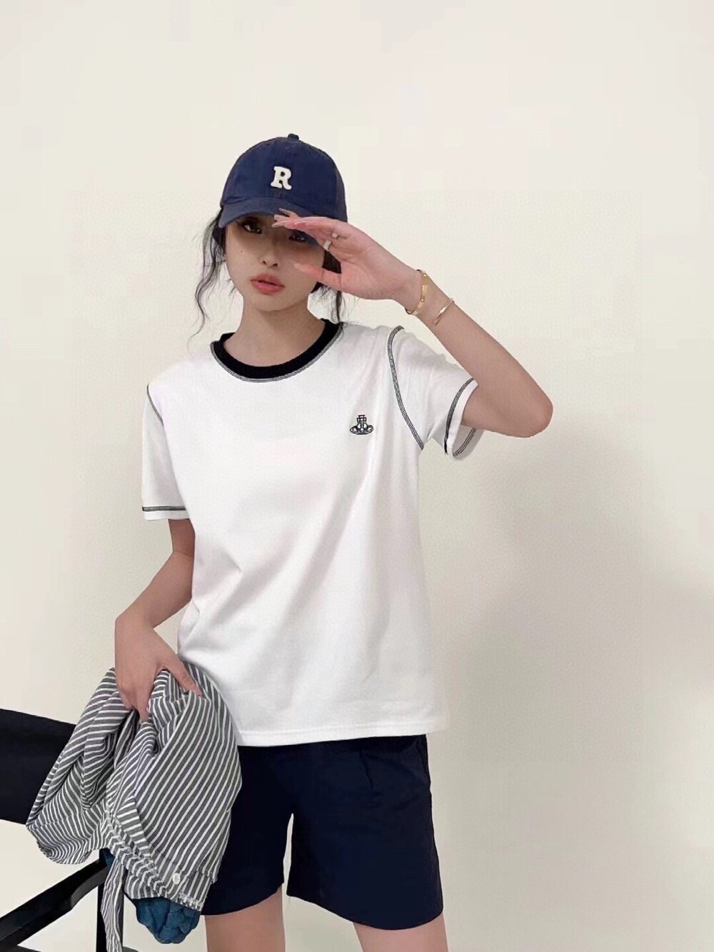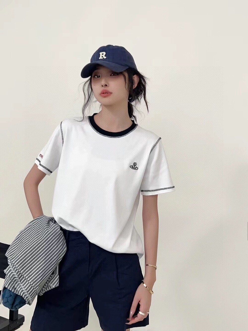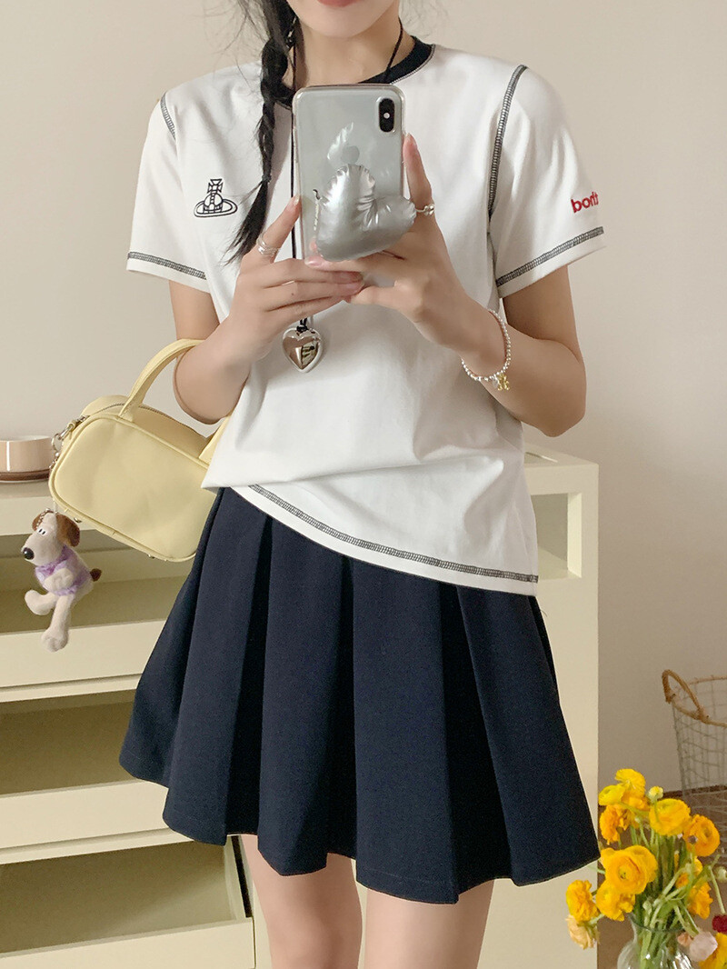 깔끔한 화이트 티셔츠에 배색,