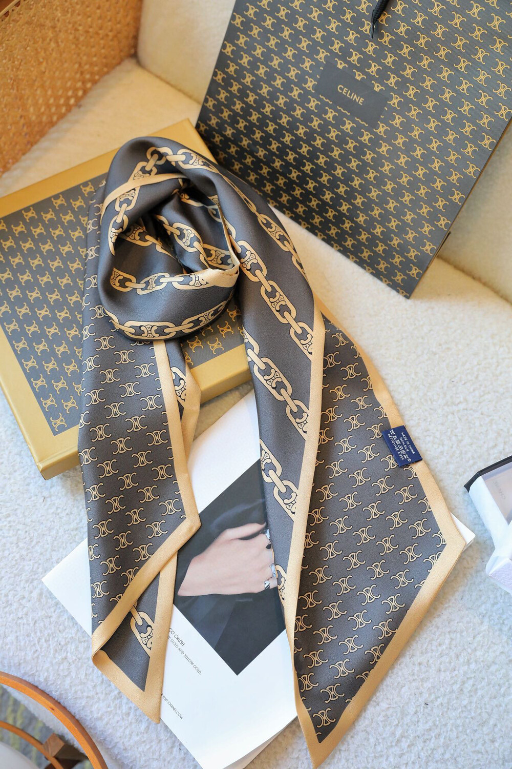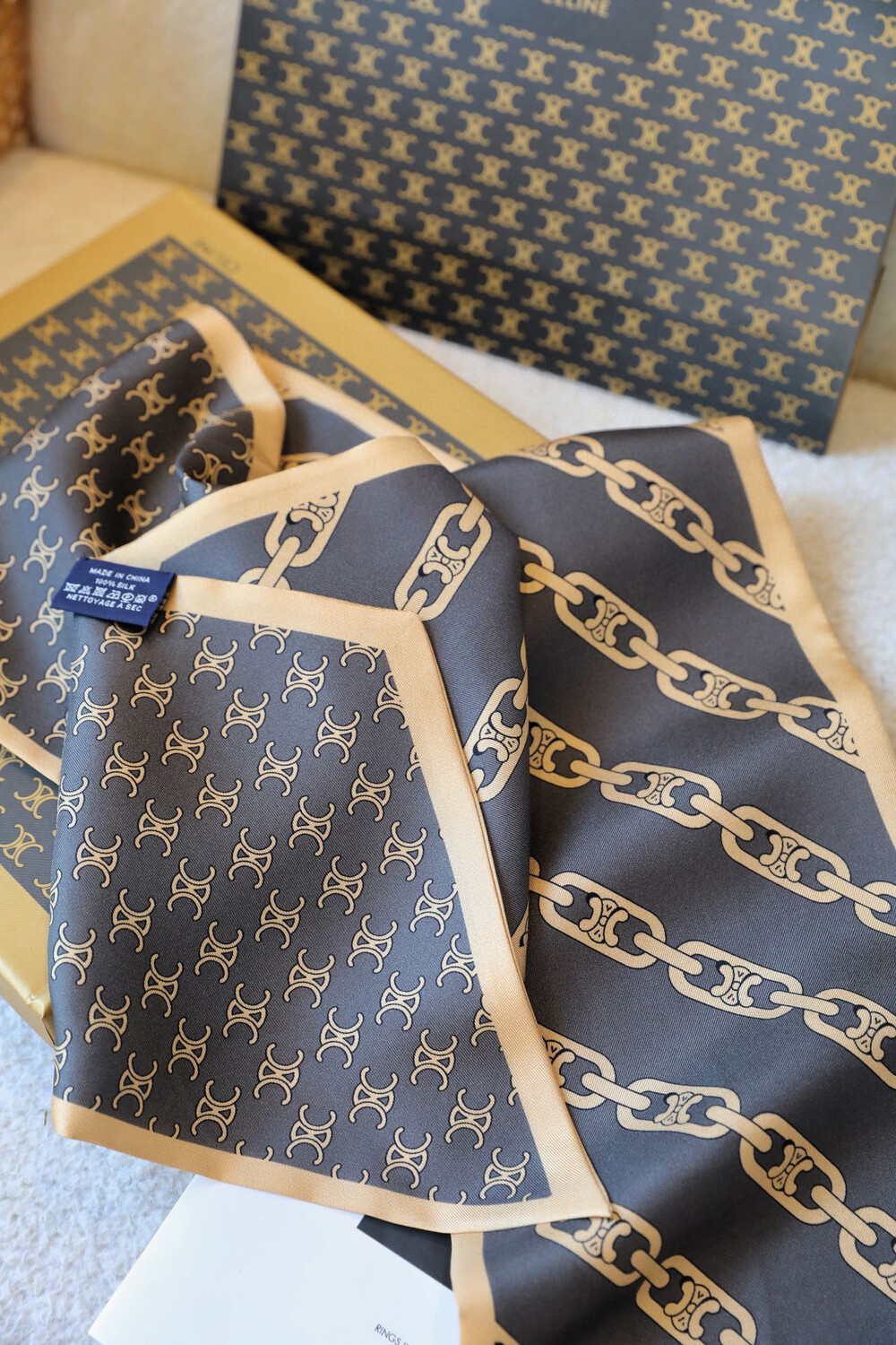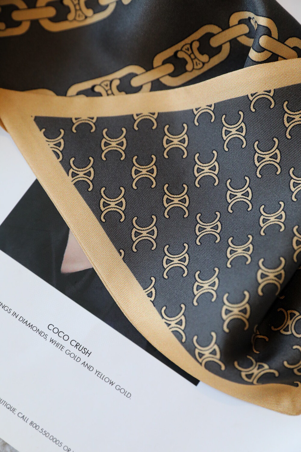 트리옹프 패턴이 이쁘게 눈에 잘 들어오는 셀린느 실크스카프입니다