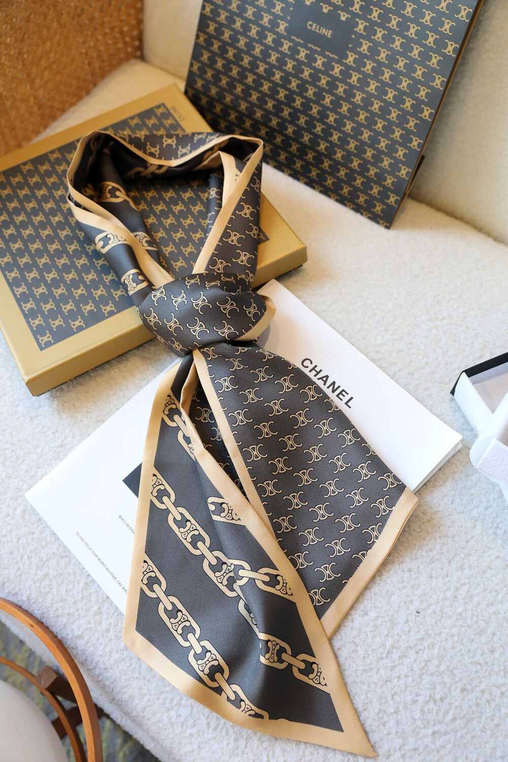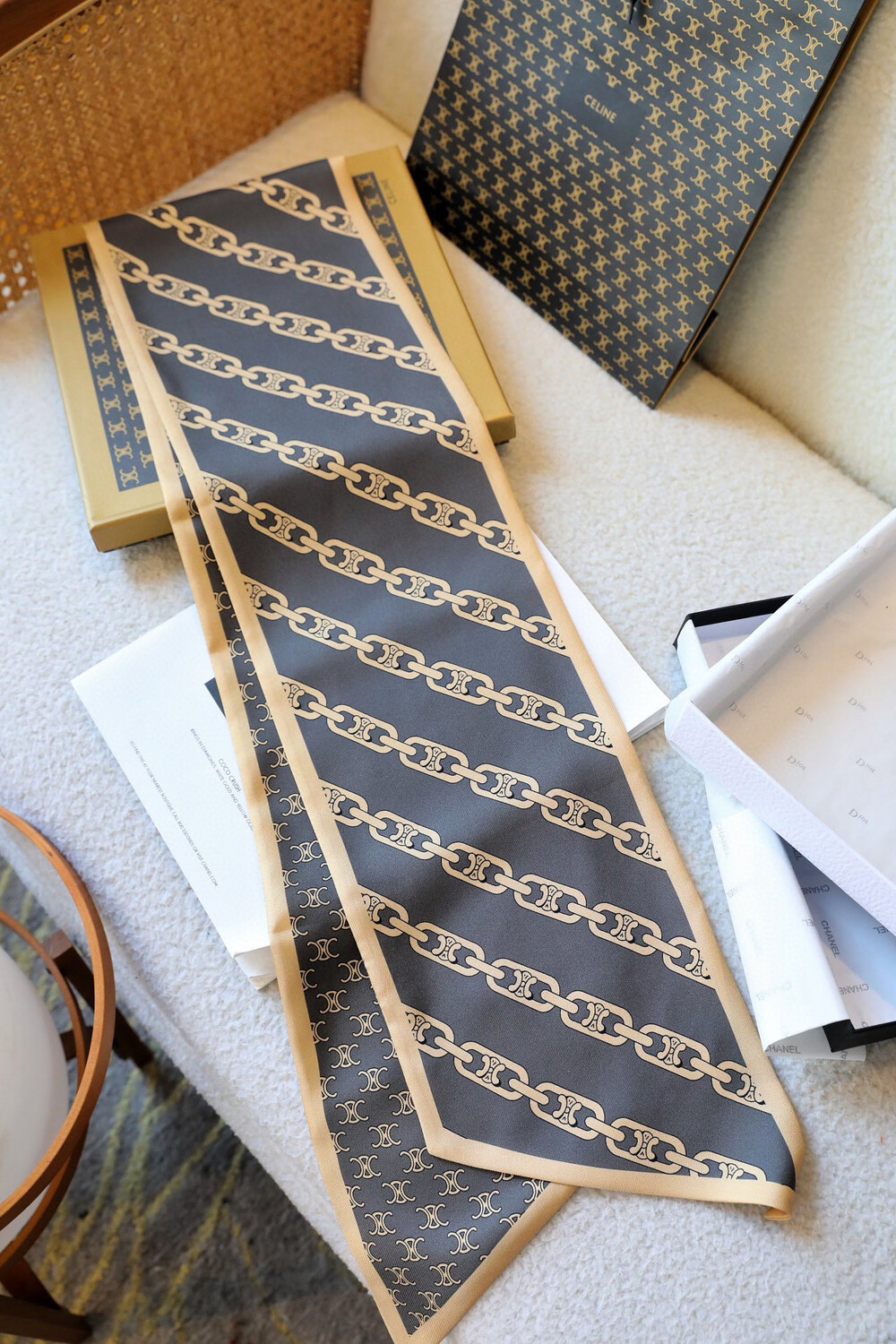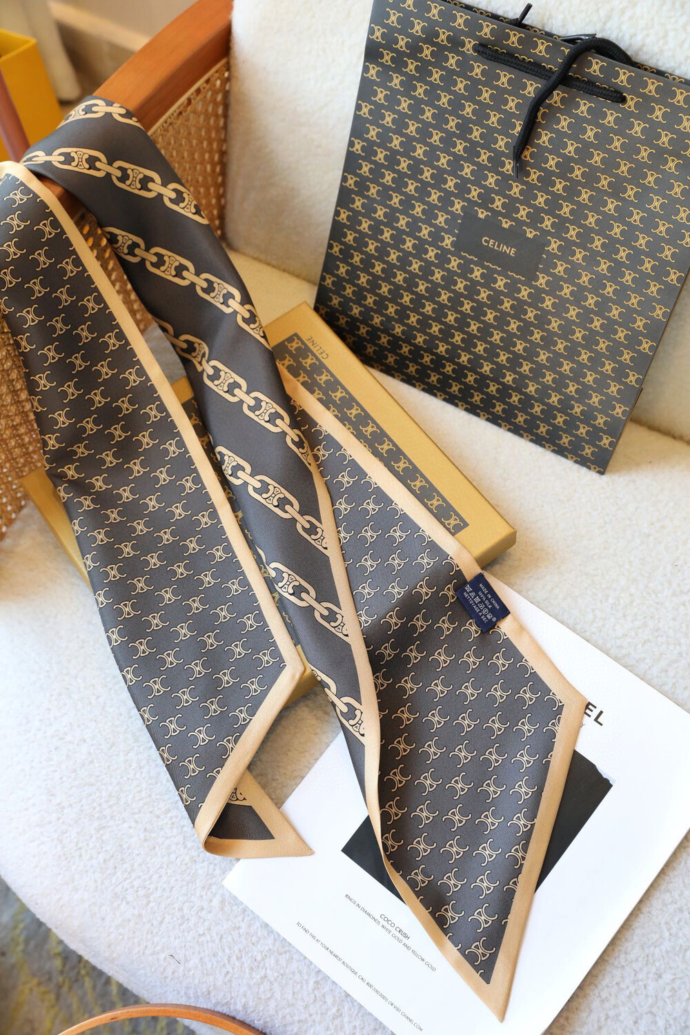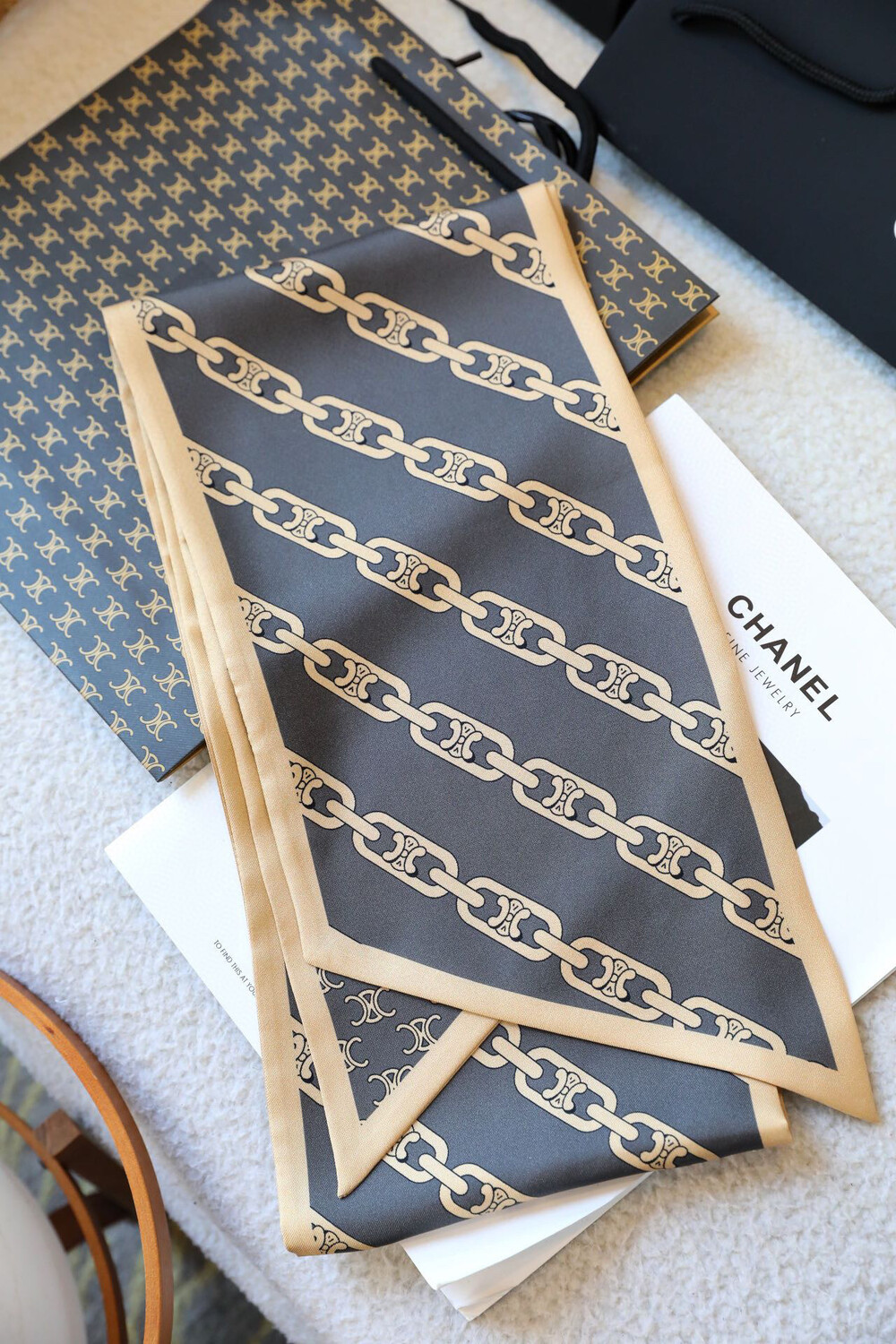 트리옹프 패턴이 이쁘게 눈에 잘 들어오는 셀린느 실크스카프입니다
