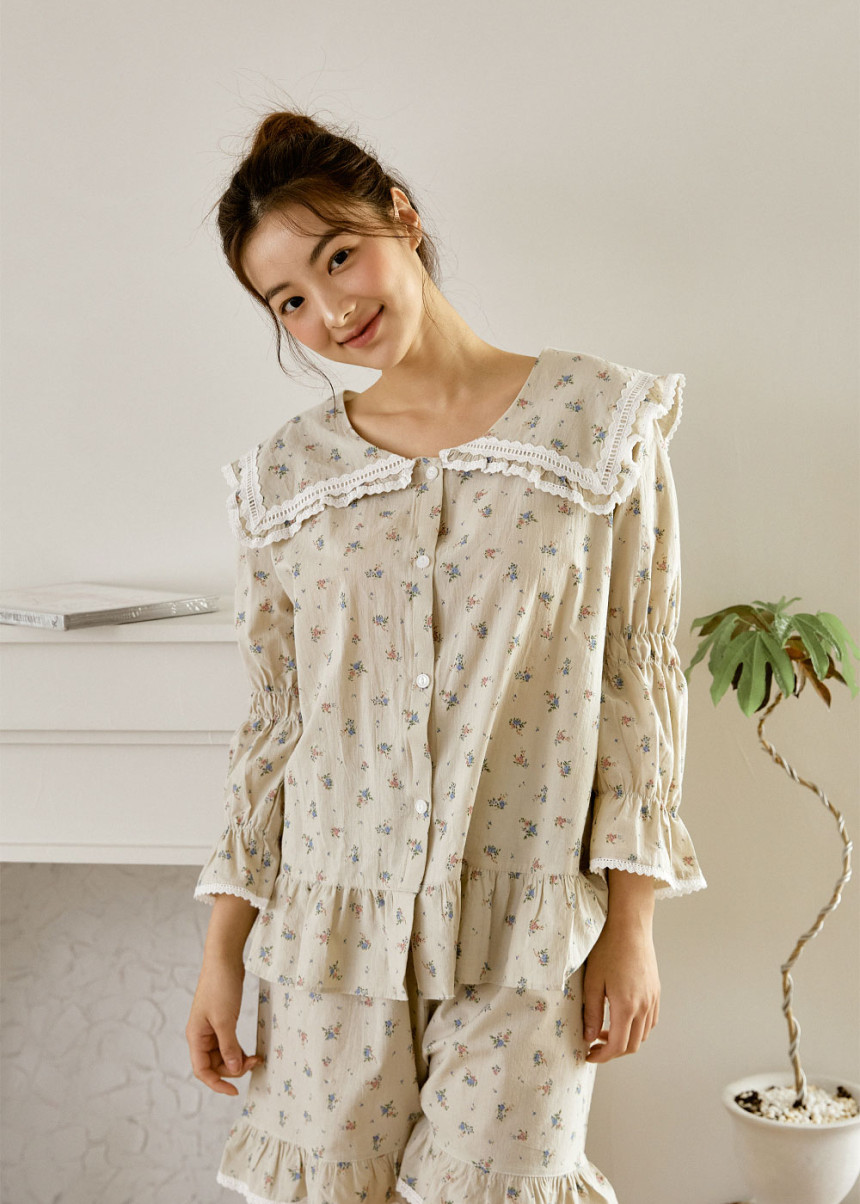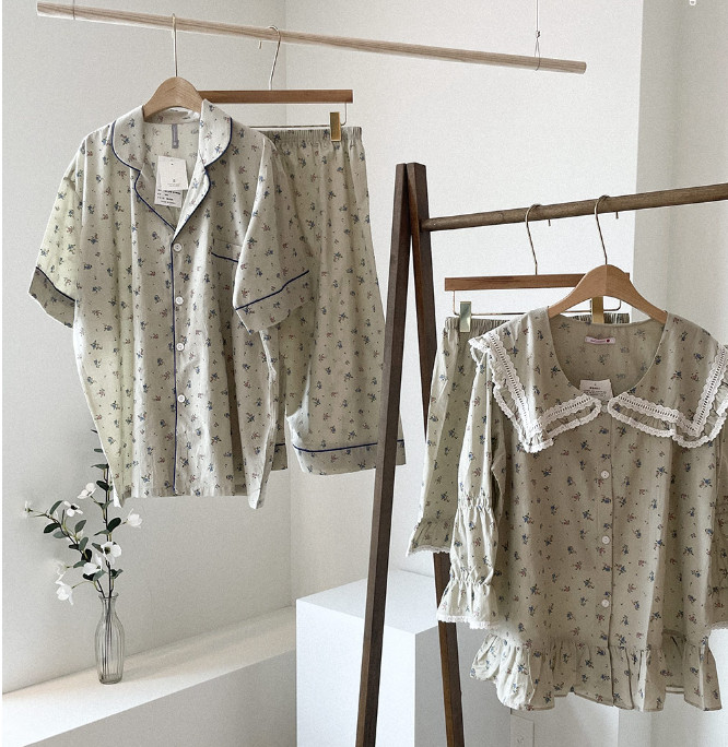 여성 남성 커플 버베나 투피스 수면 잠옷