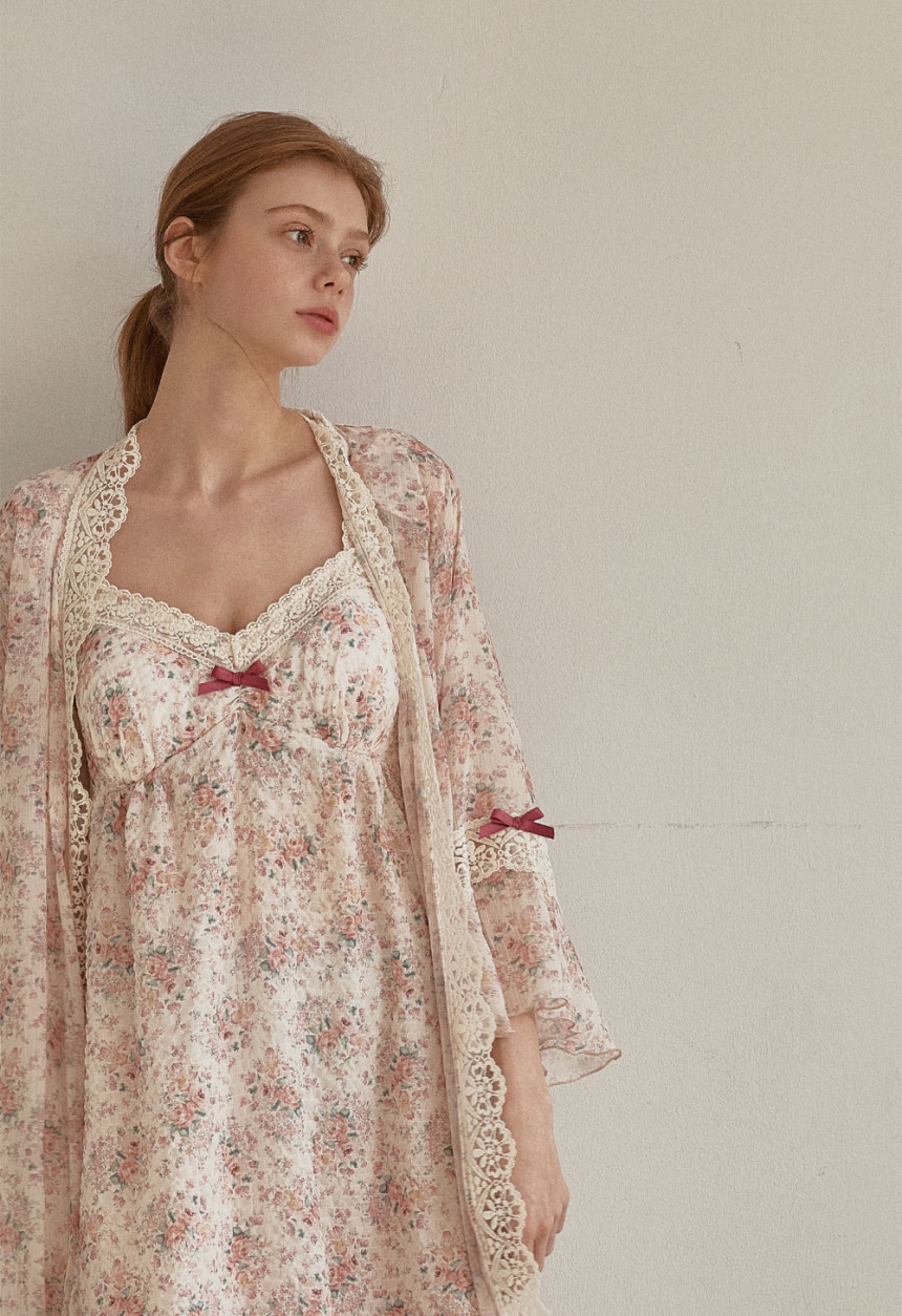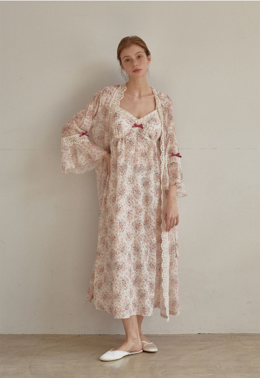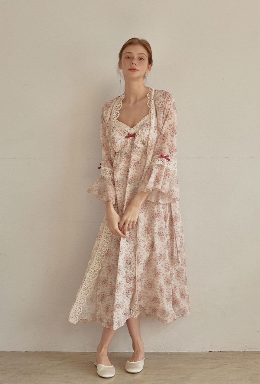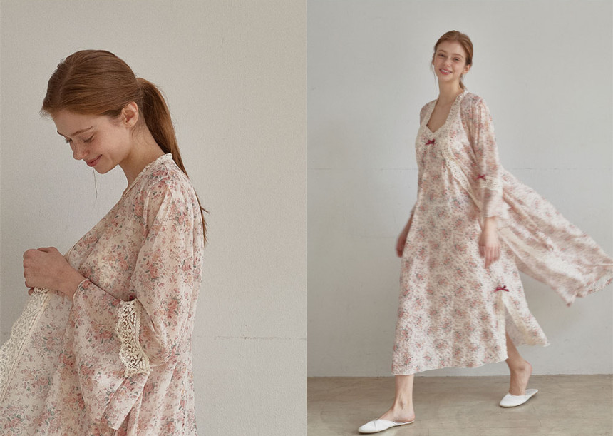 여성 에뚜알 원피스 가운 로브 수면 잠옷
