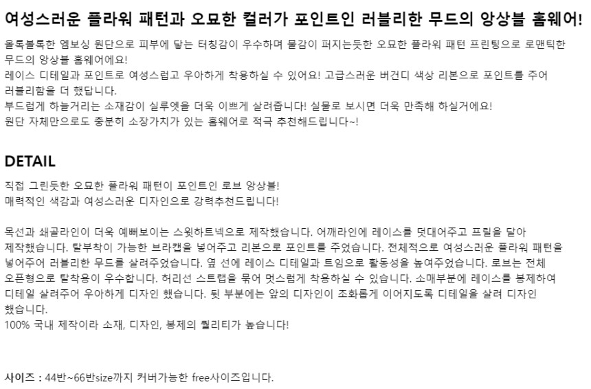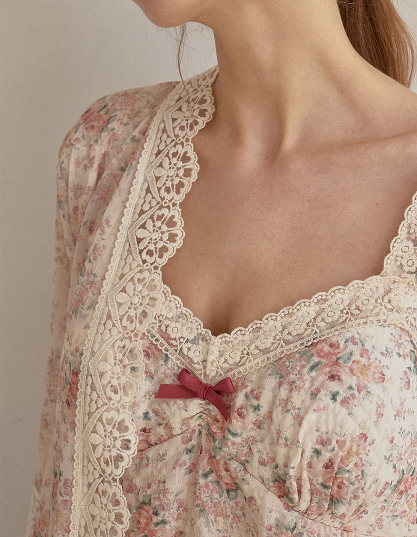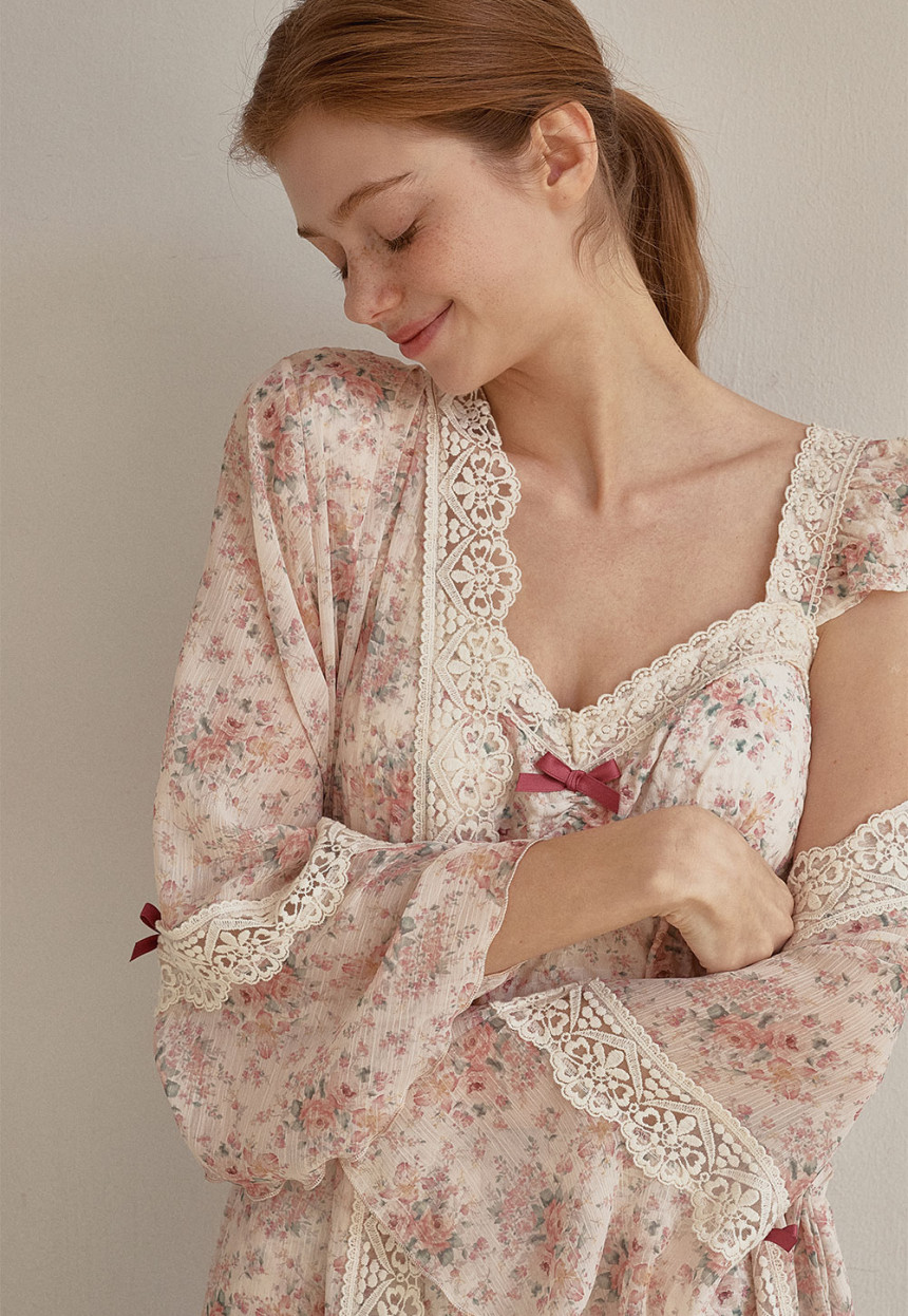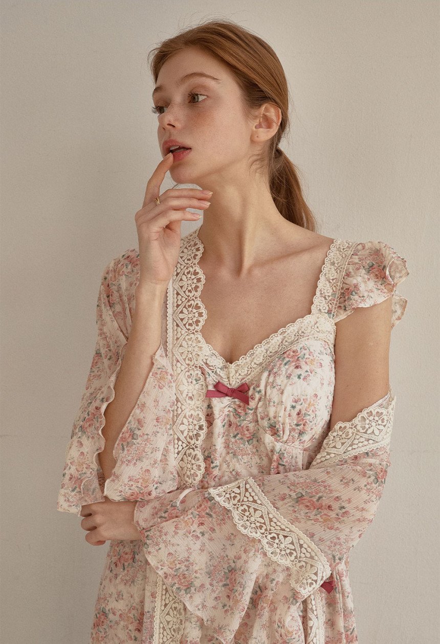 여성 에뚜알 원피스 가운 로브 수면 잠옷