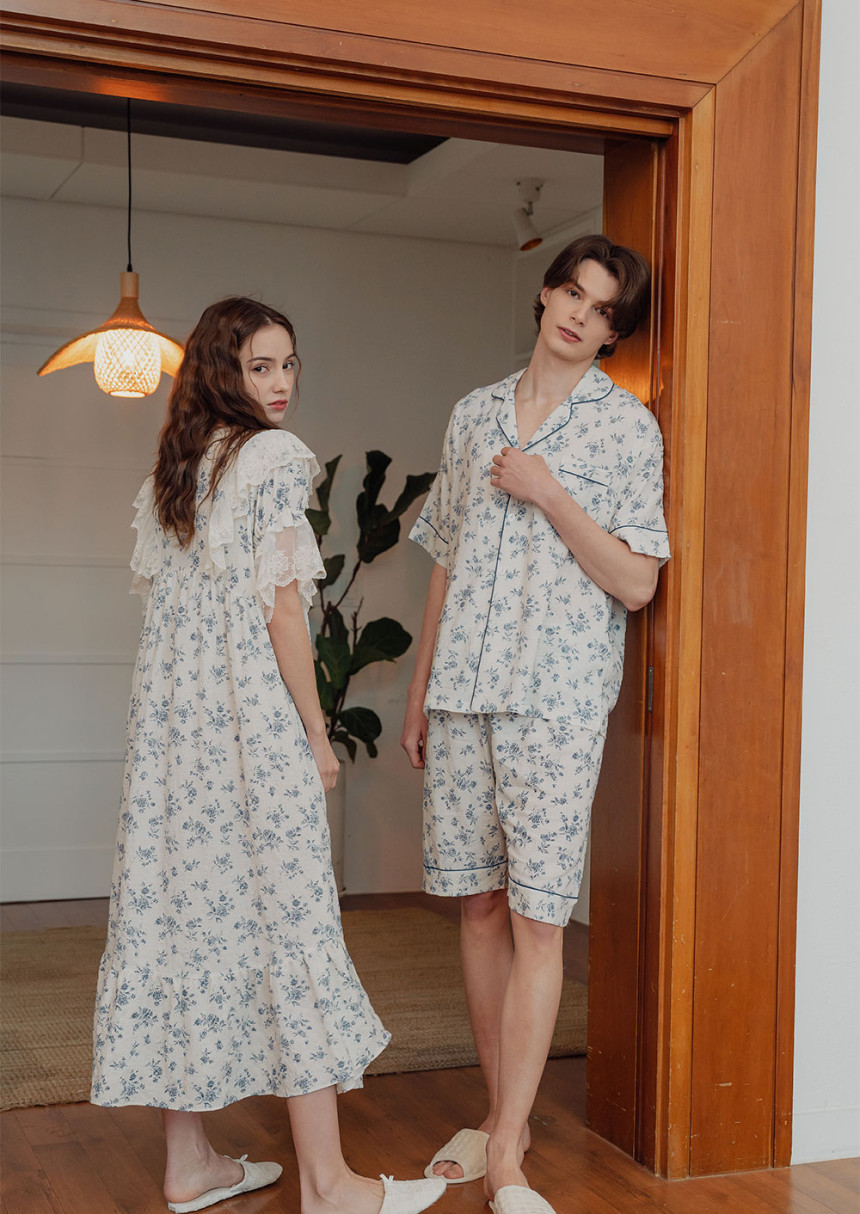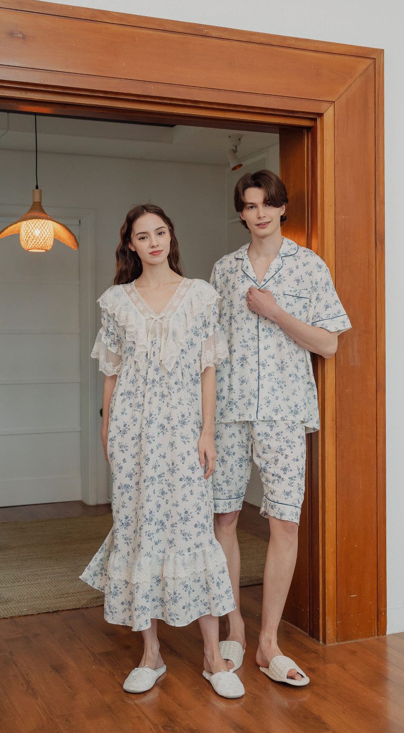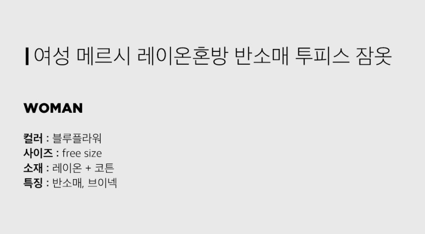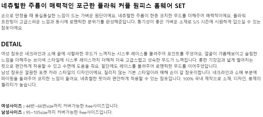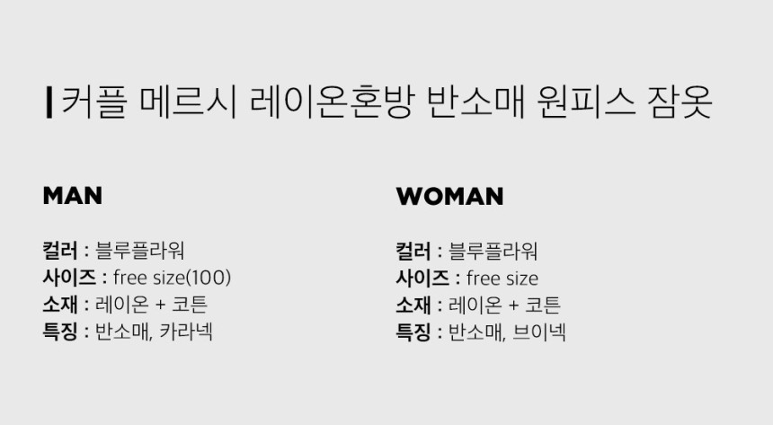 여성 남성 커플 메르시 원피스 투피스 수면 잠옷