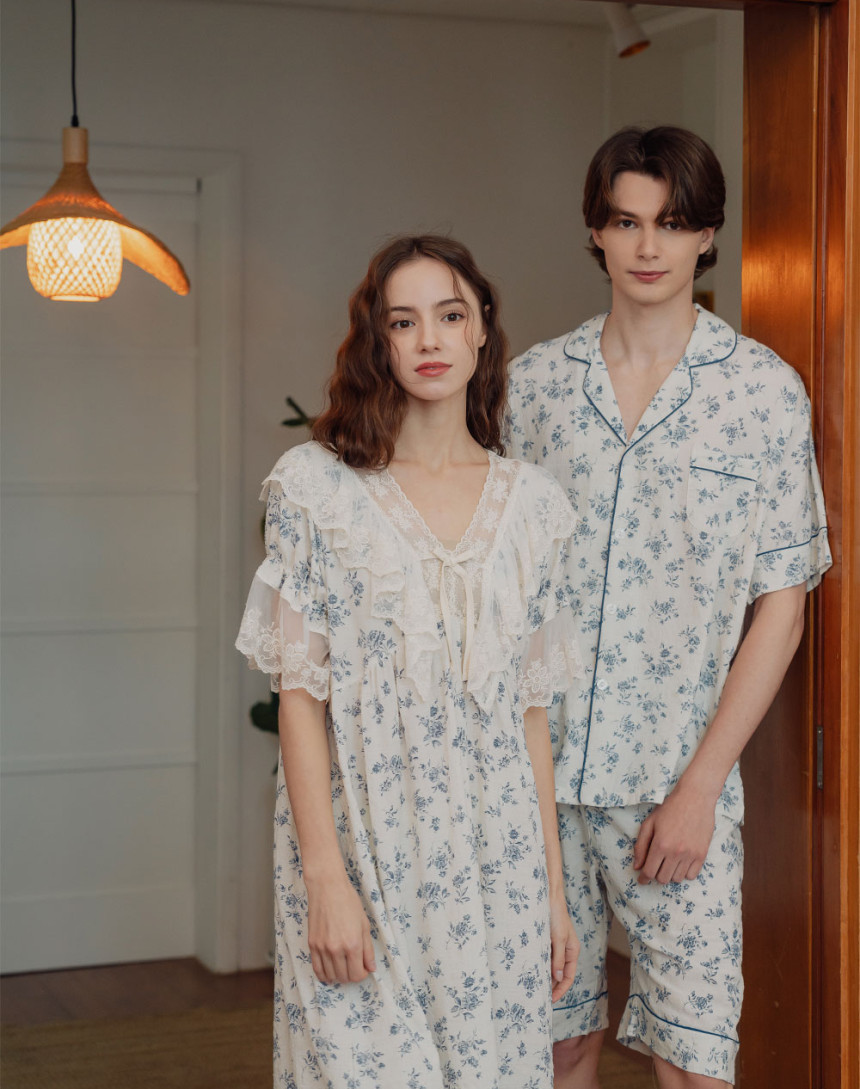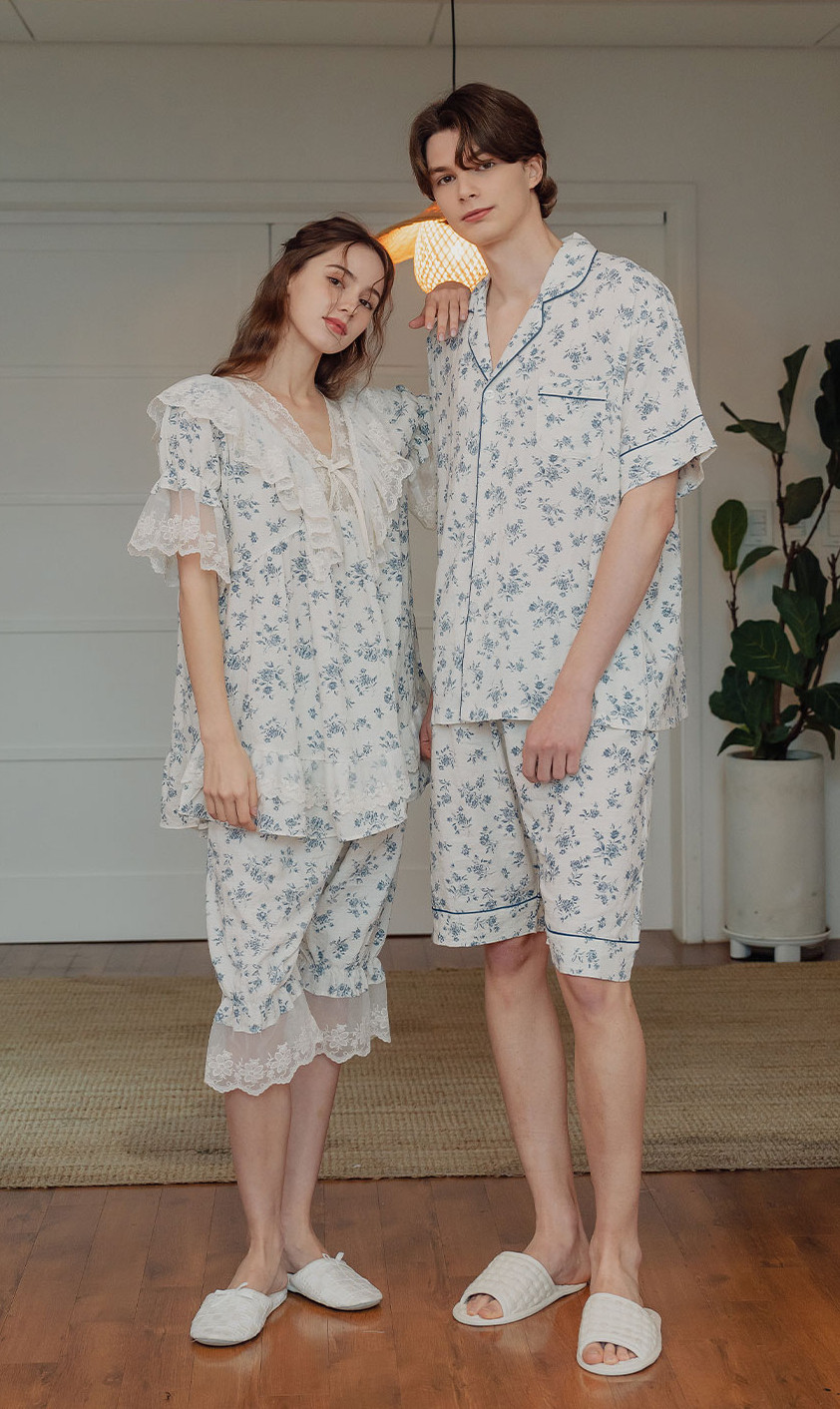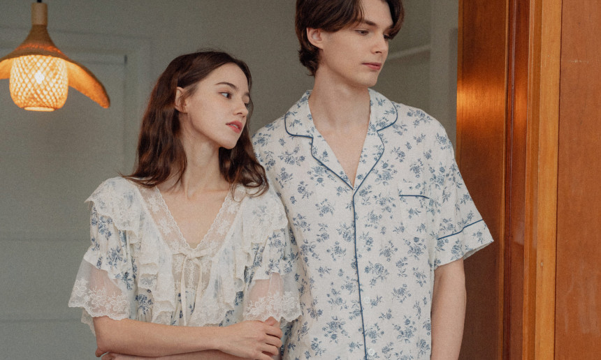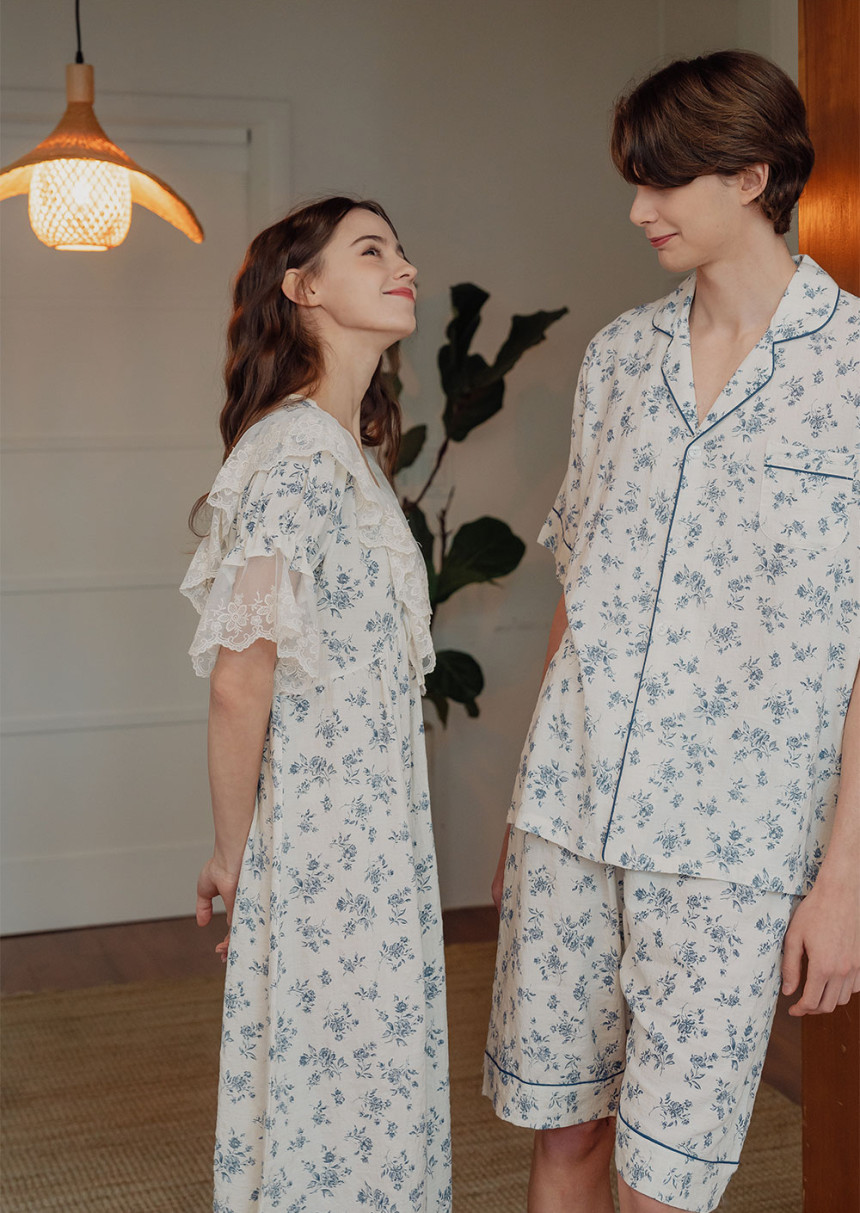 여성 남성 커플 메르시 원피스 투피스 수면 잠옷