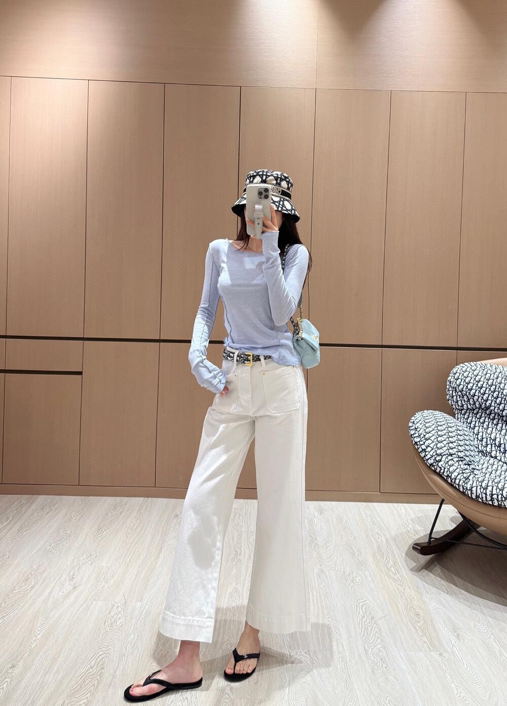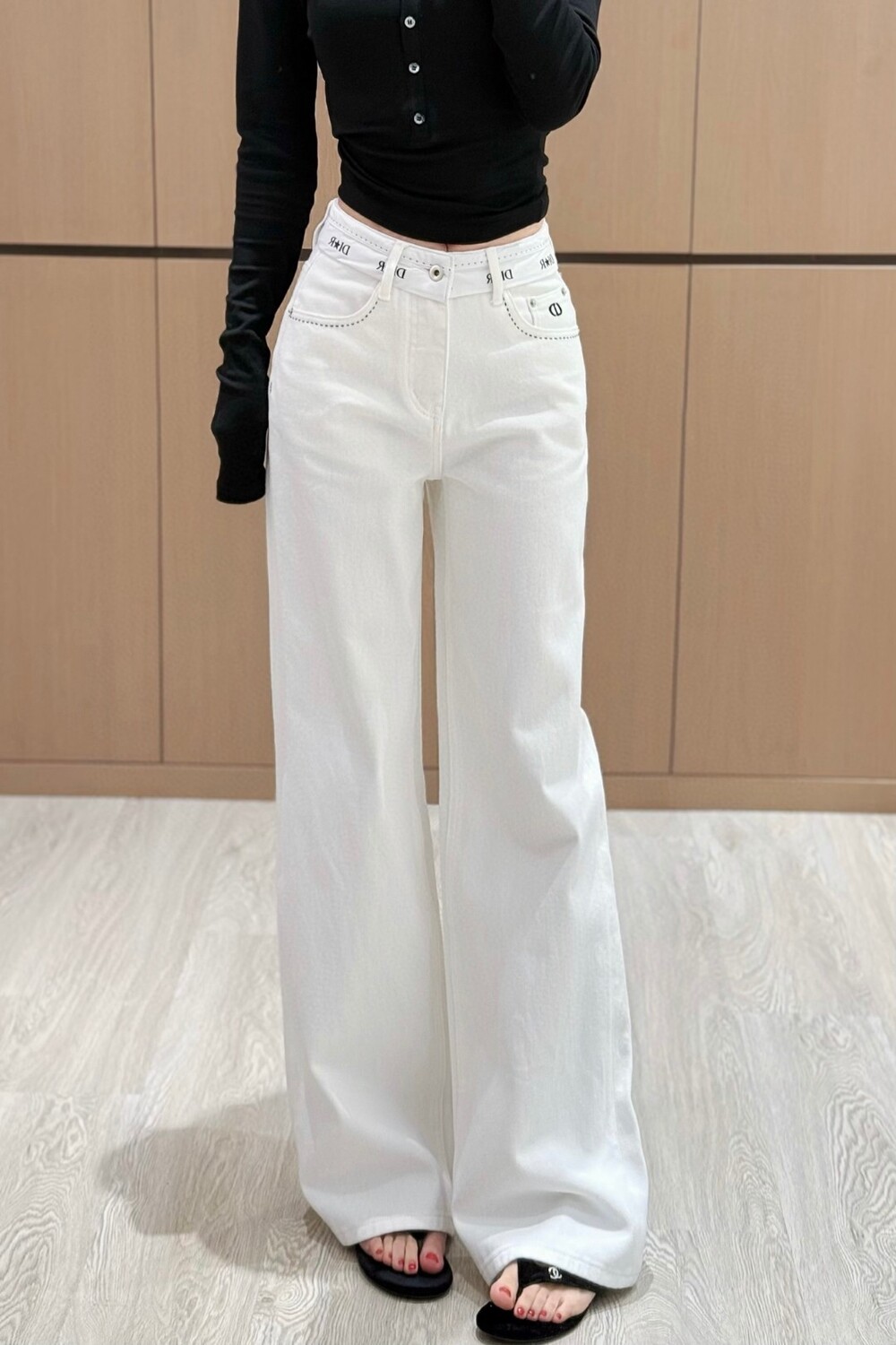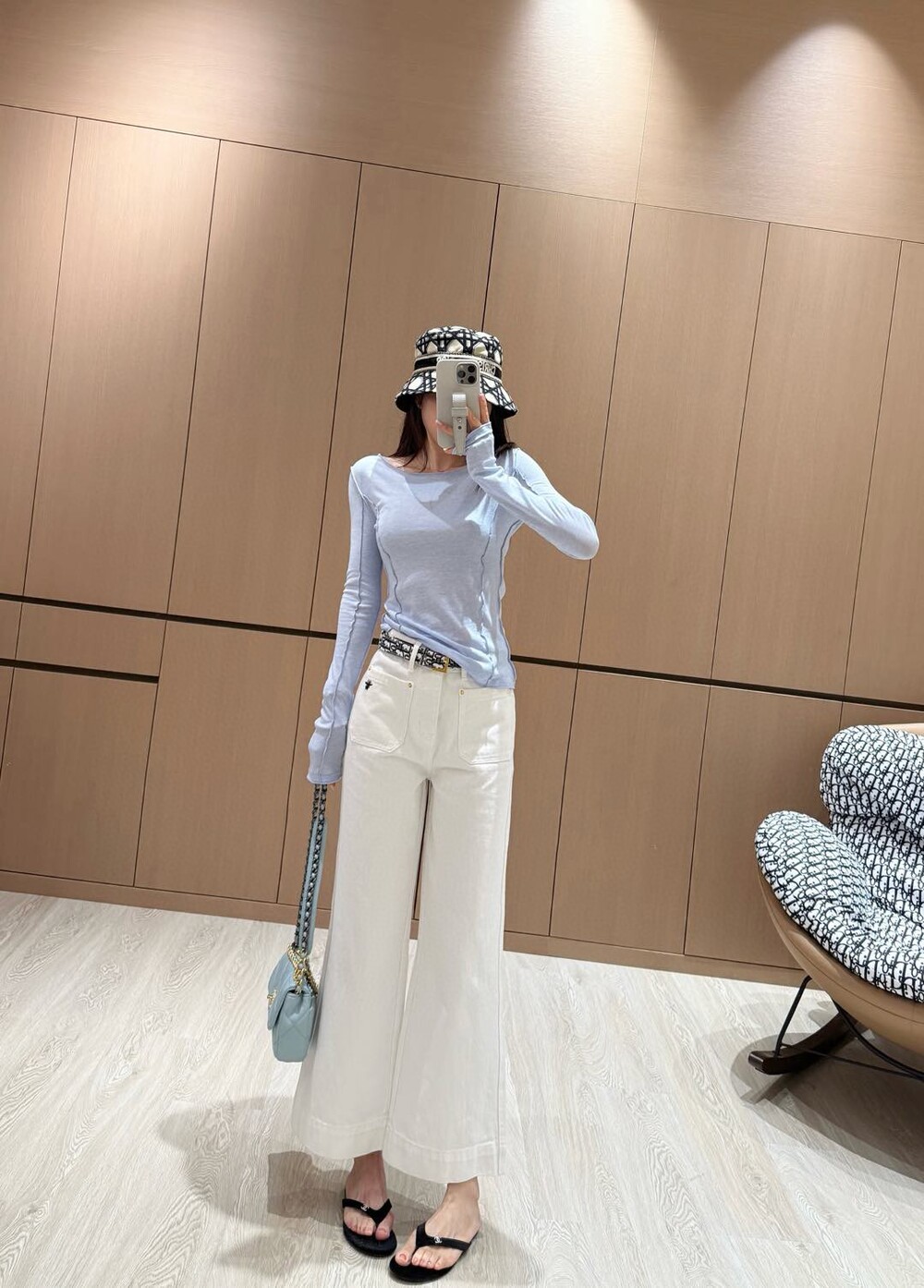 E. 로에 벨트 + 와이드 팬츠 (화이트/베이지)