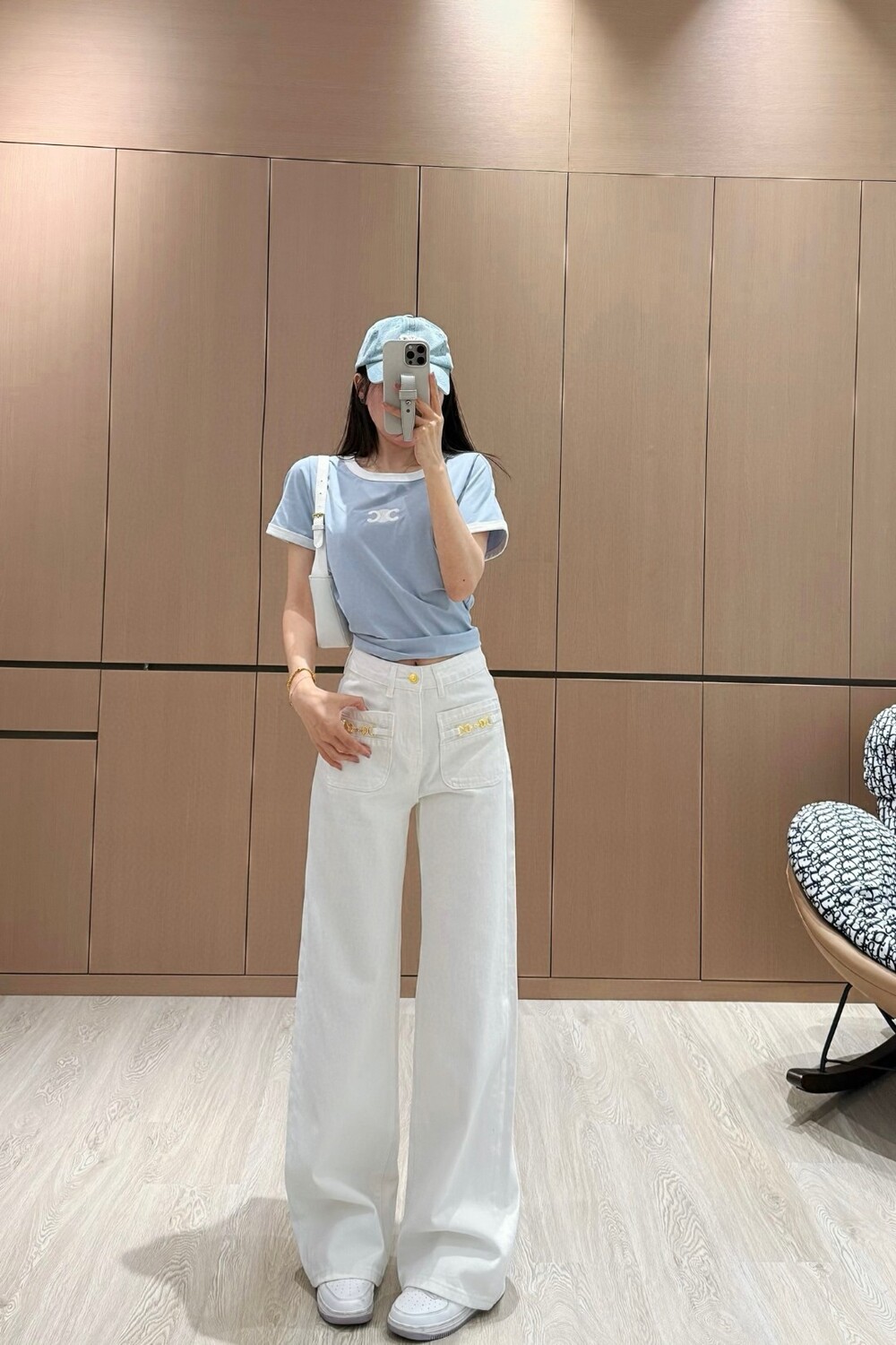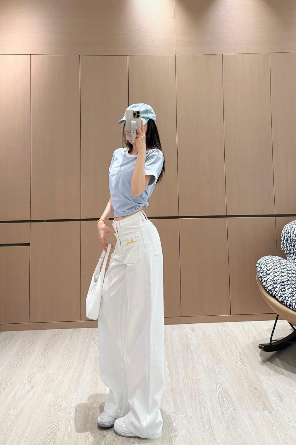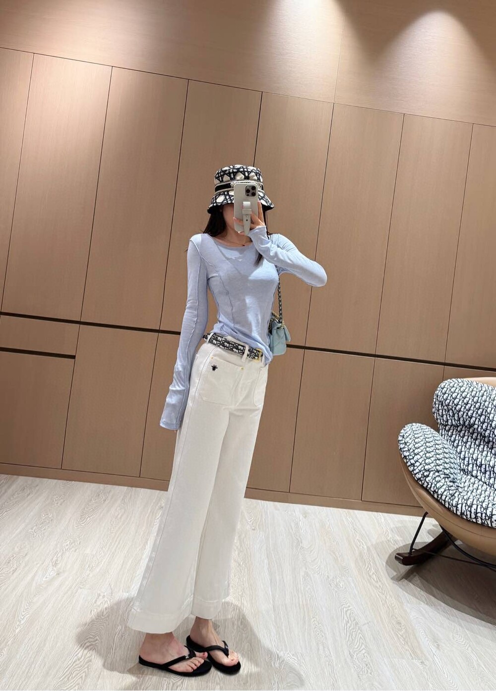 E. 로에 벨트 + 와이드 팬츠 (화이트/베이지)