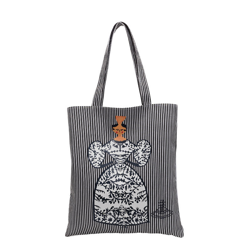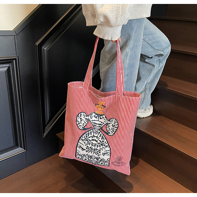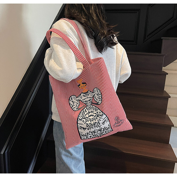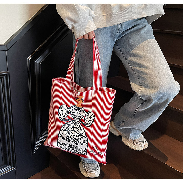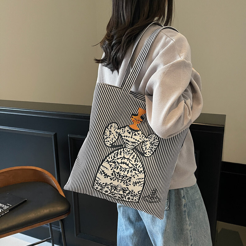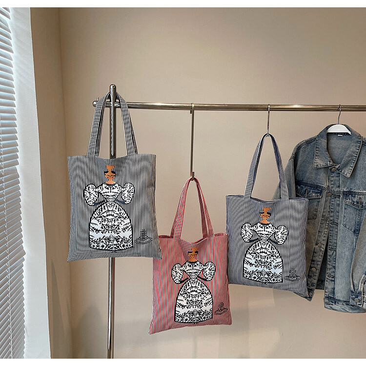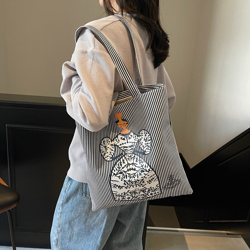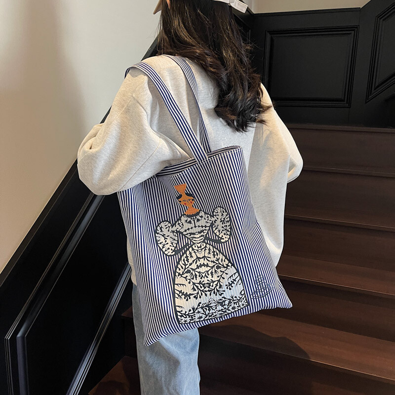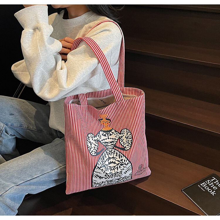 러블리한 일러스트가 돋보이는 스트라이프 캔버스 토트백이에요.