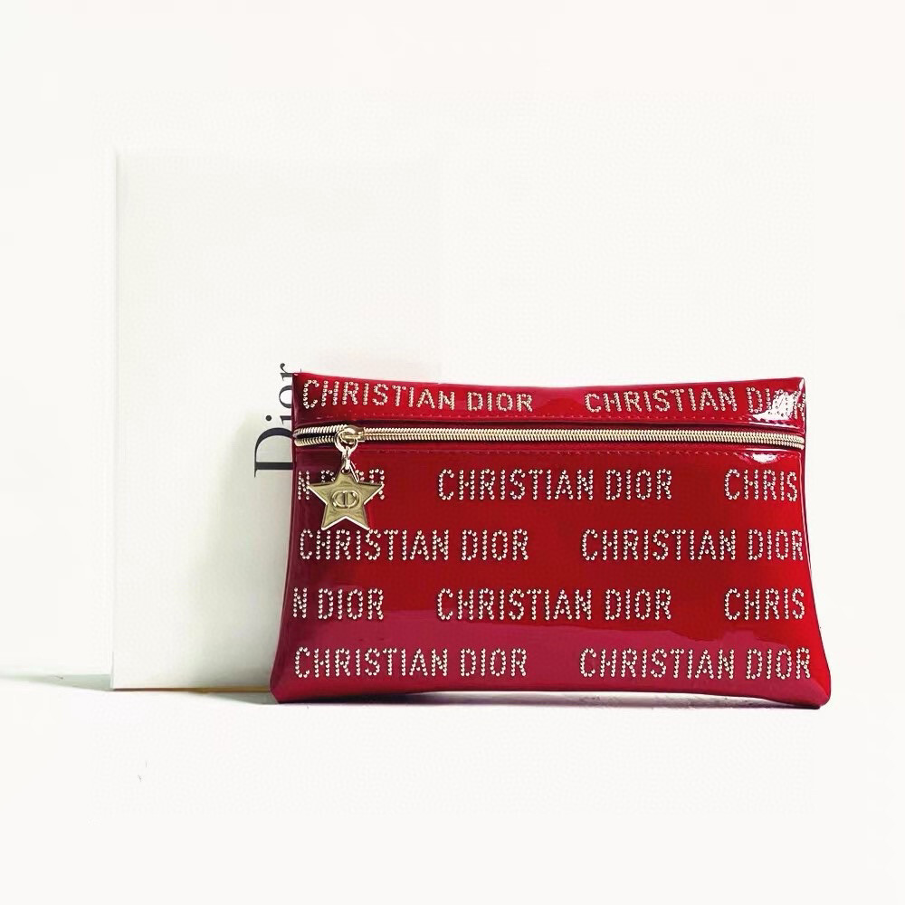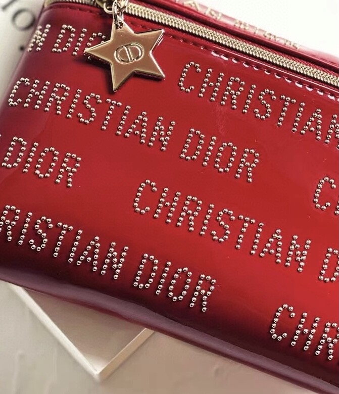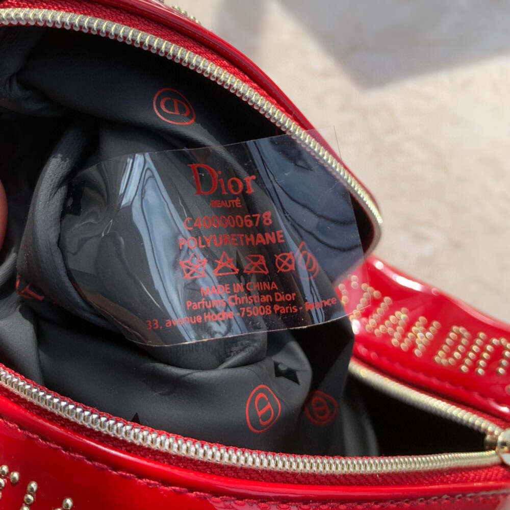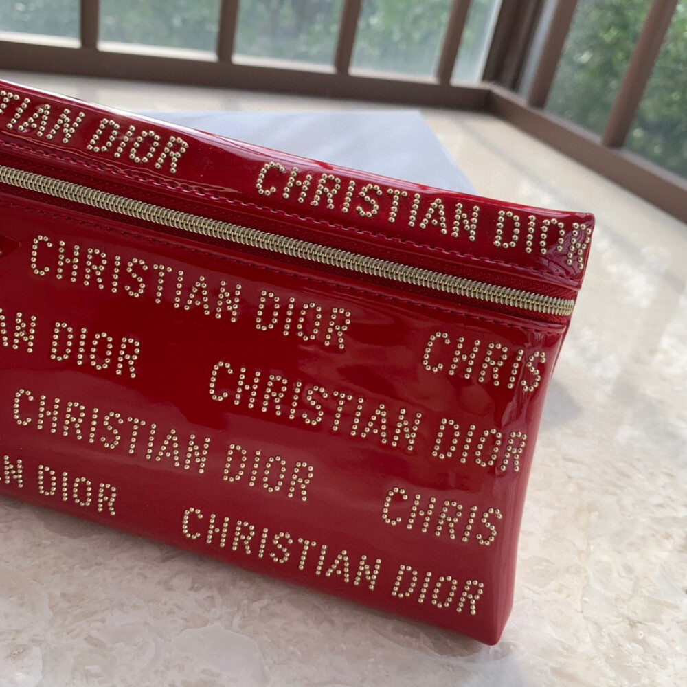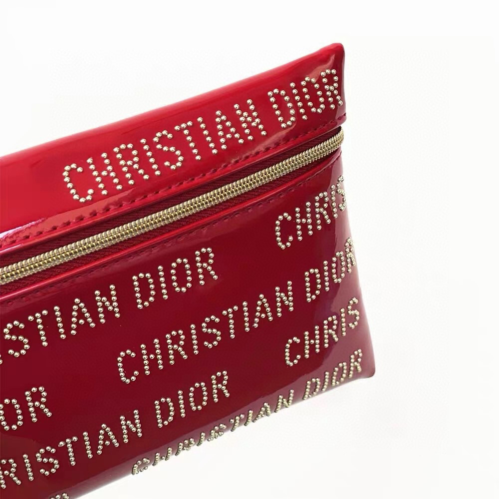 Dior beauty skin care counter gift red rivet element decorative patent leather cosmetic bag