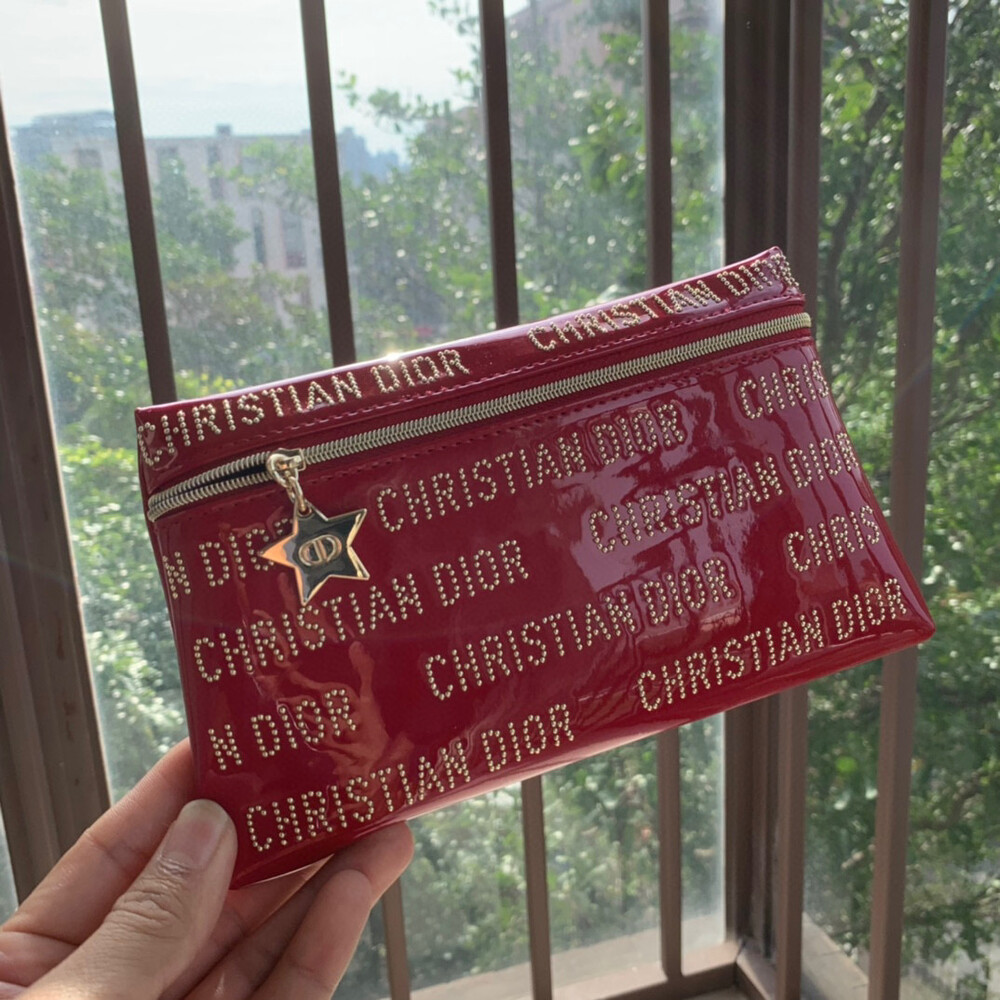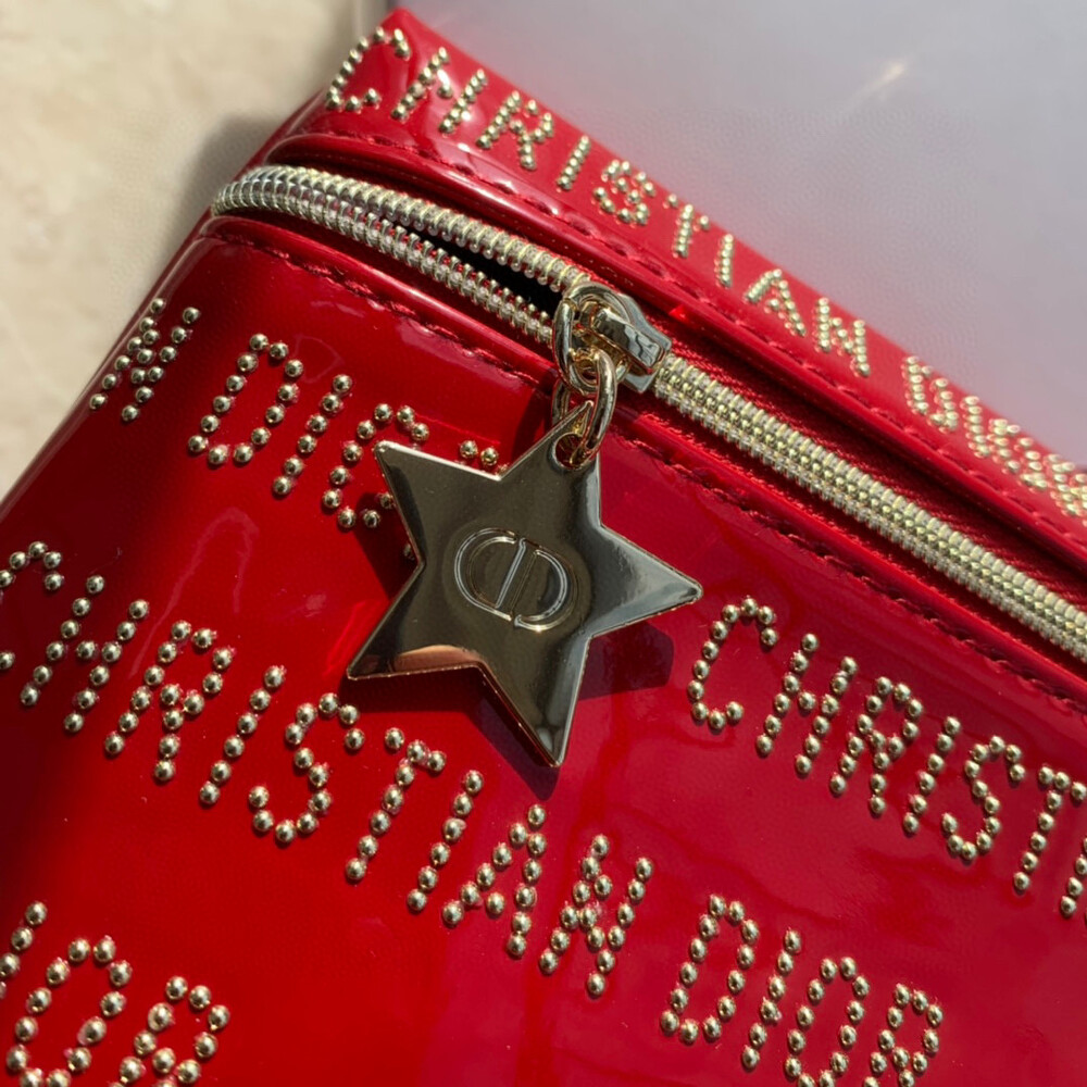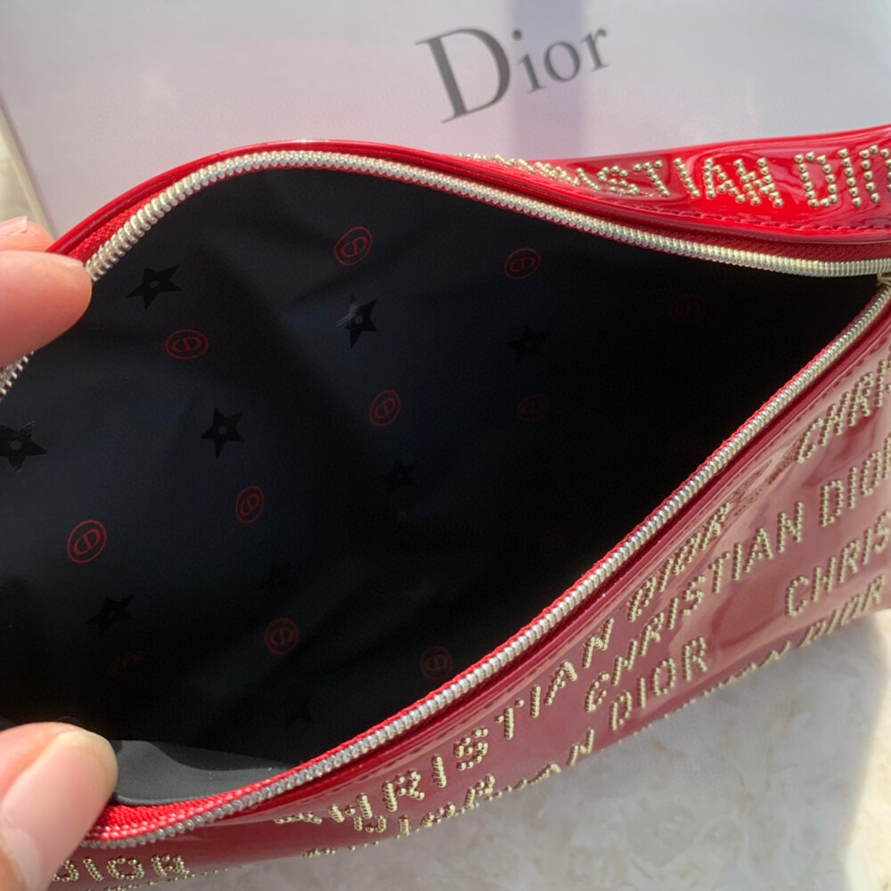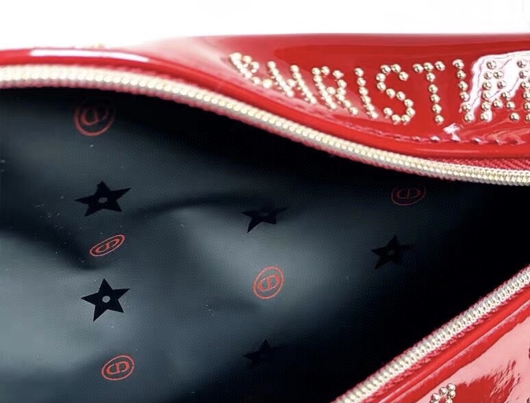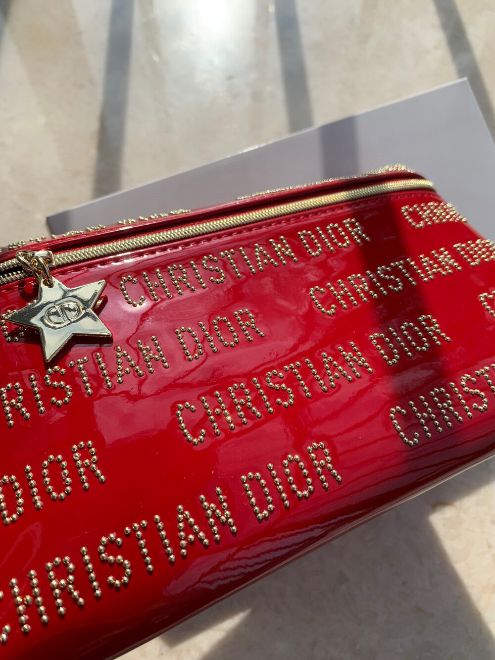 Dior beauty skin care counter gift red rivet element decorative patent leather cosmetic bag