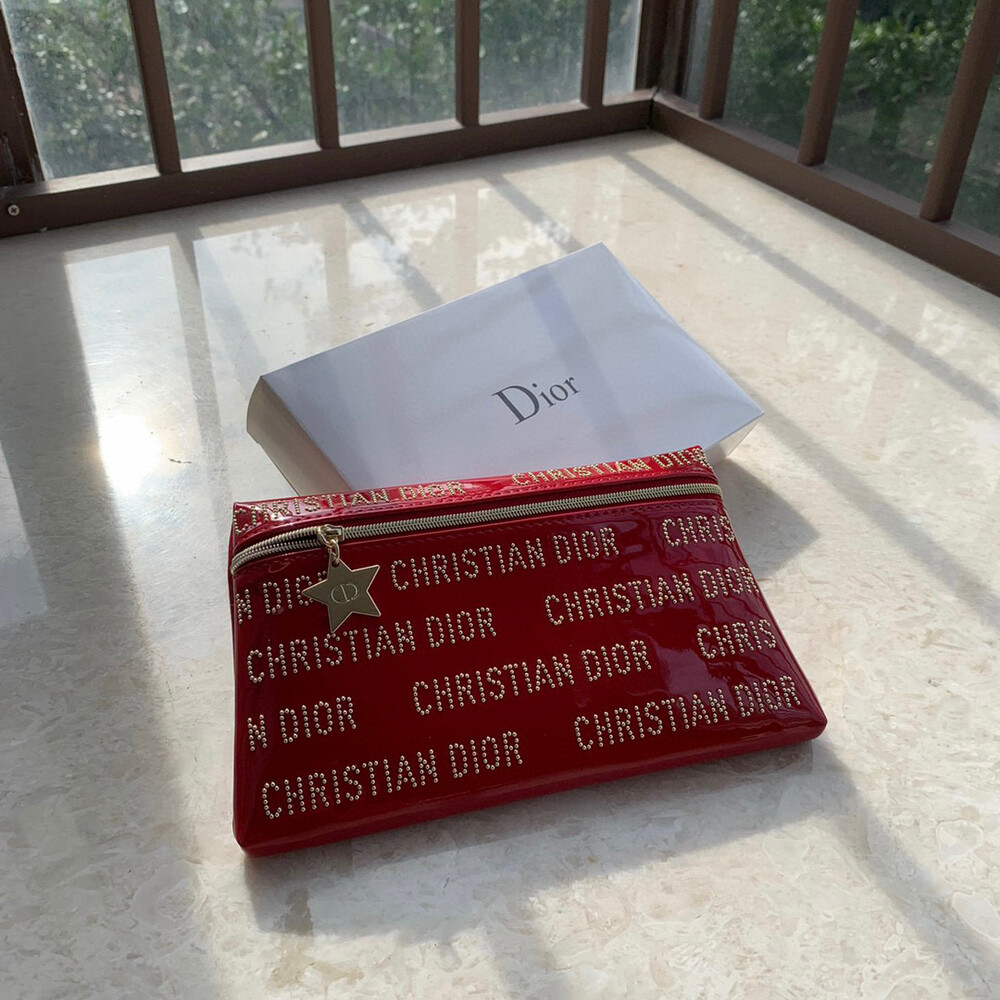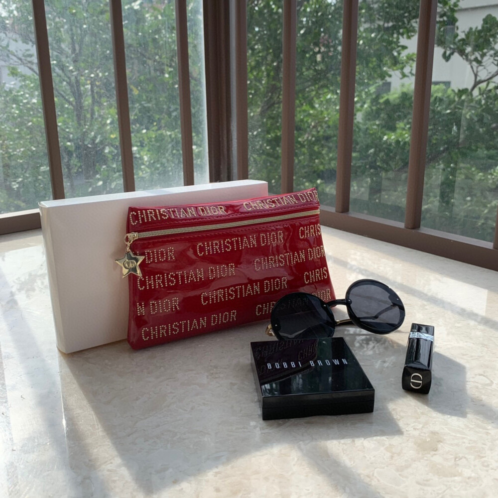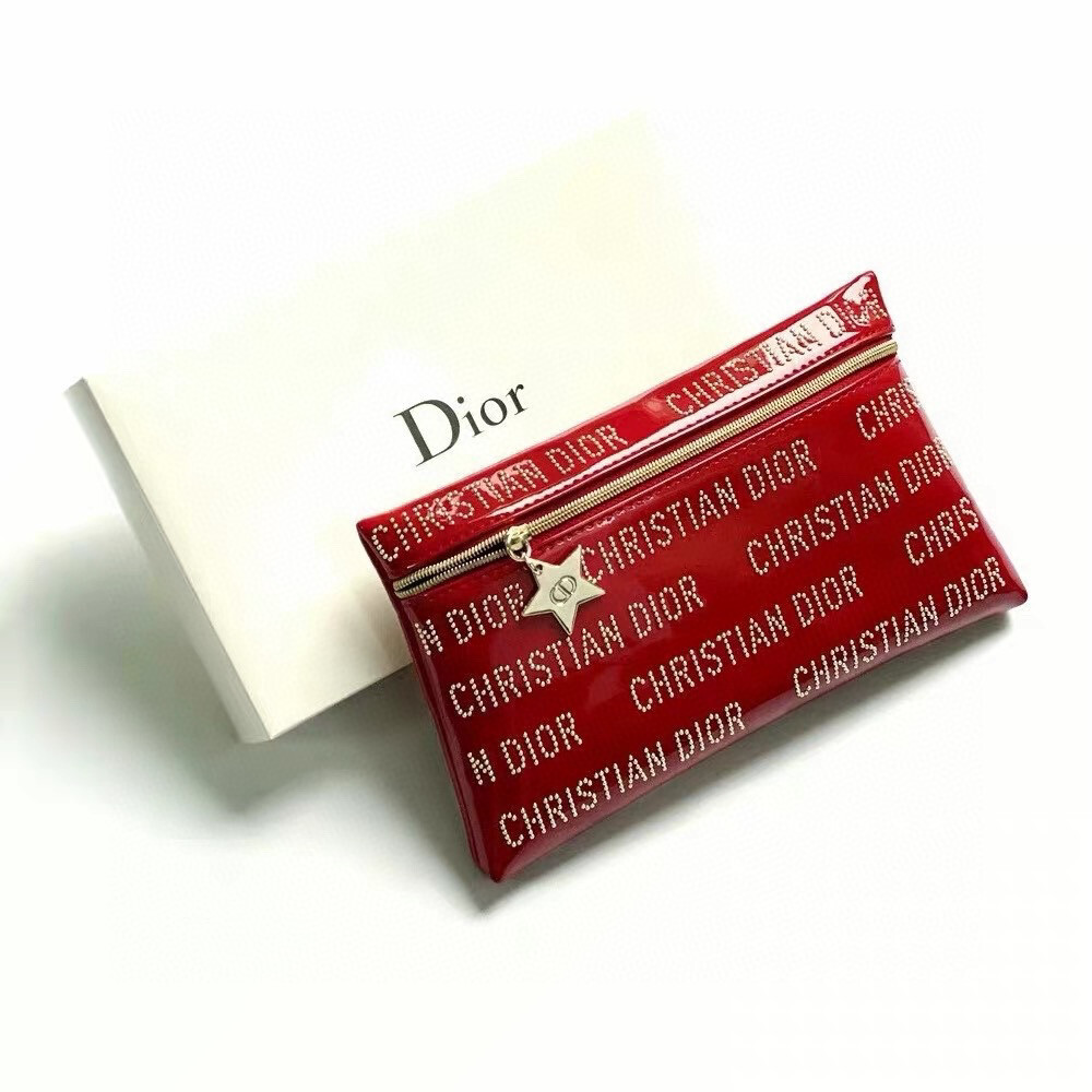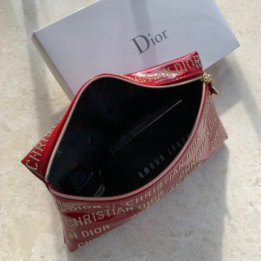 Dior beauty skin care counter gift red rivet element decorative patent leather cosmetic bag