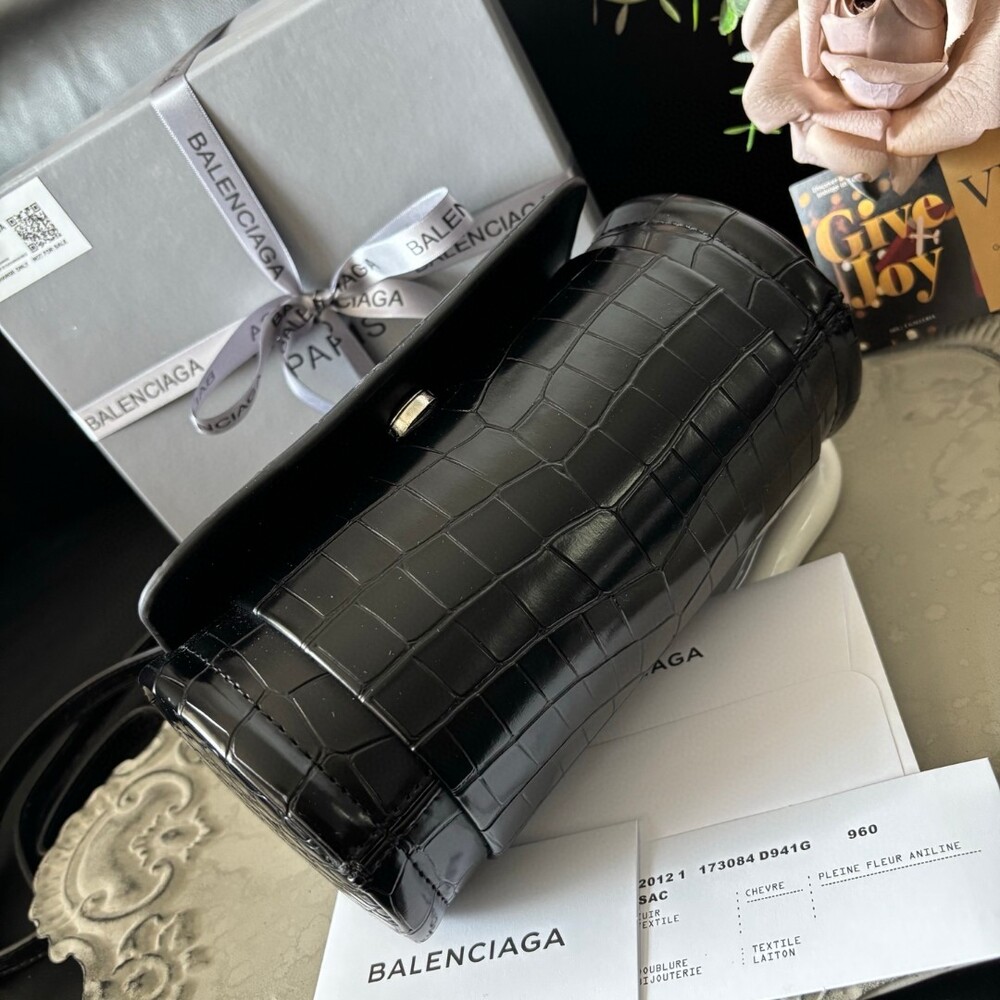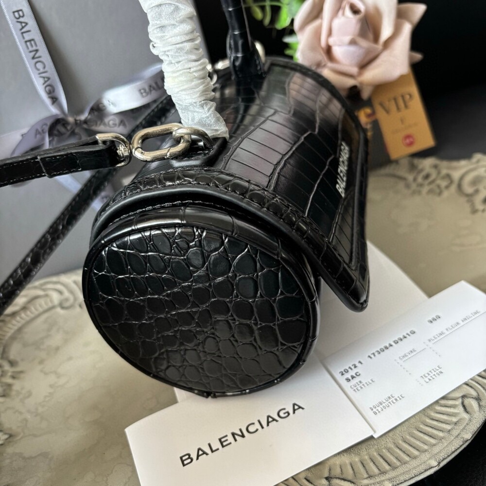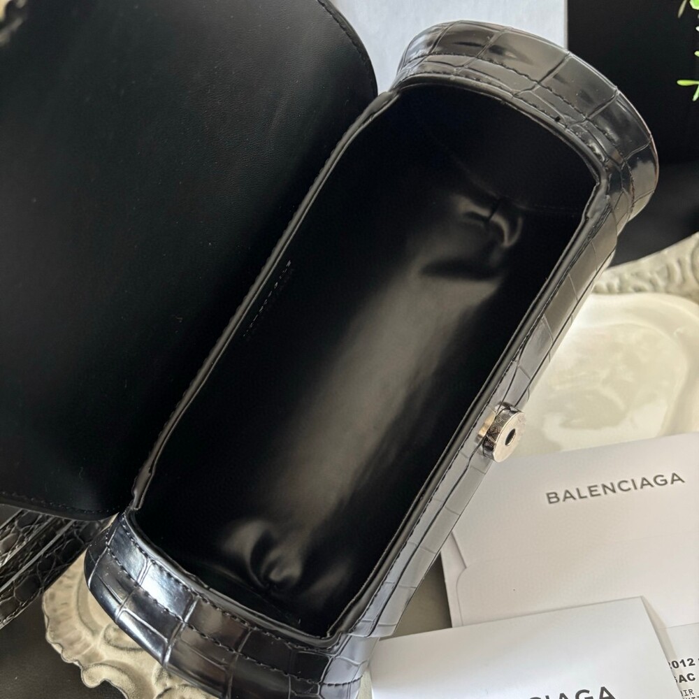Comes with full packaging and an exclusive Introducing the bold and iconic Balenciaga Hourglass Bag, featuring a signature curved silhouette with a rounded arch at the base to prevent wear and scratches.Its sleek half-moon shape and metallic ‘B’ charm hanging on the smooth surface make it both unique and eye-catching.Made of premium leather, this bag is elegant, stylish, and guaranteed to turn heads.The spacious interior, practical size, and adjustable strap make it a versatile, must-have piece for any outfit.