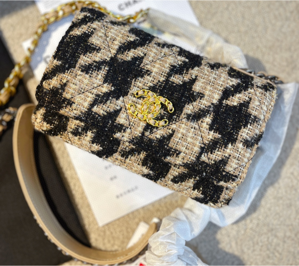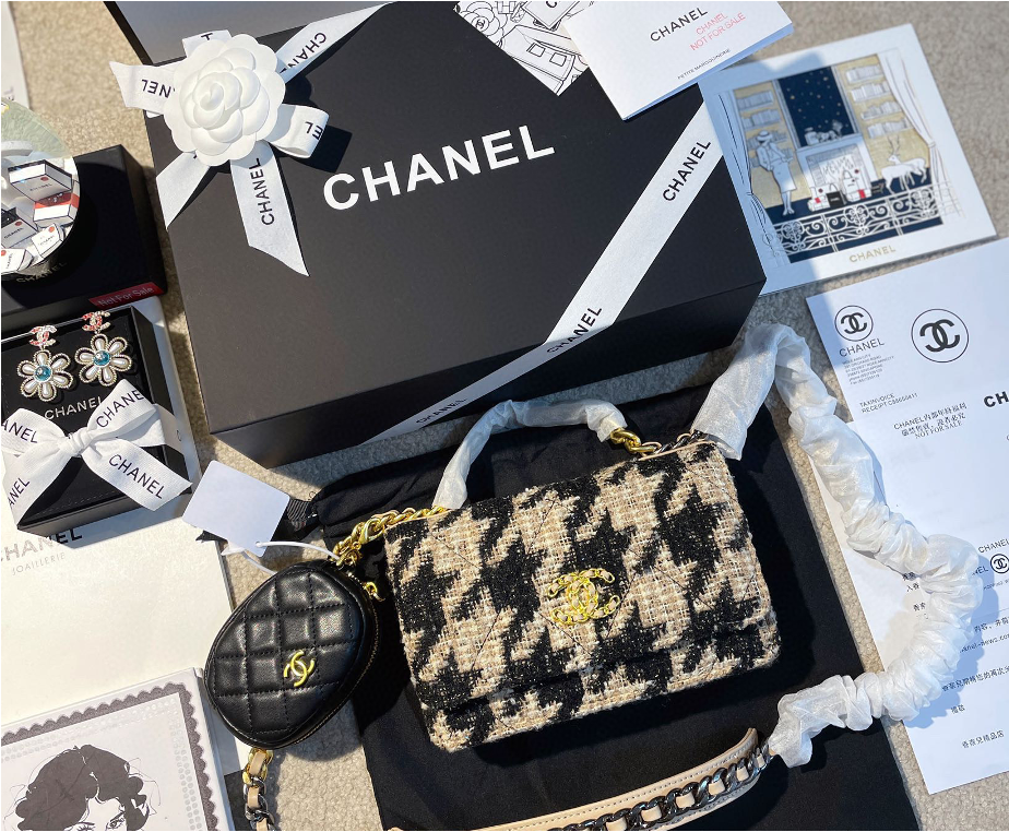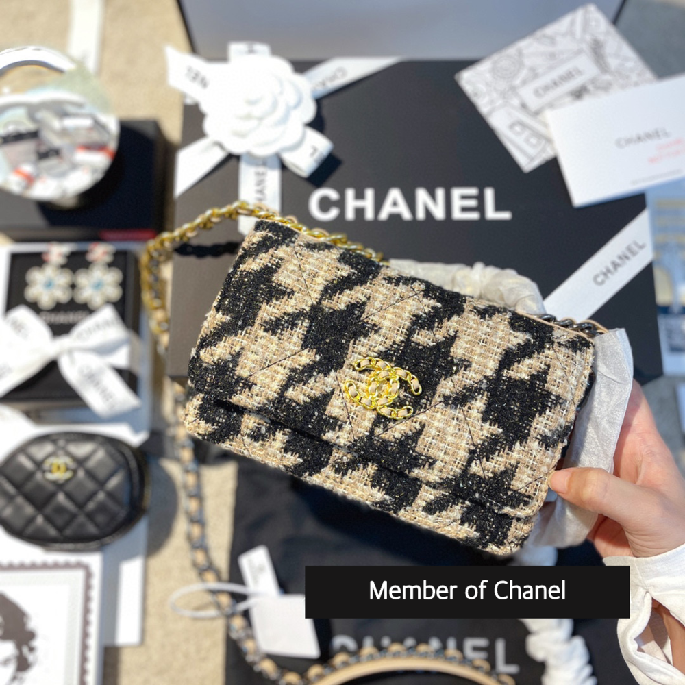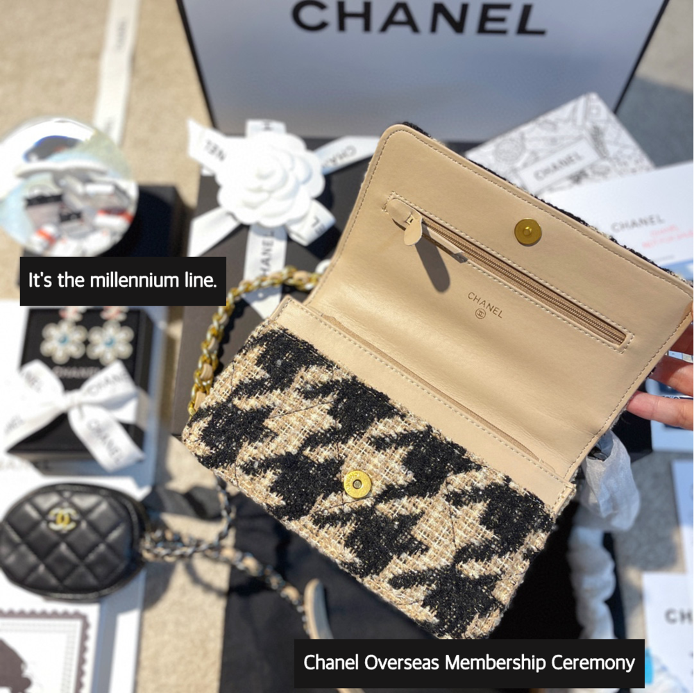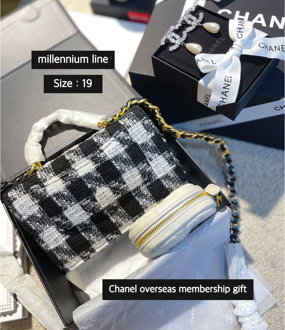 Its shape is derived from the hunting magazine used by Coco when he was young With square metal LOGO Increase the sense of vintageLozenge pattern trace, size 19 . A full set of camellia gift box packaging