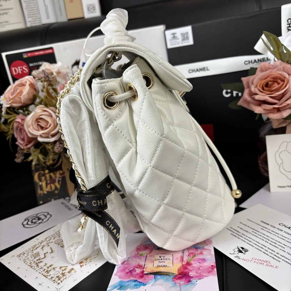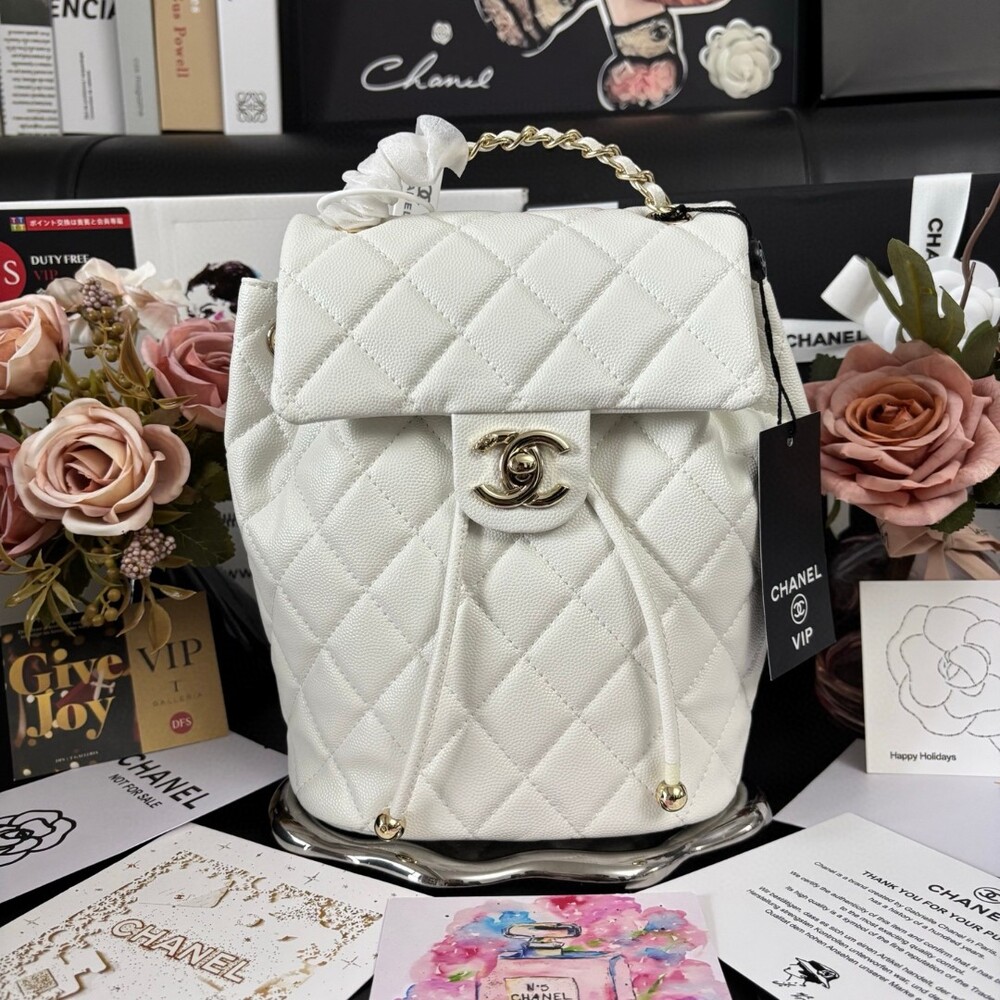 quilt pattern and gold-tone CC turn-lock closure for a timeless finish.