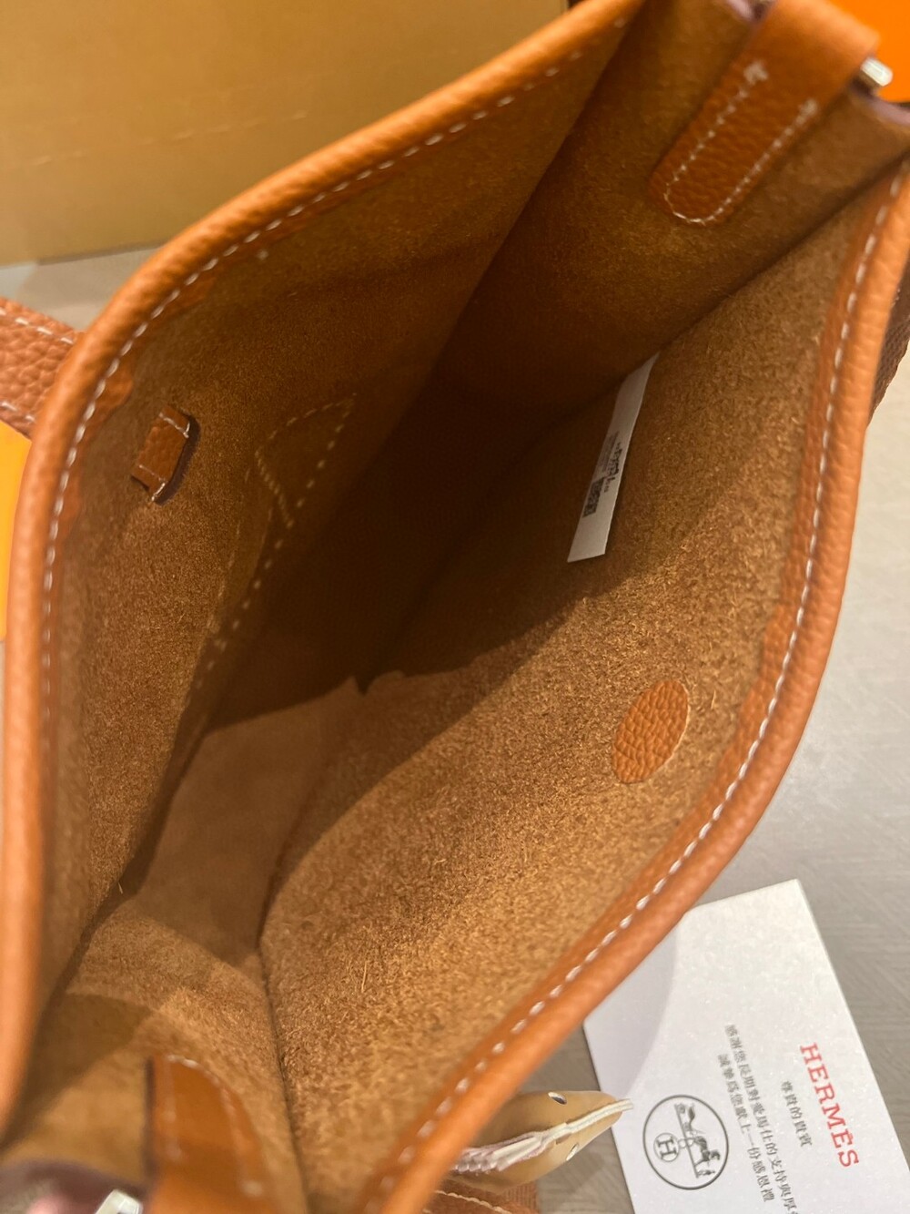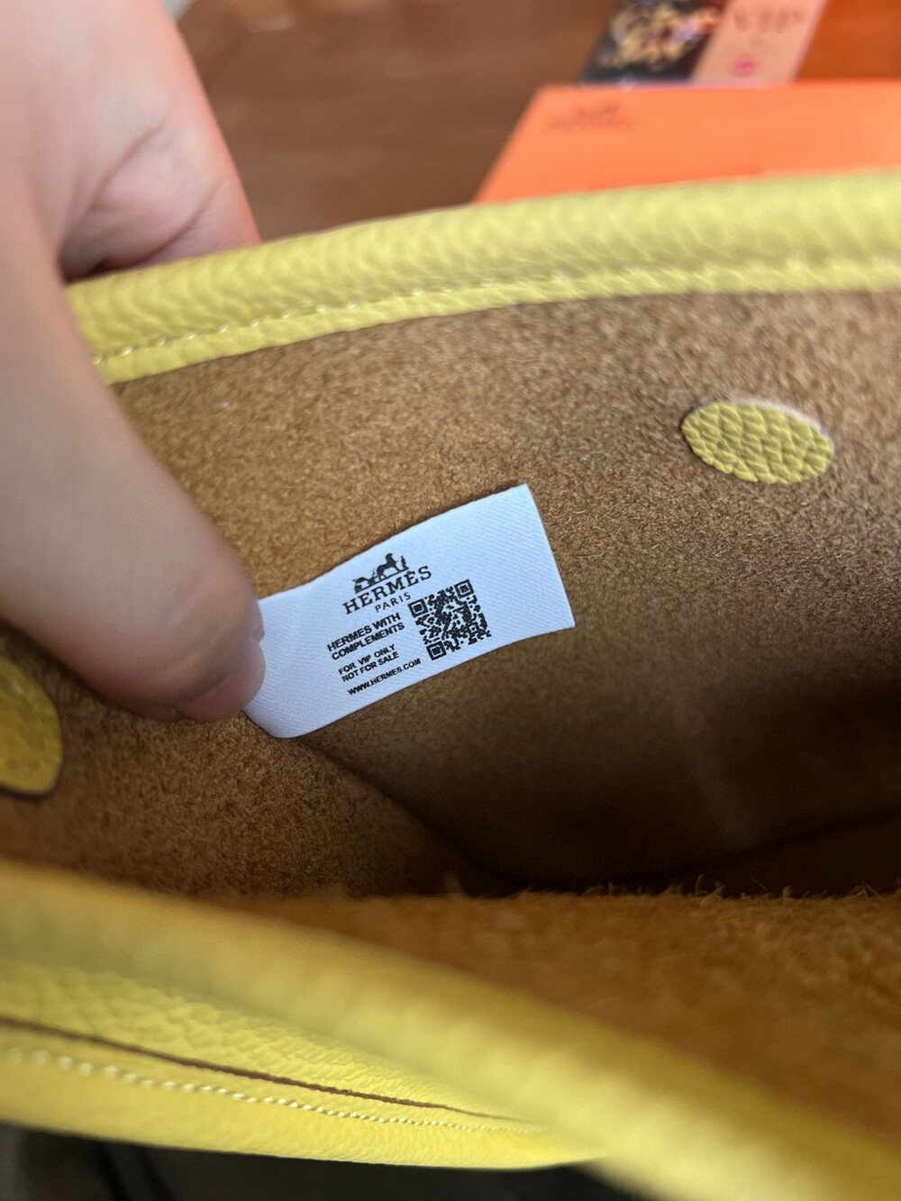Comes with full packaging: box, dust bag, and tags A perfect entry-level Hermès bag with iconic details Signature perforated “H” logo on the front, minimalist yet striking Made from imported calfskin leather Includes bonus items: a random mini Pegasus charm and a silk twilly scarf