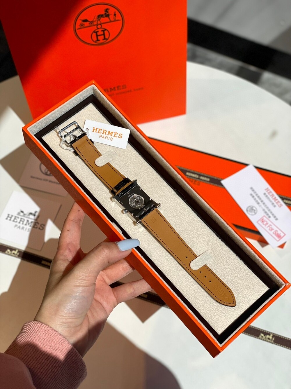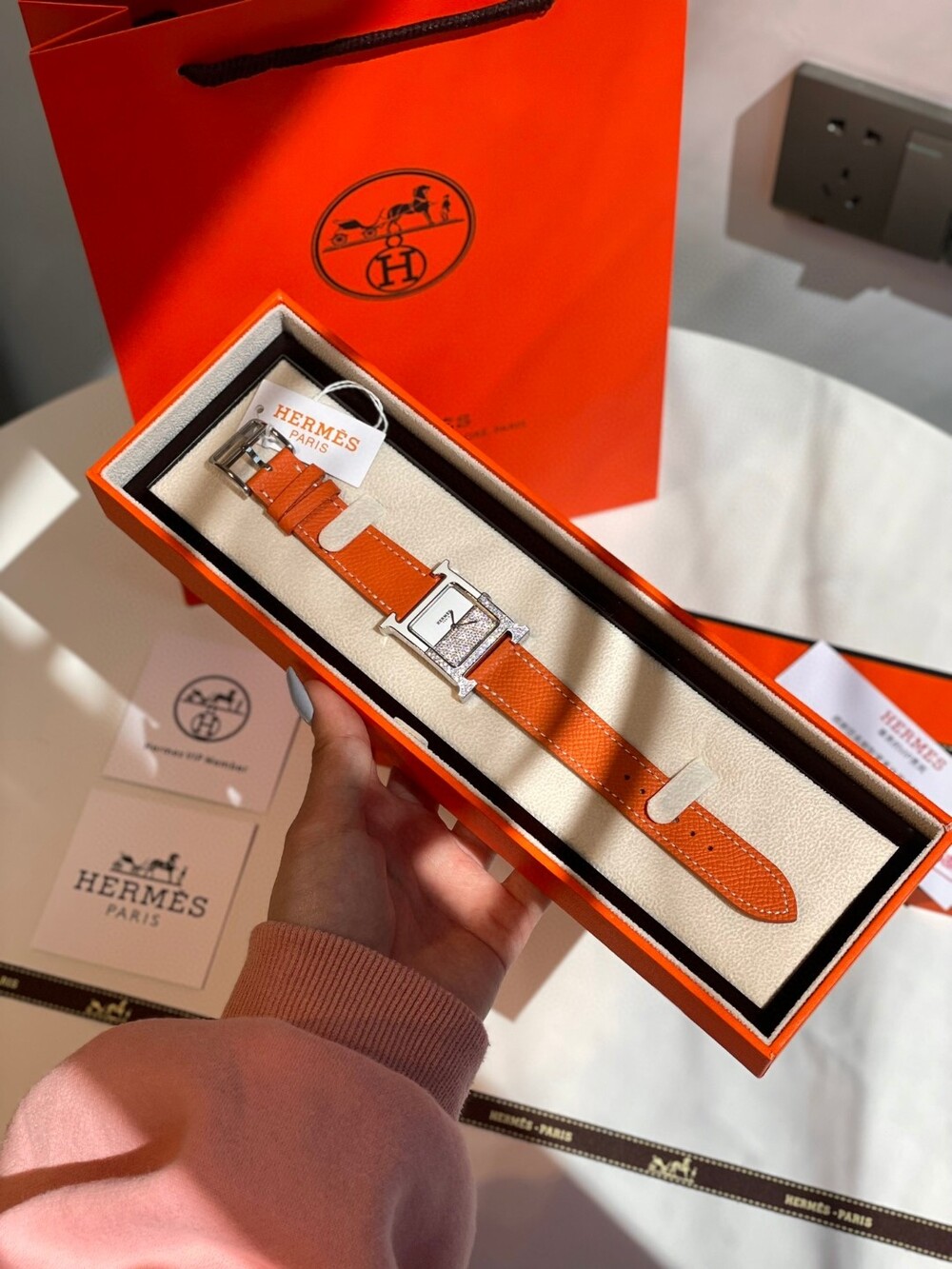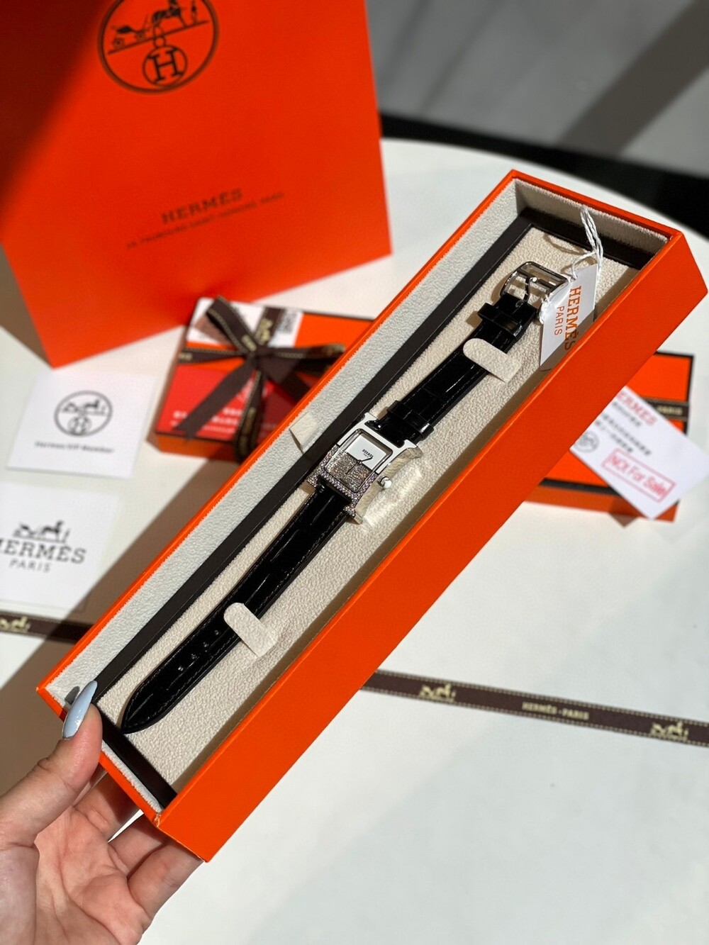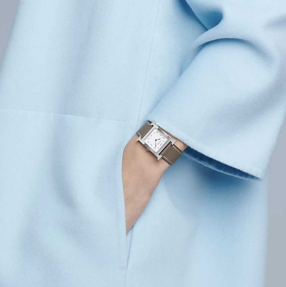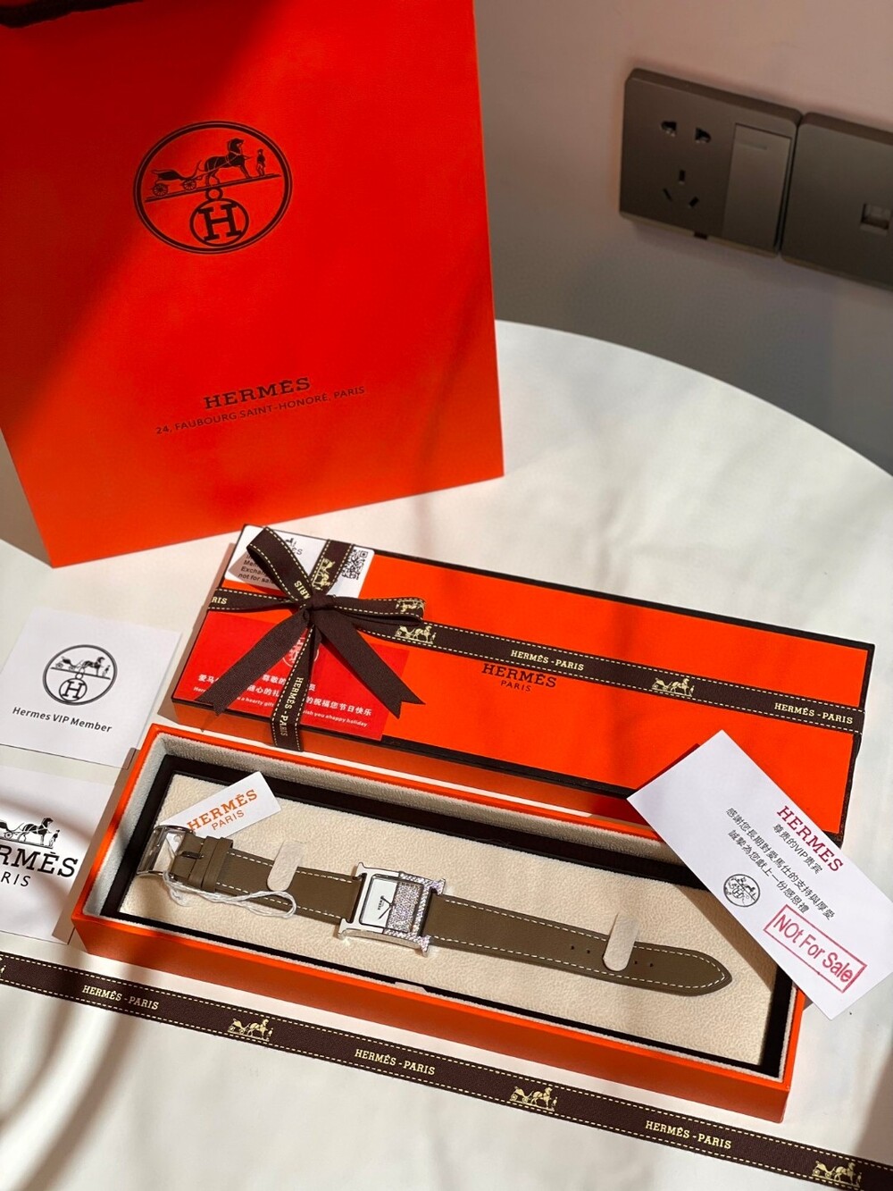 [Hermes VIP Fashion Week]HERMES Half Drill H WatchSize: 26mm (elephant ash)Sapphire Mirror ➕ Swarovski Diamond ➕ Swiss Imported MovementWhite natural shellfish dial, pure hand-polished inlaid diamond, sewing strap, bottom shell is also hand-carved badge relief