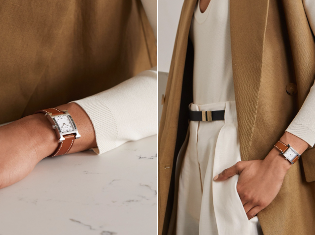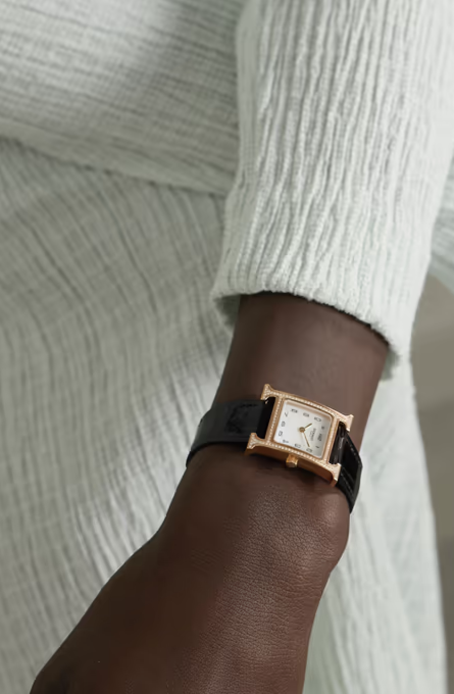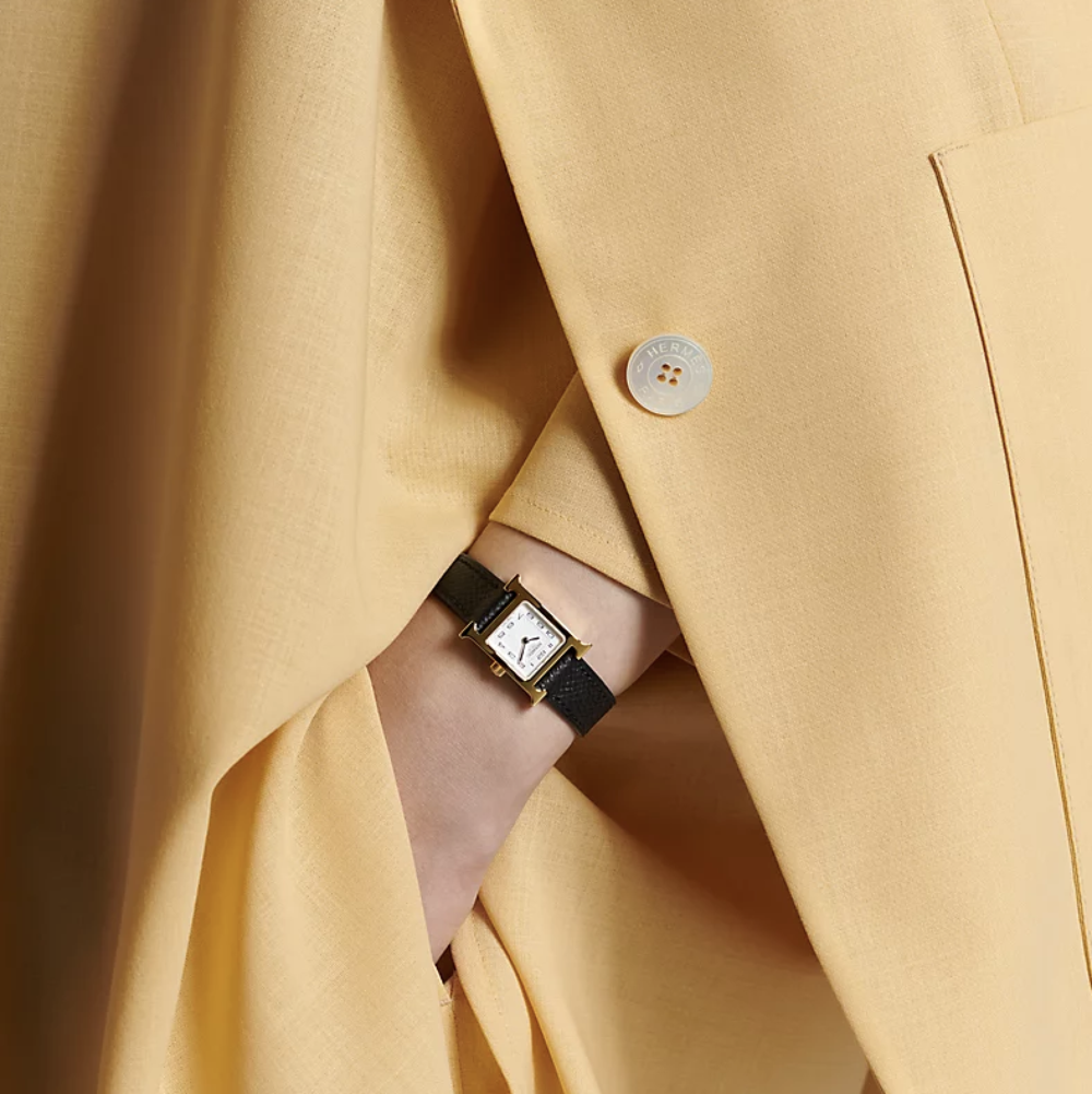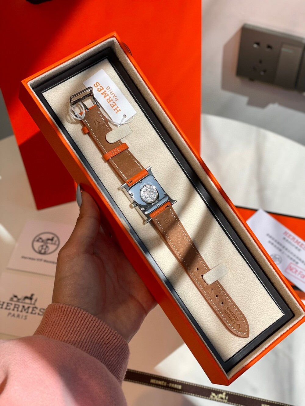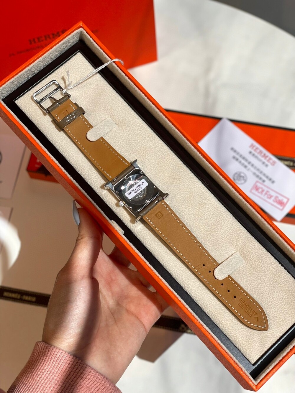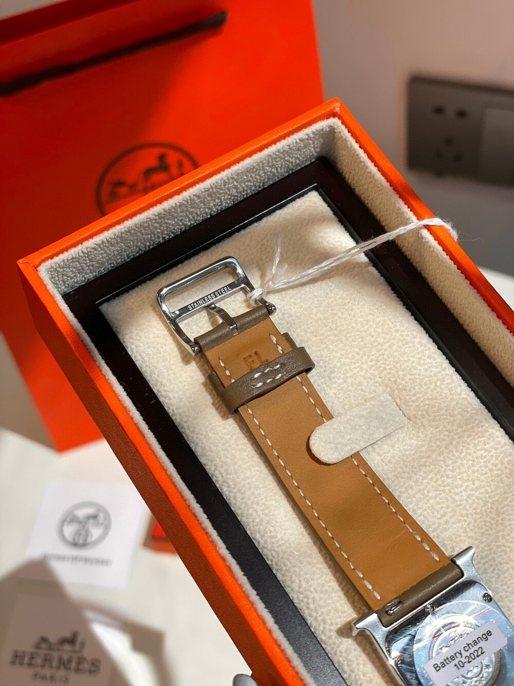 [Hermes VIP Fashion Week]HERMES Half Drill H WatchSize: 26mm (elephant ash)Sapphire Mirror ➕ Swarovski Diamond ➕ Swiss Imported MovementWhite natural shellfish dial, pure hand-polished inlaid diamond, sewing strap, bottom shell is also hand-carved badge relief