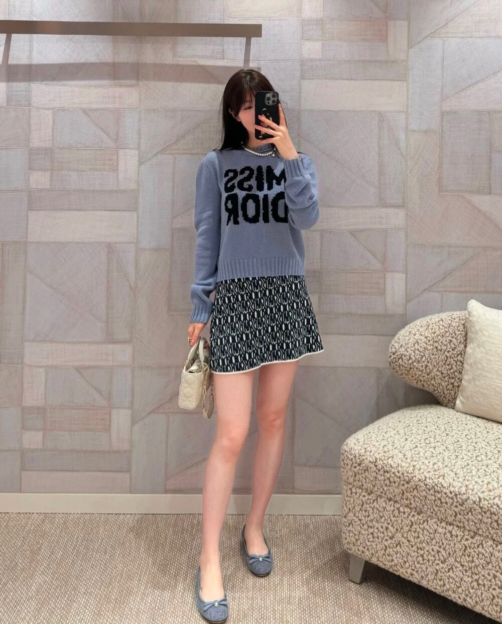 F. 뮤뮤 블루 포인트 셋업 스커트