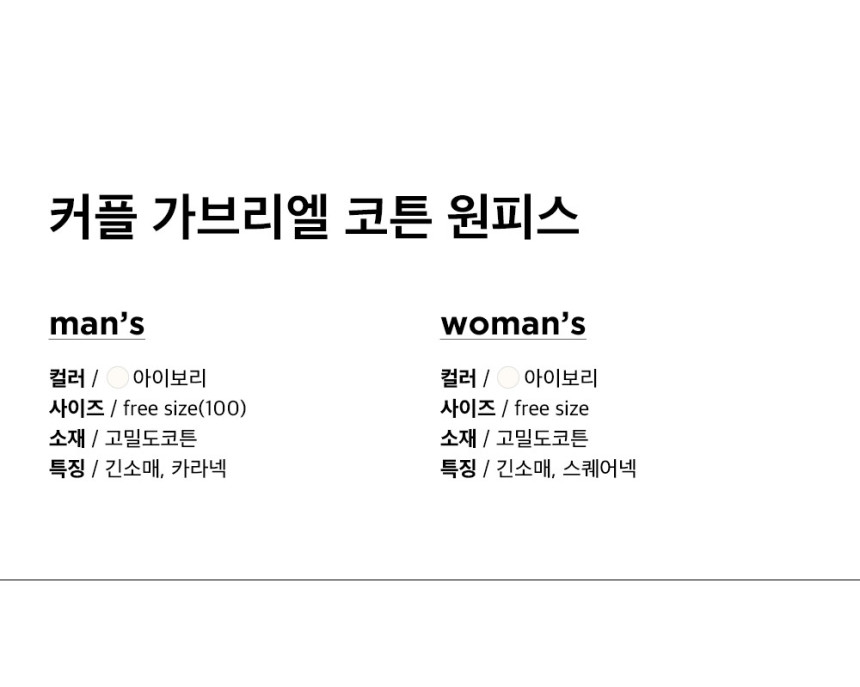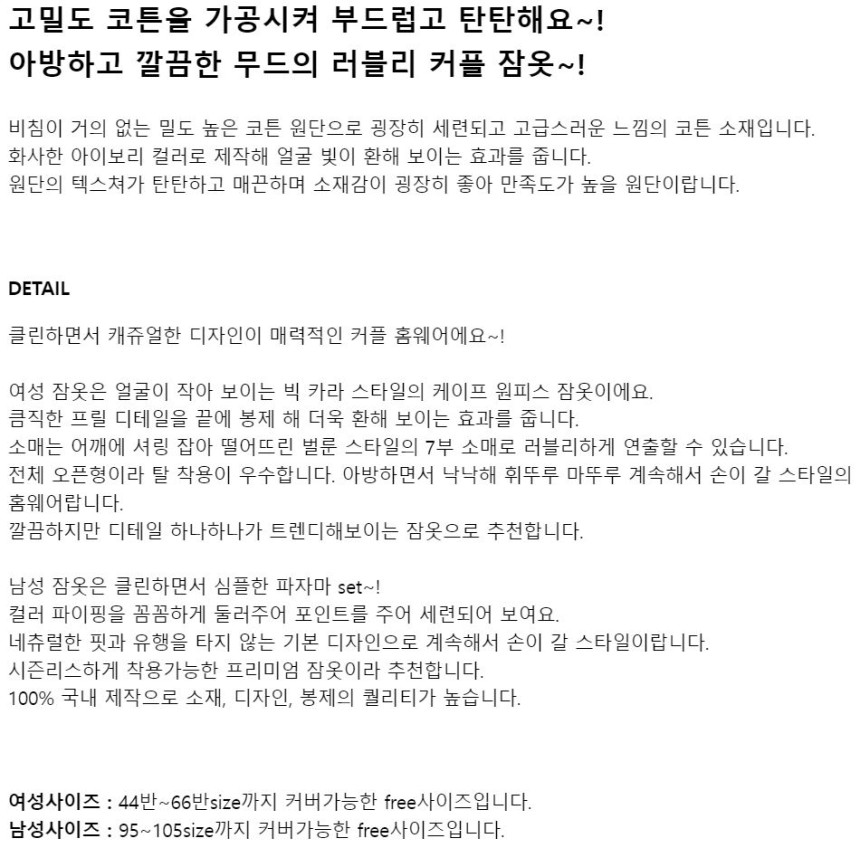 여성 남성 커플 다이애나 가브리엘 원피스 투피스 수면 잠옷