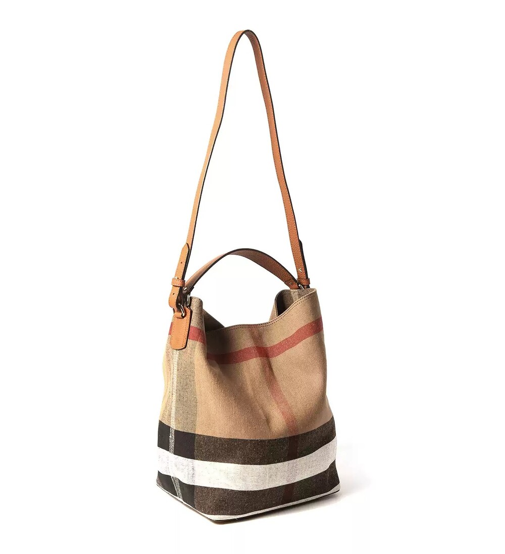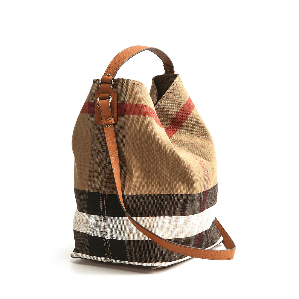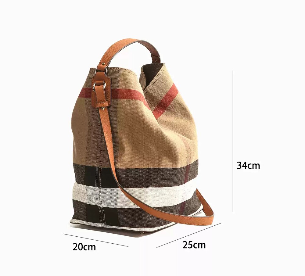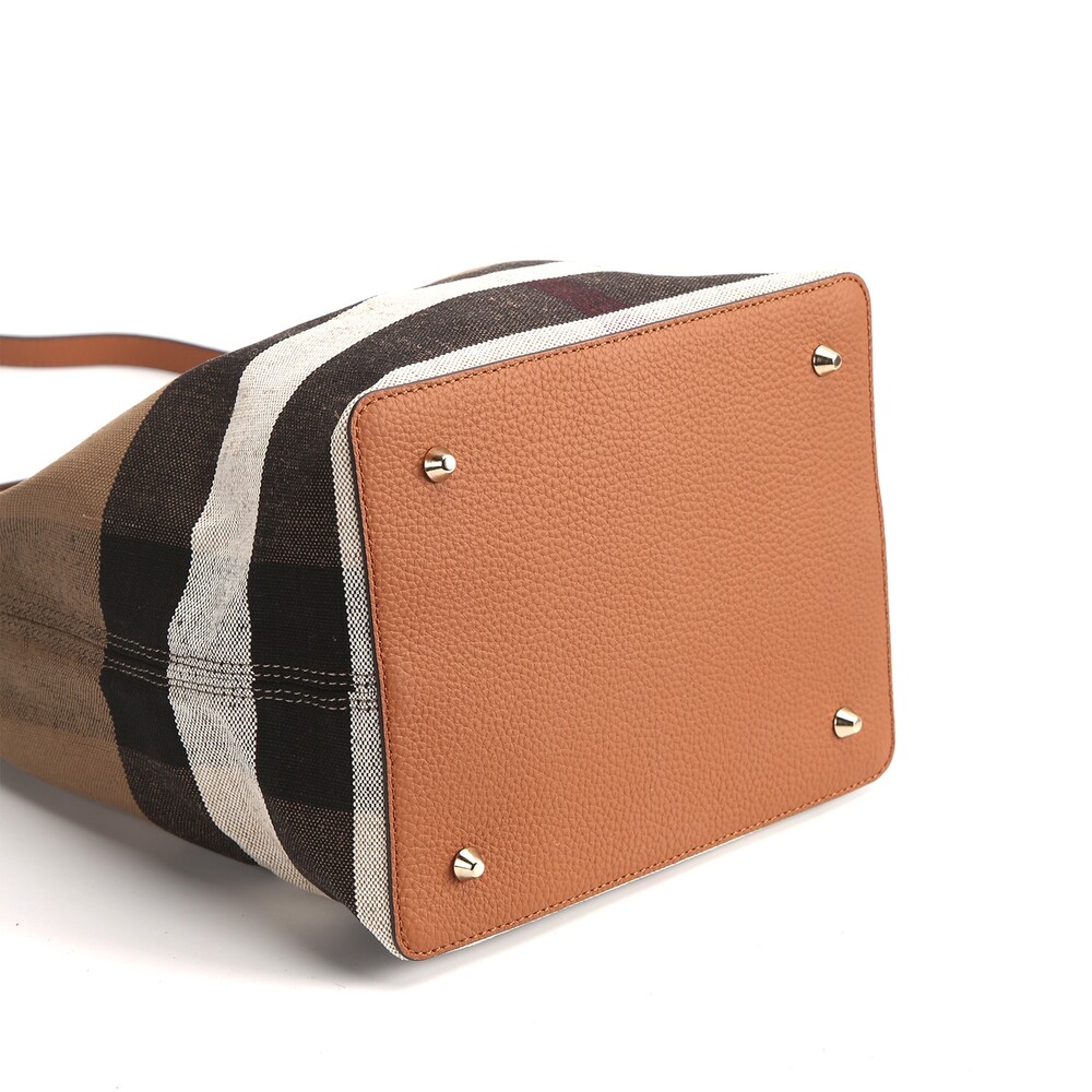 Canvas & Leather Check Bucket Bag