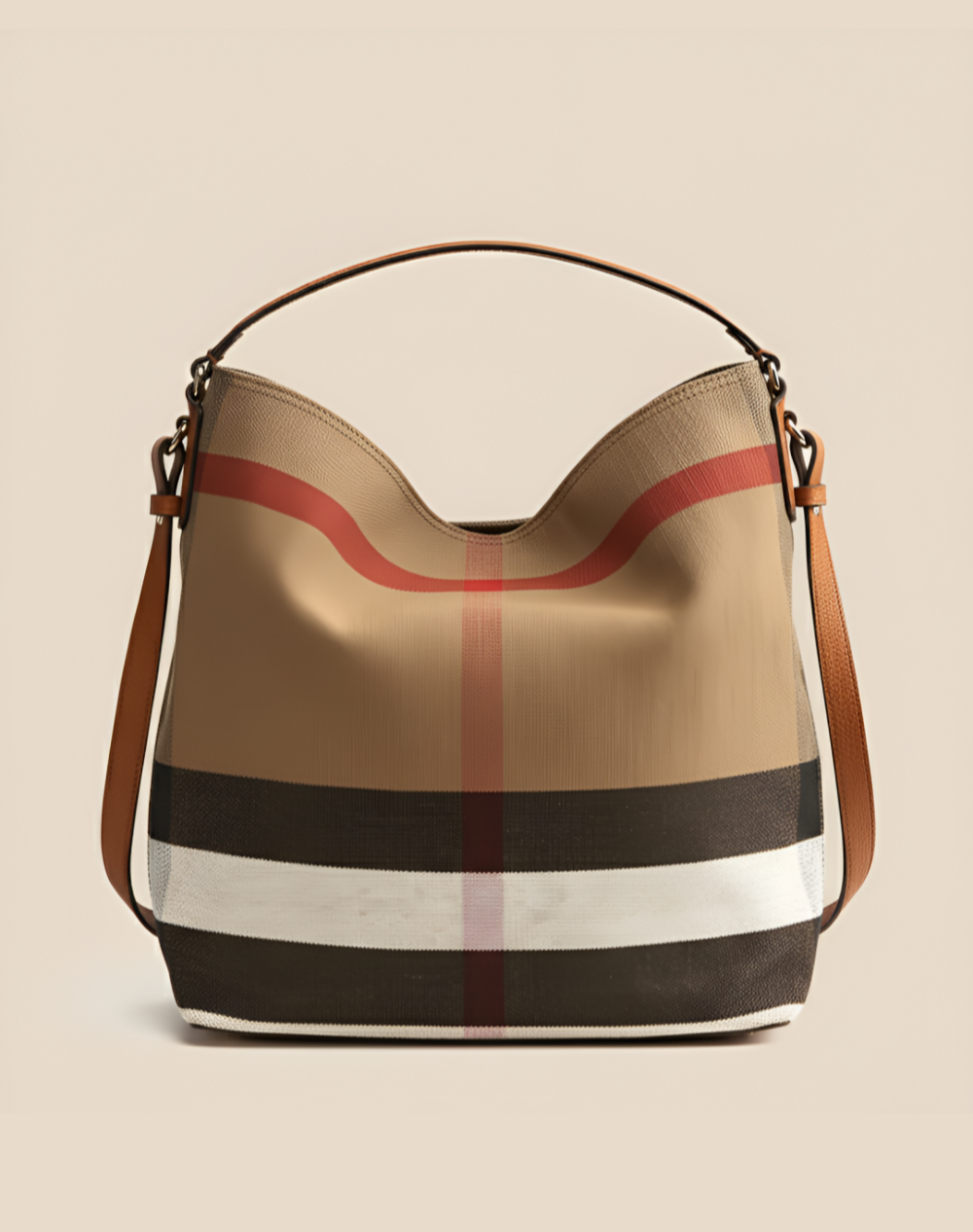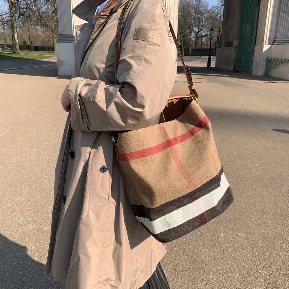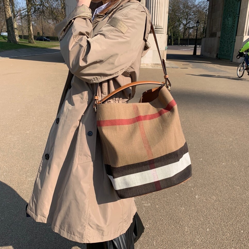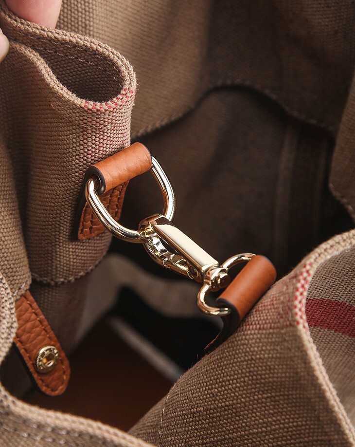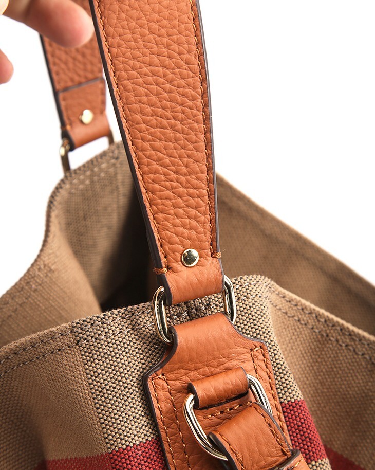 Canvas & Leather Check Bucket Bag