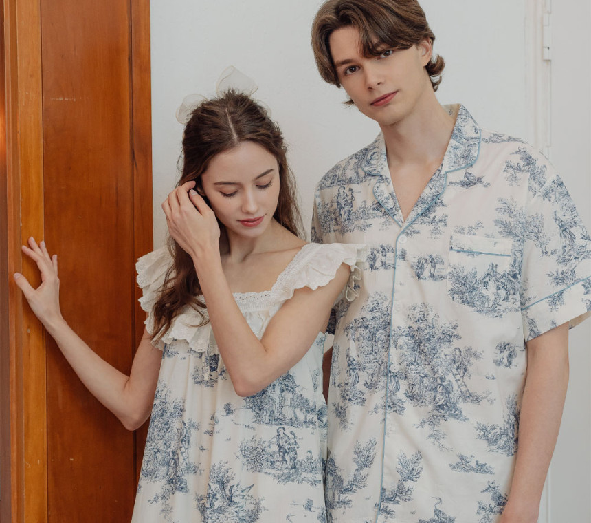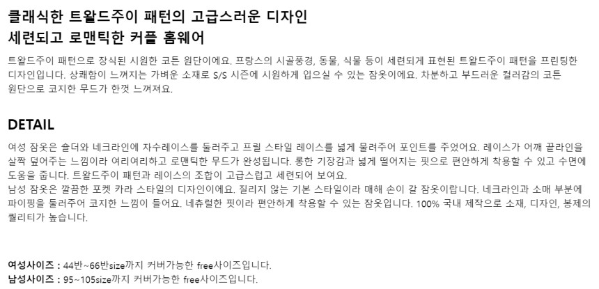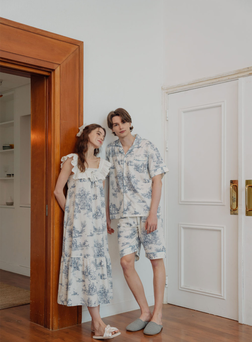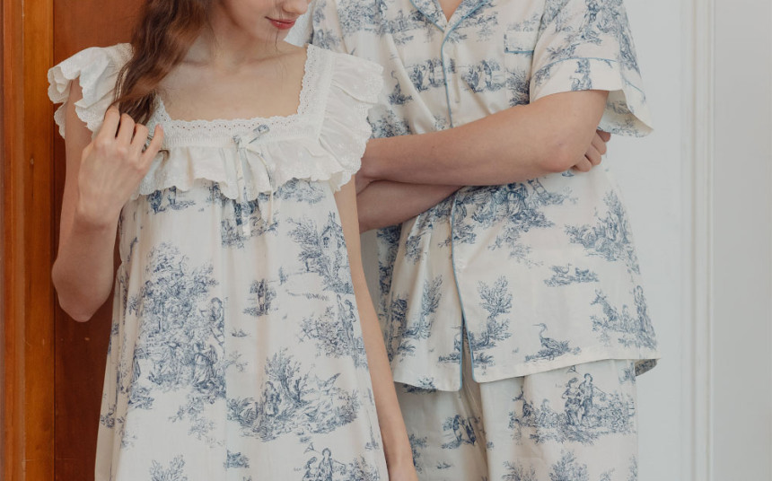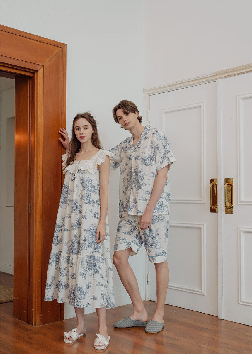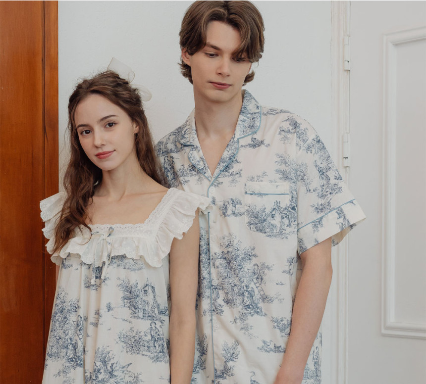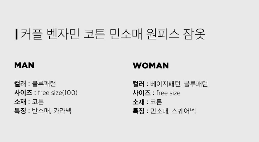 여성 남성 커플 벤자민 원피스 투피스 수면 잠옷