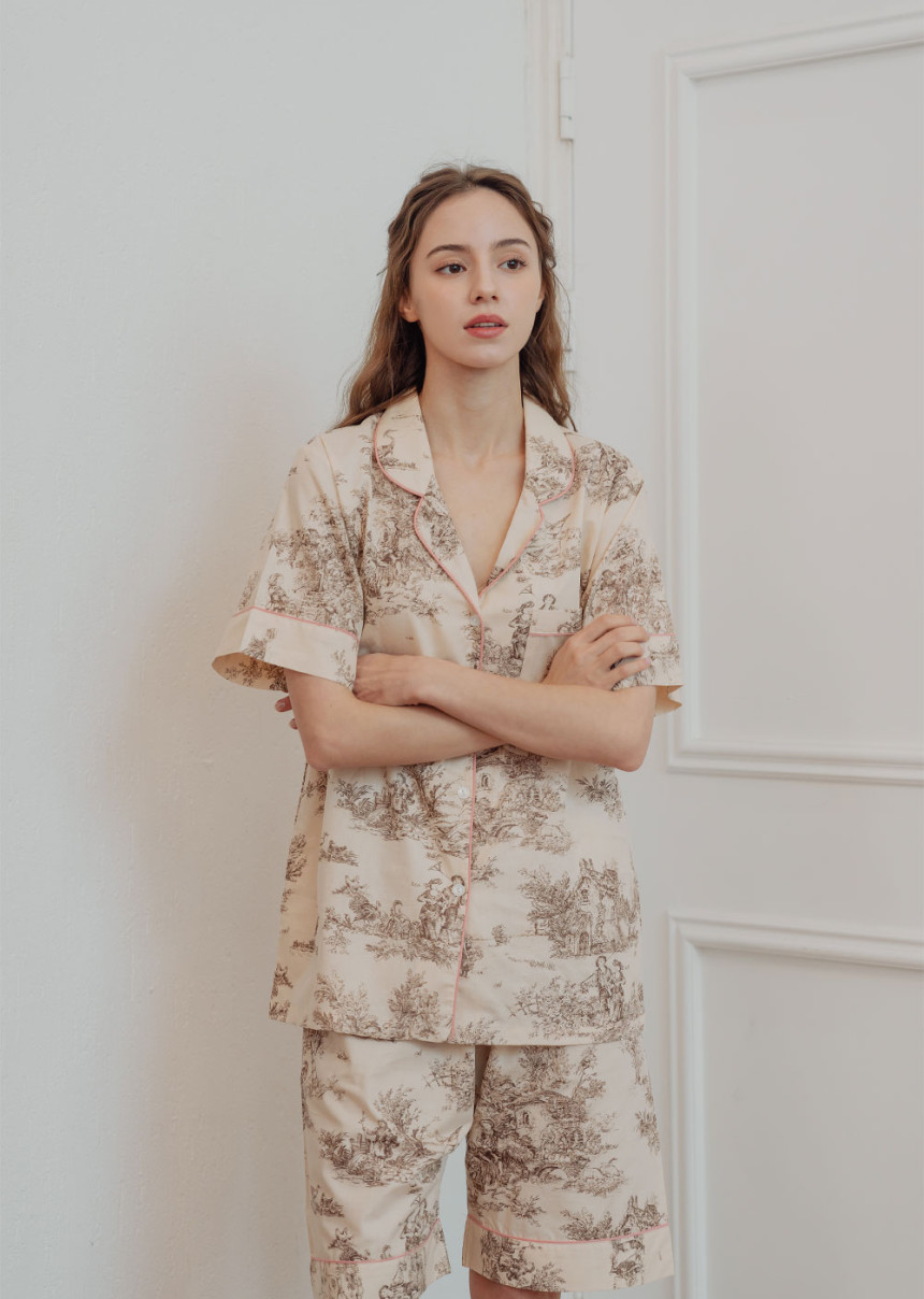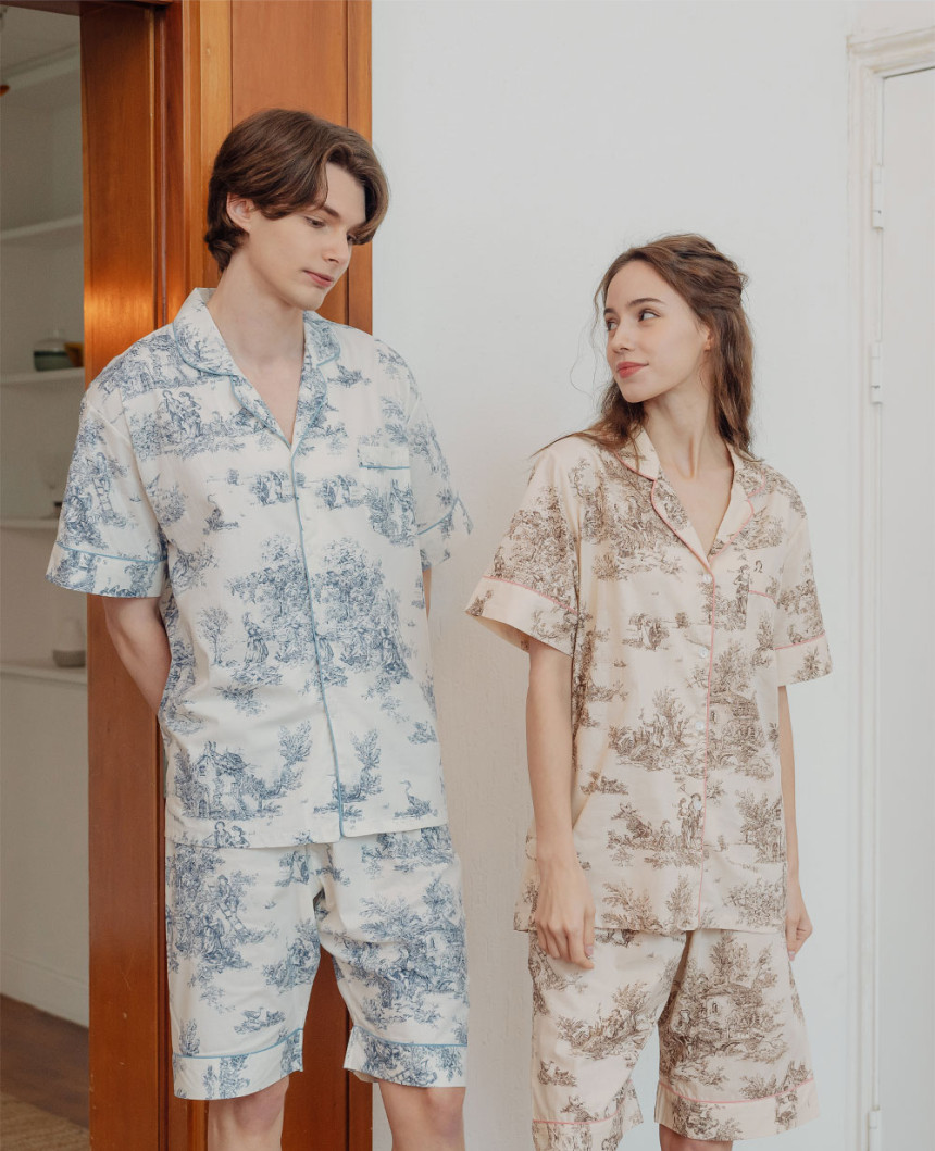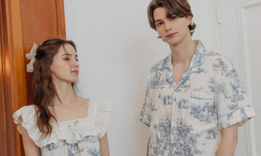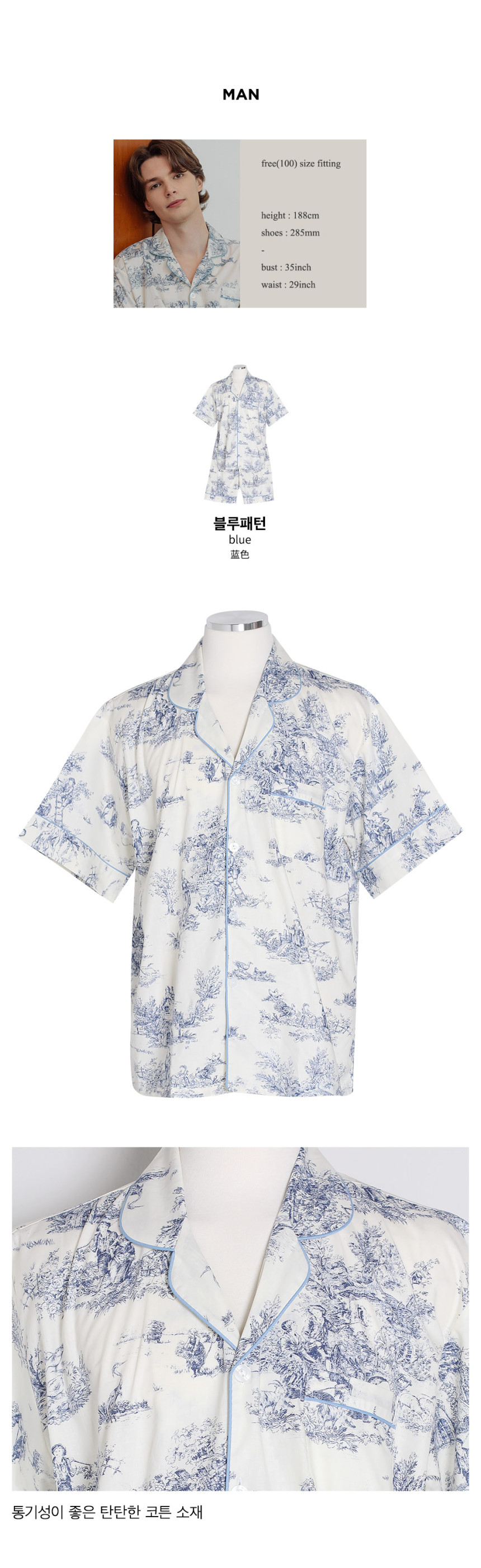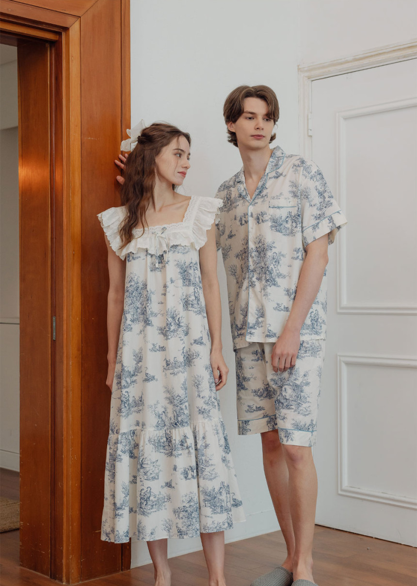 여성 남성 커플 벤자민 원피스 투피스 수면 잠옷