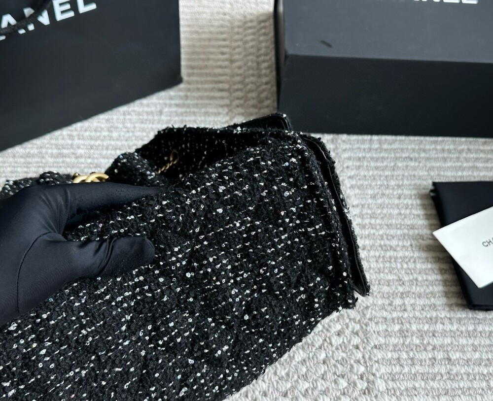 은은하게 반짝이는 블랙 트위드 소재로 제작되어,