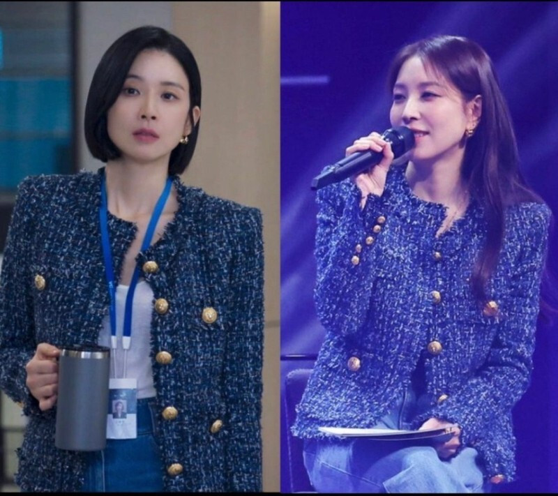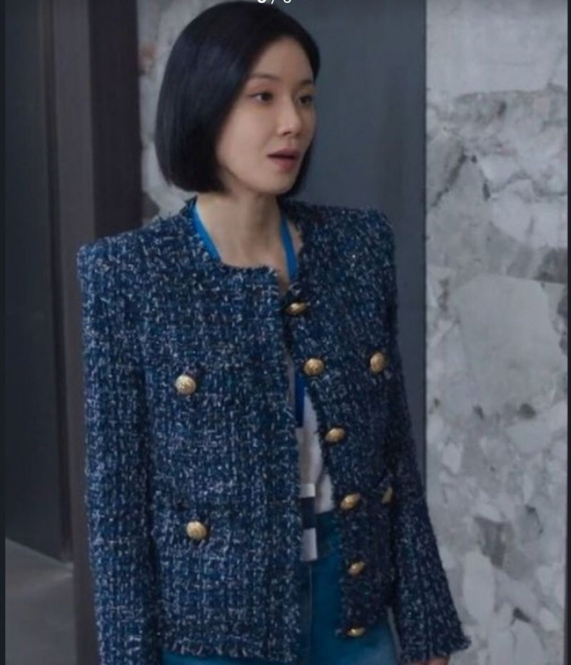 [수입] 블루 트위드 이보영 보아 자켓 네이비 아우터