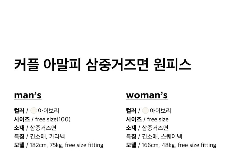 여성 남성 커플 아말피 원피스 투피스 수면 잠옷