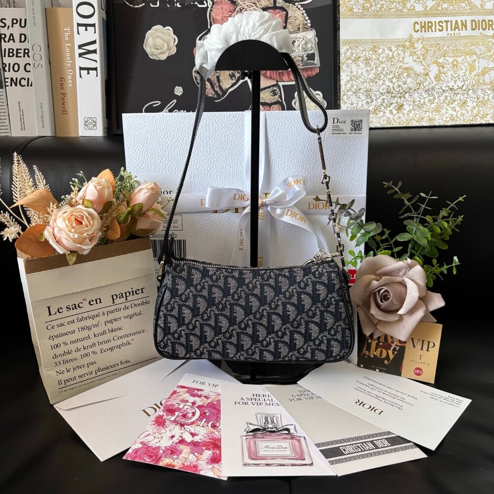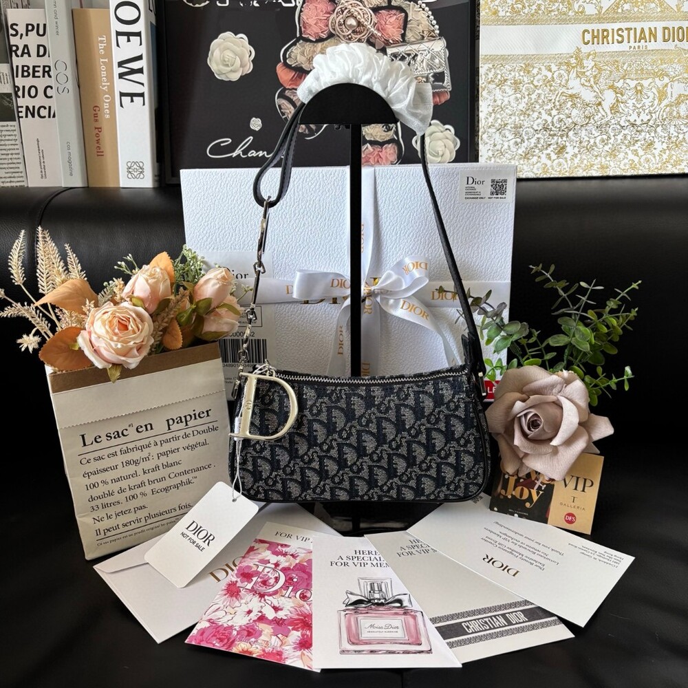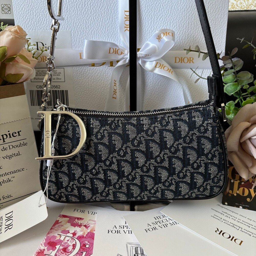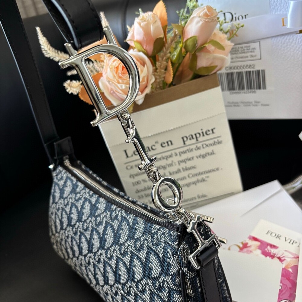 A stunning Dior-inspired shoulder bag featuring the iconic metal D charm